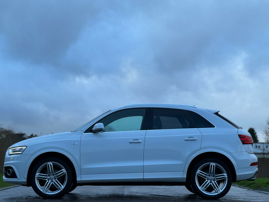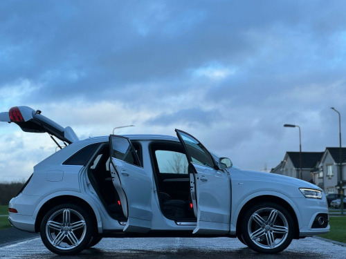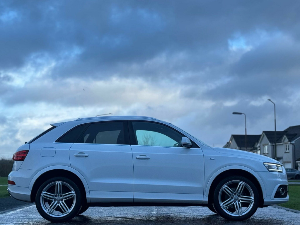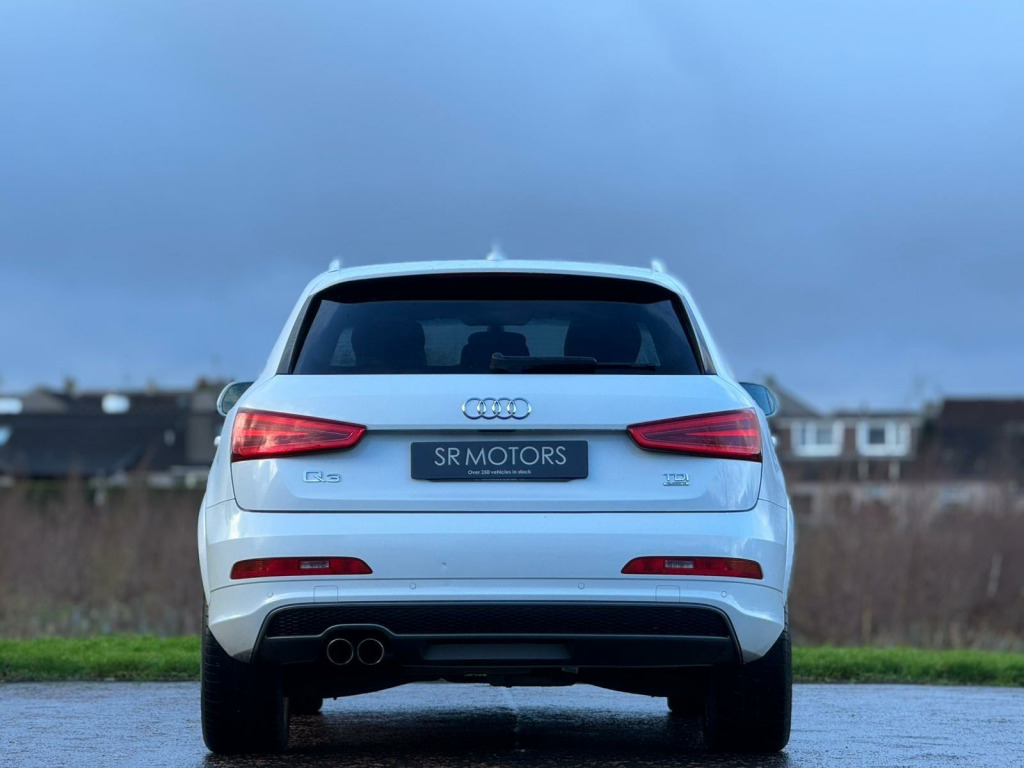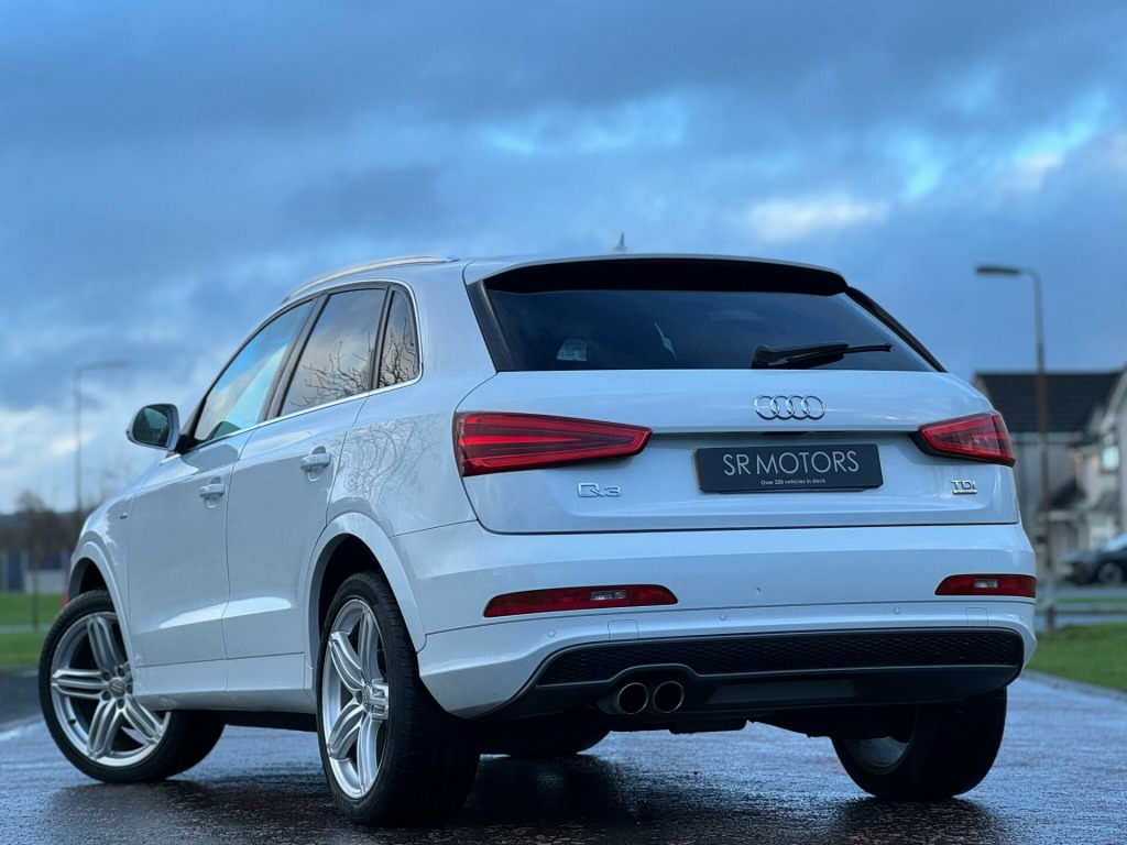 This 2014 Audi Q3 TDI S line presents an exceptional opportunity with its remarkably low mileage of just 66,000 miles for its age. This four wheel drive model boasts a powerful 2.0 litre diesel engine, paired with the sporty S line trim. For your convenience, it includes rear parking sensors with parking assistance, automatic activation for its Bi-Xenon Plus headlights, and dual-zone electronic climate control to ensure comfort for all occupants. Stay connected on the go with the integrated Bluetooth interface for mobile telephone preparation.The Q3 TDI S line offers a compelling driving experience, highlighted by its brisk 0-62mph acceleration time of 8.2 seconds, demonstrating its performance capabilities. These features, combined with its low insurance group rating, indicate that this Audi Q3 offers a superior ownership proposition compared to many other vehicles in its class, providing a blend of efficiency, technology, and driving enjoyment.HERE AT SR MOTORS ARMADALE, WE TAKE PRIDE IN ENSURING OUR VEHICLES ARE PREPARED TO THE HIGHEST STANDARDS AT ALL TIMES. ALL OUR VEHICLES ARE ROAD TESTED AND PROFESSIONALLY APPRAISED DURING OUR PREPARATION PROCESS. EVERY USED VEHICLE SOLD AT SR MOTORS ARMADALE WILL COME WITH MOT, SERVICE AND 3 MONTHS PLATINUM WARRANTY. YOU WILL ALSO BE GIVEN A PERSONAL QUOTATION TO EXTEND YOUR MOMENTUM WARRANTY. PLEASE DO NOT HESITATE TO CALL US ON 01501 733 019 OR EMAIL US AT SALES@SRMOTORS TO BOOK A TEST DRIVE, FOR ADDITIONAL STOCK SEE OUR GLASGOW HQ WEBSITE WWW.SRMOTORCOMPANY.CO.UK. 12V Power Socket - Rear Centre Console, 18in Alloy Wheels - 5-Double-Spoke Design, 6.5in Display Screen, ABS - Anti-Lock Braking System, AMI - Audi Music Interface, ASR - Anti Slip Regulation, Airbags - Driver, Airbags - Front Passenger, Airbags - Front Side, Airbags - Head System, Alarm - Thatcham Category 1, Anti Theft Locking Wheel Bolts, Automatic Wipers with Rain Sensor, Brake Lights - LED, Bumpers - Front and Rear - S Line Design, Car Jack, Cloth Headlining in Black, Concert Radio - MP3/CD Player, DAB Digital Radio, Diffuser Insert and Centre Front Spoiler Lip Painted in Platinum Grey, Door Mirrors - Body Coloured with Integrated LED Indicators, Door Mirrors - Electrically Adjustable and Heated, Door Sill Trims with S Line Logo, Drivers Information System - DIS, Dual-Zone Electronic Climate Control, Dynamic Suspension, EBD - Electronic Brakeforce Distribution, EDL - Electronic Differential Lock, ESP - Electronic Stability Programme, Efficiency Program in the Drivers Information System - DIS, Electric Windows - Front and Rear, Electrically Adjustable 4-Way Lumbar Support, Electromechanical Parking Brake, Electromechanical Power Steering, Exhaust Tailpipe - Chrome Plated, First Aid Kit, Fog Lights - Chrome Surrounds, Folding Storage Compartment in Front Centre Armrest, Front Centre Armrest - Adjustable, Front Fog Lights, Front Passenger Airbag Deactivation Switch, Front Sports Seats, Front and Rear Floor Mats, Full Paint Finish, Gear Knob - Perforated Leather, Glovebox - Ventilated, Headlights - Automatic Activation, Headlights - Automatic Adjustment, Headlights - Automatic Dynamic Range Control, Headlights - Bi-Xenon Plus, Headlights - Coming-Leaving Home Function, Headlights Washers, Heated Windscreen Washer Jets, ISOFIX Child Seat Mounting for Front Passenger, ISOFIX Child Seat Preparation for Rear Seats with Top Tether, Inlays - Matt Brushed Aluminium, LED Daytime Running Lights, LED Rear Indicators, LED Rear Lights, Mobile Telephone Preparation - Bluetooth Interface, Preparation for SD Card-Based Navigation System, Radiator Grille - with Vertical Chrome Bars, Rear Parking Sensors, Rear air vents in rear centre console, Remote Central Locking with 2 Fold Away Keys, Reversible Luggage Compartment Floor, Roof Rails - Aluminium, S Line Badges on Front Wings, S Line Body Styling, SDHC Card Reader x2, Seat Belt Reminder, Seats - Drivers Manual Height Adjustment, Seats - Front Sports - S Line Embossed, Seats - Sports, Smoking Package, Space Saver Spare Wheel, Speakers x8, Split-Folding Rear Seats, Stainless Steel Loading Sill Protector, Steering Wheel - 3-Spoke Leather Trimmed Sports, Steering Wheel - Gear-Shift Paddles, Steering Wheel - Height and Reach Adjustable, Steering Wheel - Multi-function, Sunband for Windscreen, TP Memo - Automatically Saves Traffic News, Thatcham Category 1 Immobiliser, Tool Kit, Towbar Preparation, Tyre Pressure Monitoring System, Voice Control - Telephone, Warning Triangle, Washer Fluid Level Indicator, Window Surrounds - Aluminium.