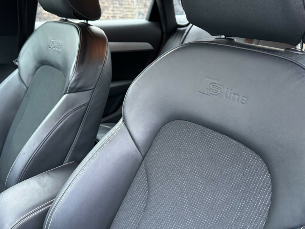 THREE MONTHS WARRANTY, 12 MONTHS MOT, PARKING SENSORS, HALF LEATHER SEATS,BLUETOOTH, 2 KEYS, v power socket - rear centre console, 18in alloy wheels - 5-twin spoke design, 6.5in display screen, abs - anti-lock braking system, ami - audi music interface, asr - anti slip regulation, airbags - driver, airbags - front passenger, airbags - front side, airbags - head system, alarm - thatcham category 1, all weather led headlights, aluminium-effect door mirror housings, anti theft locking wheel bolts, audi drive select, automatic wipers with rain sensor, brake lights - led, bumpers - front and rear - s line design, car jack, cloth headlining in black, concert radio - mp3/cd player, dab digital radio, dashboard - black, diffuser insert and centre front spoiler lip painted in platinum grey, door mirrors - automatic kerb view dipping function when reversing, door mirrors - body coloured with integrated led indicators, door mirrors - heated-electrically adjustable-folding, door sill trims with s line logo, drivers information system - dis, dual-zone electronic climate control, dynamic rear indicators, dynamic suspension, ebd - electronic brakeforce distribution, edl - electronic differential lock, esp - electronic stability programme, electric windows - front and rear, electrically adjustable 4-way lumbar support, electromechanical parking brake, electromechanical power steering, exhaust tailpipe - chrome plated, first aid kit, floor mats - front and rear in velour, folding storage compartment in front centre armrest, front centre armrest - adjustable, front fog lights, front passenger airbag deactivation switch, full paint finish, gear knob - perforated leather, headlights - automatic activation, headlights - automatic adjustment, headlights - automatic dynamic range control, headlights - coming-leaving home function, headlights washers, heated windscreen washer jets, isofix child seat mounting for front passenger, isofix child seat preparation for rear seats with top tether, inlays - matt brushed aluminium, led daytime running lights, led rear indicators, led rear lights, manual front seat adjustment, mobile telephone preparation - bluetooth interface, power operated tailgate, preparation for sd card-based navigation system, radiator grille - with vertical chrome bars, rear parking sensors, remote central locking with 2 fold away keys, reversible luggage compartment floor, roof rails - aluminium, s line badges on front wings, s line body styling, sdhc card reader x2, seat belt reminder, seats - front sports - s line embossed, secondary collision brake assist, smoking package, space saver spare wheel, speakers x8, split-folding rear seats, stainless steel loading sill protector, steering wheel - 3-spoke leather-multifunction-shift paddles-q-design, steering wheel - gear-shift paddles, steering wheel - height and reach adjustable, steering wheel - multi-function, sunband for windscreen, tp memo - automatically saves traffic news, tool kit, towbar preparation, tyre pressure monitoring system, voice control - telephone, warning triangle, washer fluid level indicator, window surrounds - aluminium