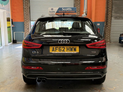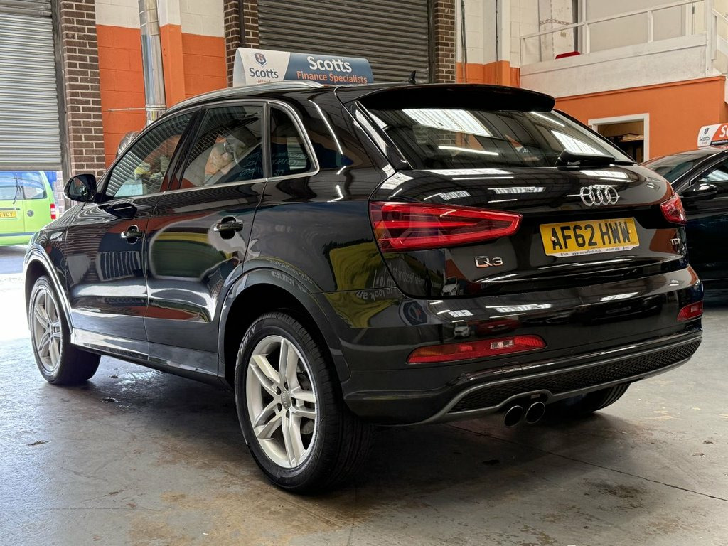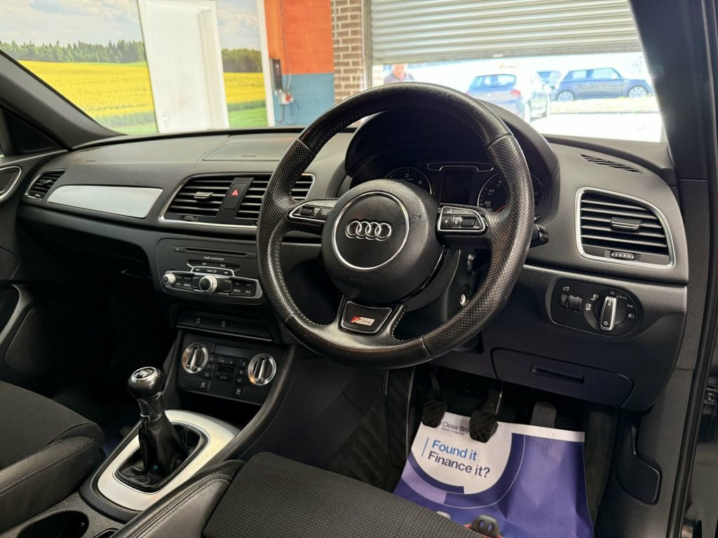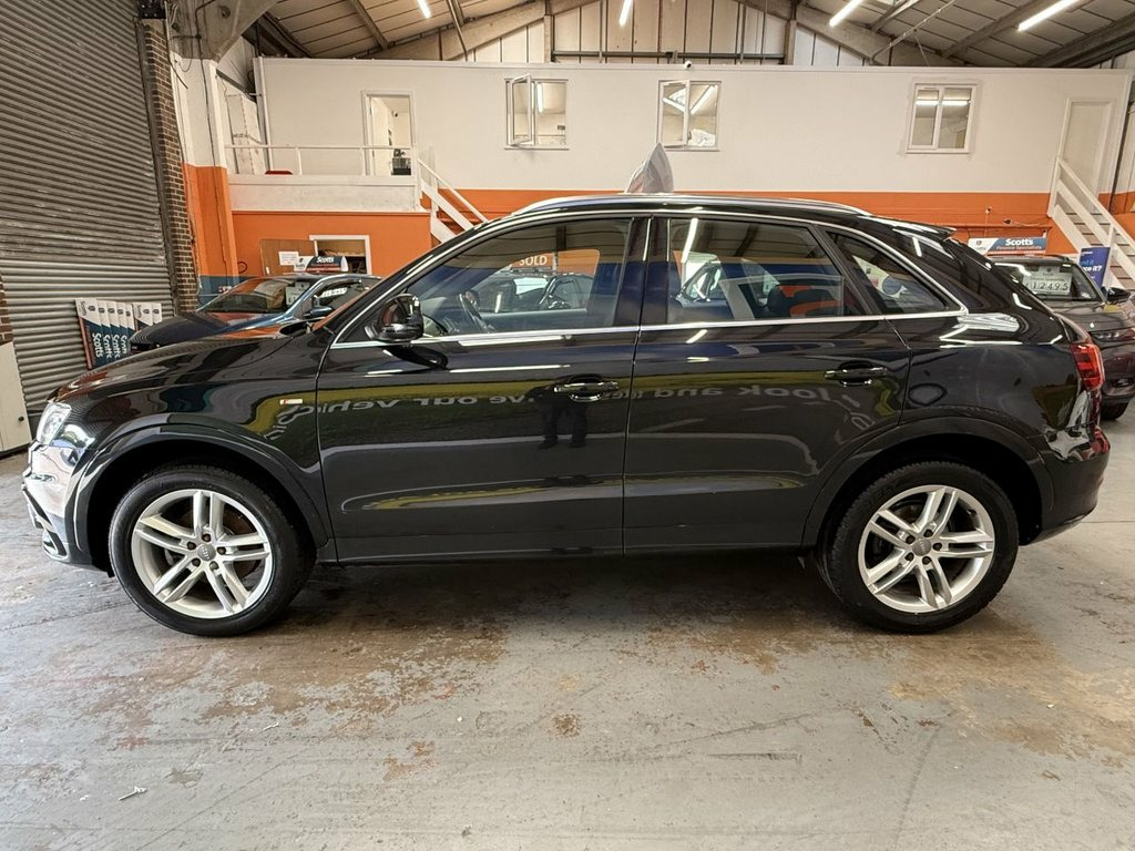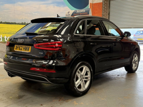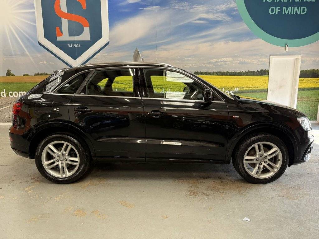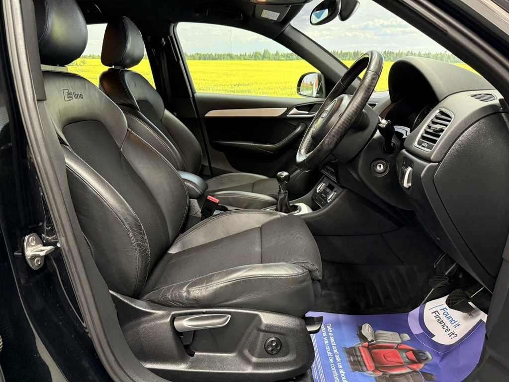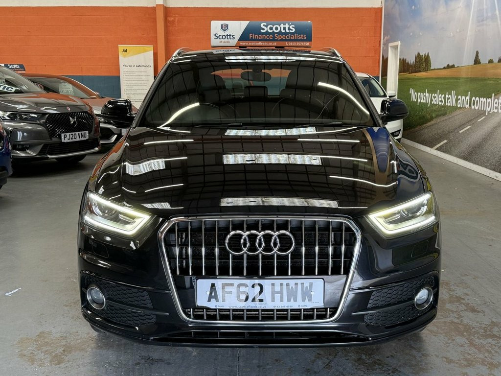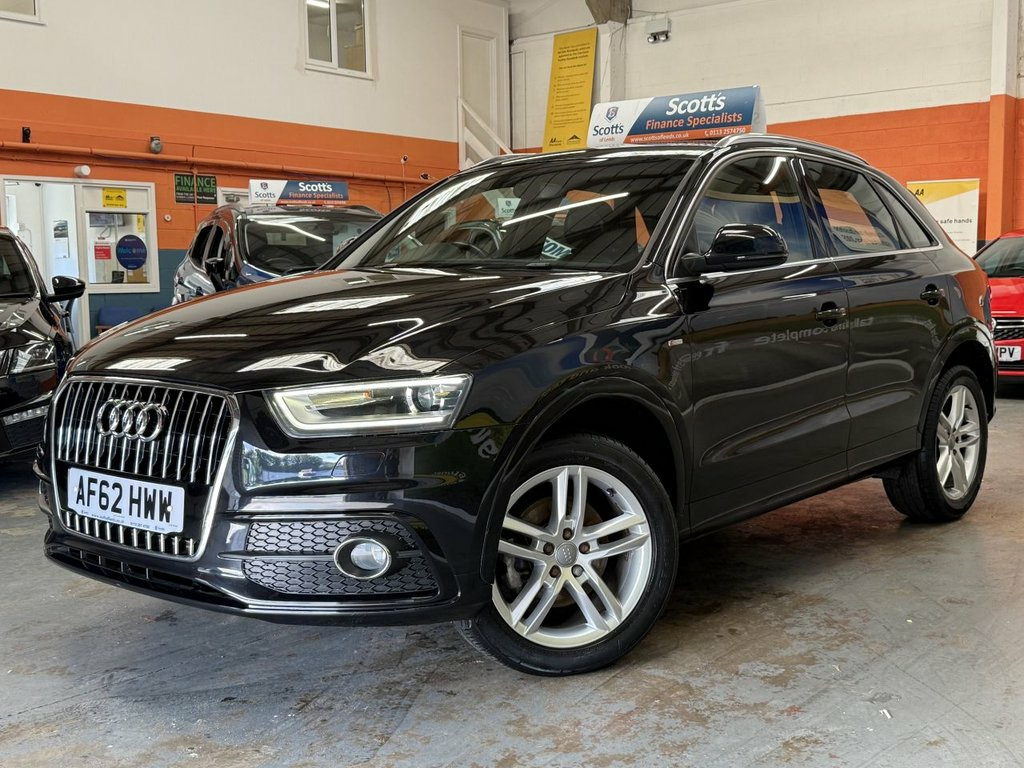 Scott's of Leeds Car Sales are pleased to offer this AUDI Q3 2.0 TDI S line SUV 5 Door Diesel Manual in Black. The car is in good condition throughout, in the best colour combination and a great specification including Bluetooth, Rear parking sensors, automatic lights, Half leather seats, alloy wheels, isofix, CD player, Electric windows, and much much more. 1 Former Keeper supplied with an up to date service record having just been serviced in our Workshop, an MOT until August 2026 and 2 Keys ready to drive away. A guaranteed 12 Months MOT can be added for an extra £100. DISCLAIMER: The above specification is true and correct. Any other specification listed elsewhere can sometimes be incorrect. Please check with Sales Executive to clarify this if needed prior to purchase. 12V Power Socket, 18in Alloy Wheels - 5-Double-Spoke Desig, 6.5in Display Screen, ABS - Anti-Lock Braking System, AMI - Audi Music Interface, ASR - Anti Slip Regulation, Acoustic Parking System - Rear, Airbags - Driver, Airbags - Front Passenger, Airbags - Front Side, Airbags - Head System, Alarm - Thatcham Category 1, Aluminium Roof Rails, Anthracite Metallic Finish on Bumpers-Wh, Anti Theft Locking Wheel Bolts, Automatic Wipers with Rain Sensor, Brake Lights - LED, Car Jack, Cloth Headlining in Black, Concert Radio - MP3/CD Player, Diffuser Insert and Centre Front Spoiler, Door Mirrors - Body Coloured with Integr, Door Mirrors - Electrically Adjustable a, Door Sill Trims with S Line Logo,