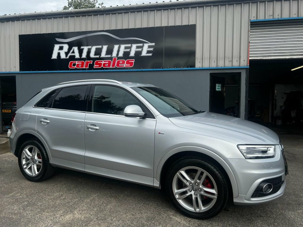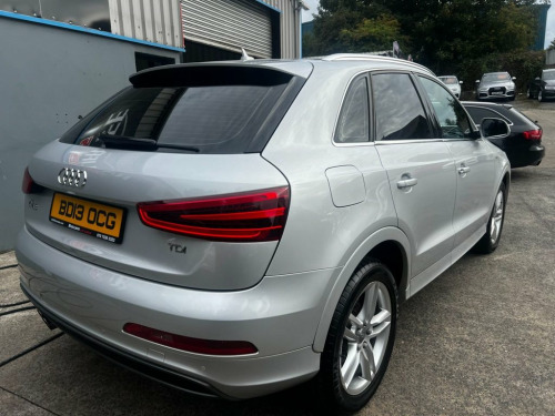 2013 AUDI Q3 2.0 TDI S line SUV 5dr Diesel Manual, ONLY 90133 MILES, SOLD WITH FULL MOT, 4 STAMP SERVICE HISTORY INC TIMING BELT, STUNNING TOP SPEC SLINE IN BRIGHT SILVER, SPEC INCLUDES HANDS FREE, DRL LIGHTS, FRONT FOGS, HALF LEATHER, FACTORY TINTED WINDOWS, DAB RADIO, REVERSE SENSORS, FULL ELECTRICS, ALLOYS, EXCELLENT CONDITION FIRST TO VIEW WILL BUY 12V Power Socket - Rear Centre Console, 18in Alloy Wheels - 5-Double-Spoke Desig, 6.5in Display Screen, ABS - Anti-Lock Braking System, Airbags - Driver, Airbags - Front Passenger, Airbags - Front Side, Airbags - Head System, Alarm - Thatcham Category 1, AMI - Audi Music Interface, Anti Theft Locking Wheel Bolts, ASR - Anti Slip Regulation, Automatic Wipers with Rain Sensor, Brake Lights - LED, Bumpers - Front and Rear - S Line Design, Car Jack, Cloth Headlining in Black, Concert Radio - MP3/CD Player, DAB Digital Radio, Diffuser Insert and Centre Front Spoiler, Door Mirrors - Body Coloured with Integr, Door Mirrors - Electrically Adjustable a, Door Sill Trims with S Line Logo, Drivers Infor