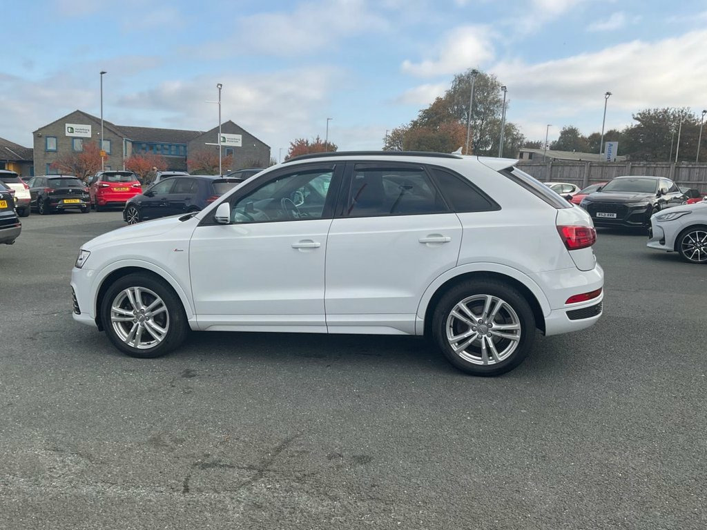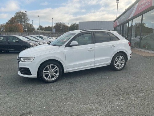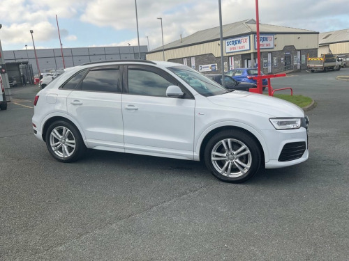 Here at Jim Walton Penrith we offer a wide range of models that have 12 months parts and labour, warranty and at least 6 months MOT. We are delighted to be able to offer for sale this 2015 (15) Audi Q3 S-Line 2.0TDi manual 150bhp in white. . Superbly presented throughout this car comes with Half leather interior, DAB radio, Air Conditioning, rear park assist , alloy wheels,plus so much more!!, We have video presentations of this vehicle too simply drop us a message if you would like it sent over., Finance offers available and part exchanges welcome., Proud to supply quality used cars from our dealership in Penrith, Jim Walton has an exceptional, choice of vehicles at affordable prices – just one of the reasons you should consider buying your next, car from us! Couple that with more than 50 years' experience with an MOT and servicing centre on, site, our reputation for providing excellent customer service is something we're extremely proud of. 2 owners Glacier White, 12V Power Socket - Rear Centre Console, 18in Alloy Wheels - 5-Twin Spoke Design, 6.5in Display Screen, ABS - Anti-Lock Braking System, AMI - Audi Music Interface, ASR - Anti Slip Regulation, Airbags - Driver, Airbags - Front Passenger, Airbags - Front Side, Airbags - Head System, Alarm - Thatcham Category 1, All Weather LED Headlights, Anti Theft Locking Wheel Bolts, Audi Drive Select, Automatic Wipers with Rain Sensor, Brake Lights - LED, Bumpers - Front and Rear - S Line Design, Car Jack, Cloth Headlining in Black, Concert Radio - MP3/CD Player, DAB Digital Radio, Dashboard - Black, Diffuser Insert and Centre Front Spoiler, Door Mirrors - Automatic Kerb View Dippi, Door Mirr