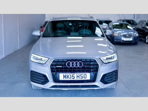 ** Vehicle Reg - MK15 HSO ** TIMING BELT & WATER PUMP REPLACED... NEAR FULL SERVICE HISTORY This Silver Audi Q3 TDI S line from 2015 offers excellent peace of mind with its MOT valid until June 2026 and a recent service completed in October 2025. This stylish SUV is equipped with a powerful 2.0 litre diesel engine and a four wheel drive system, ensuring confident handling in all conditions. As a Euro 6 compliant vehicle, it meets stringent emission standards. You'll also benefit from a 3 month warranty for added reassurance. Experience superior visibility with All Weather LED Headlights and automatic activation, while the Dual Zone Electronic Climate Control keeps everyone comfortable. Parking is made easier with rear parking sensors, and staying connected on the go is simple thanks to the Bluetooth interface for mobile telephone preparation along with DIgital DAB Radio and factory satellite navigation. This Q3 stands out with its impressive 0-60mph acceleration time of just 7.6 seconds, demonstrating its dynamic performance compared to other vehicles in its class. Contact us now to arrange your test drive viewing, or book your appointment directly on our website 24/7! 12V Power Socket - Rear Centre Console, 18in Alloy Wheels - 5-Twin Spoke Design, 6.5in Display Screen, ABS - Anti-Lock Braking System, AMI - Audi Music Interface, ASR - Anti Slip Regulation, Airbags - Driver, Airbags - Front Passenger, Airbags - Front Side, Airbags - Head System, Alarm - Thatcham Category 1, All Weather LED Headlights, Aluminium-Effect Door Mirror Housings, Anti Theft Locking Wheel Bolts, Audi Drive Select, Automatic Wipers with Rain Sensor, Brake Lights - LED, Bumpers - Front and Rear - S Line Design, Car Jack, Cloth Headlining in Black, Concert Radio - MP3/CD Player, DAB Digital Radio, Dashboard - Black, Diffuser Insert and Centre Front Spoiler, Door Mirrors - Automatic Ke