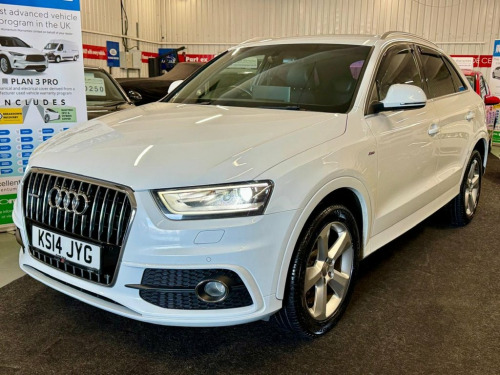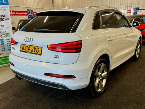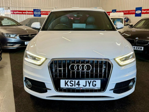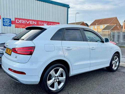 Audi Q3 TDI S-line SUV Quattro, Euro 5, 140bhp, 2014 model, 2.0 diesel engine with 99,239 miles, service history, 2 keys, cheap 4x4 road tax, (£215) combined mpg of 49.6, colour Satnav, cruise control, climate control, half leather trim, media screen, DAB radio, Bluetooth, Aux/USB connection, window deflectors, multifunctional steering wheel, voice command, auto lights/wipers/handbrake, isofix seats, electric windows all round, roof rails, alloy wheels, spare wheel, also comes with a full 12 months MOT, fresh service & warranty on sale. any inspection welcome, part exchange friendly, Driven trade cars Billingham. TS233TA. 01642370823. £7290 12V Power Socket - Rear Centre Console, 18in Alloy Wheels - 5-Double-Spoke Desig, 6.5in Display Screen, ABS - Anti-Lock Braking System, Airbags - Driver, Airbags - Front Passenger, Airbags - Front Side, Airbags - Head System, Alarm - Thatcham Category 1, AMI - Audi Music Interface, Anti Theft Locking Wheel Bolts, ASR - Anti Slip Regulation, Automatic Wipers with Rain Sensor, Brake Lights - LED, Bumpers - Front and Rear - S Line Design, Car Jack, Cloth Headlining in Black, Concert Radio - MP3/CD Player, DAB Digital Radio, Diffuser Insert and Centre Front Spoiler, Door Mirrors - Body Coloured with Integr, Door Mirrors - Electrically Adjustable a, Door Sill Trims with S Line Logo, Drivers Infor