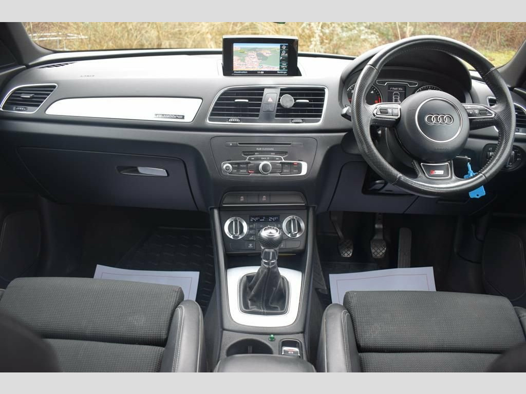 We are delighted to offer this very well equipped Audi Q3 2.0 TDI S Line Quattro finished in black metallic with matching full Black leather S Line interior and supported by 2 keys and a full service history comprising of 8 services all the way to 2025 and including the all important cambelt & water pump replacement as well as replacement discs and pads in 2025! This is a superb example with 4 matching Pirelli tyres! The car drives superbly well indeed thanks to it's excellent maintenance record. It's clearly been very well cared for with it's full service history that includes the timing belt and water pump replacement in August 25, there's 2 keys present and premium tyres all round too! The car will be supplied with a fresh 12 month MOT and service on order, offering maximum peace of mind for the new owner who is going to be delighted in this stunning car. Specification includes; sat nav, sports seats, LED daytime running lights, climate control, parking sensors, alloy wheels and more! Sat Nav, Sports Seats, LED Daytime Running Lights, Parking Sensors, Climate Control, Alloy Wheels