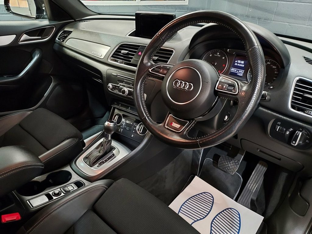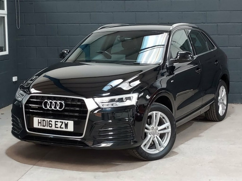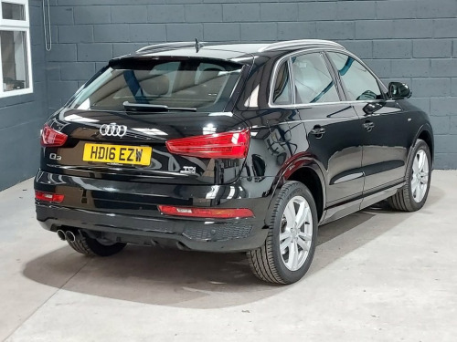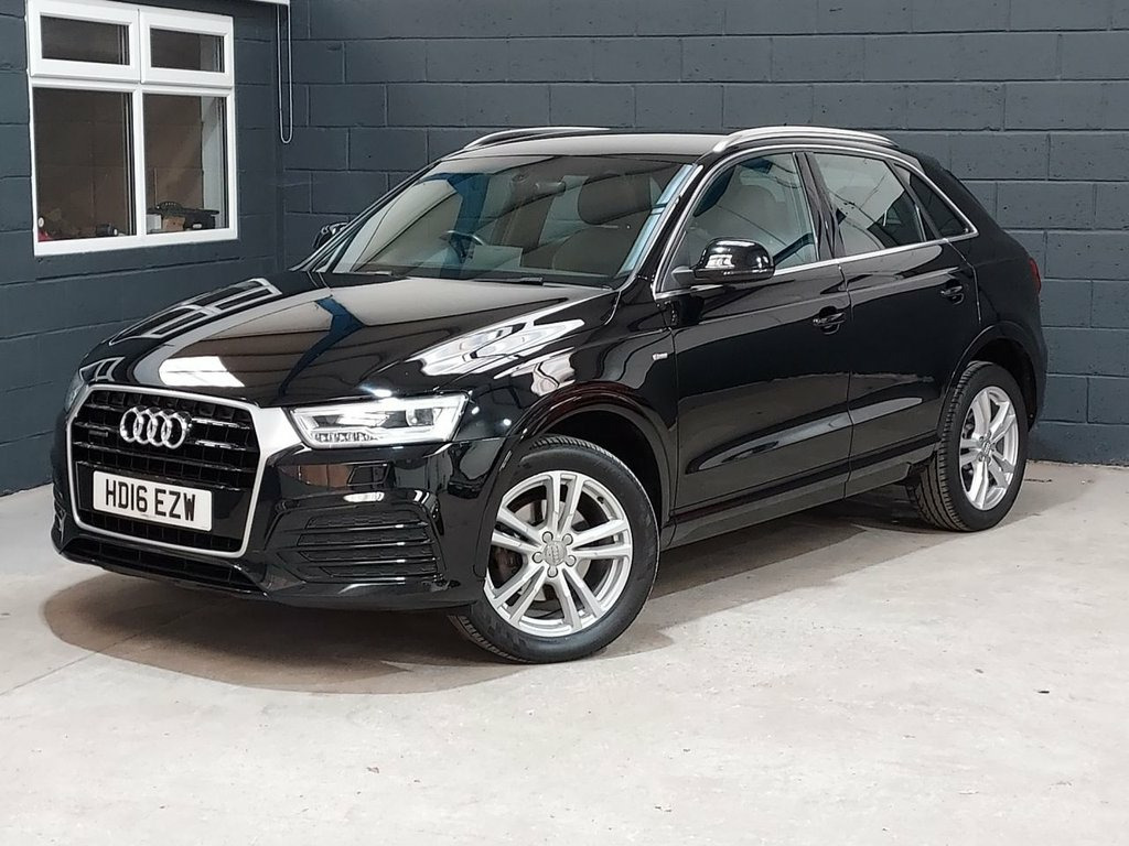 We recently purchased this lovely Audi Q3 directly from it's most recent owner. The car looks great finished in Brilliant black with a black half leather interior. It is in great condition, both inside and out and is a credit to its previous owners. The car drives exactly as you would expect and really is a joy to drive. The 2.0, 150 Bhp diesel engine is ULEZ compliant & offers great performance & economy returning up to 61mpg. It's been well looked after and comes with service history including a recent service by us at 89k. The car also comes with a long MOT, with no advisories. There is an excellent equipment level with key features such as Satellite Navigation / Bluetooth / DAB Radio / Rear Parking Sensors / Electric Windows / Electric Mirrors / Alloy Wheels / Audi Drive Select / Dual Zone Climate Control & much, much more.. We think this car represents great value for money and will not disappoint any prospective buyer. Please call for more details. 6.5in Display Screen, 8 Passive Speakers, AMI - Audi Music Interface, Bluetooth Interface, Concert Radio, DAB Digital Radio, Satellite Navigation System - SD Card Ba, Towbar Preparation, 18in Alloy Wheels - 5-Twin-Spoke Design , Aluminium Roof Rails, Aluminium Window Trims, Anti Theft Locking Wheel Bolts, Body-Coloured Door Mirrors - Electricall, Bright Moulding, Chrome-Plated Trims for Exhaust System, Door Mirrors - Heated-Electrically Adjus, Electric Windows - Front and Rear, Fog Lights - Chrome Surrounds, Full Body-Colour Finish on Bumpers-Wheel, Heated Windscreen Washer Jets, S Line Badges on Front Wings, S Line Body Styling, S Line Radiator Grille with Horizontal S, Space Saver Spare Wh
