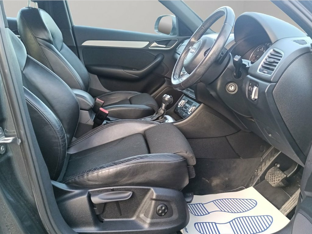 Here we have a striking example of the economical and reliable AUDI Q3 in the eye-catching GREY Colour. Having covered only 69856 miles and 6 Months Nationwide extended Warrenty(extendable upto 3 years), you can be confident this car is in great condition. The car has recently been serviced. The car has 1 Previous owner. The car comes with 2 keys The mileage is warranted and backed up by MOT data. MOT Expiry: 7 December 2026. This Car is HPI Checked as well as cleared for your peace of mind. It also has as standard a multifunction leather steering wheel and gear knob which help to lift this car to premium-feeling. some of the features on this car include Navigation - (SD Card), Parking Sensor(s), Climate Control, Half Leather Trim, Temporary Spare Wheel and 18" Alloy Wheels. The car is also surprisingly spacious and the seats are extremely comfortable, making the AUDI Q3 ideal for any kind of journey. The car comes with AA 12 months roadside breakdown cover(registration required). Out of hours appointments available upon request. 12 months optional extended warranty available at extra cost.If a vehicle's MOT is less than 6 months, a fresh 12 months MOT can be provided within the price. Supplied by us as a used car, with a multi-point detailed inspection of the car to be carried out upon purchase with the customer. We welcome all kinds of inspection/test drive by yourselves or by hiring the services of a professional mechanic before you purchase from us. We are a p Monsoon Grey, Fine Nappa Leather - Black, Satellite Navigation System - SD Card Ba, Mobile Telephone Preparation - High with, Audi Sound System, Audi Parking System Plus, 18in Alloy Wheels - 5-Arm Off-Road Desig, 12V Power Socket - Rear Centre Console, 18in Alloy Wheels - 5-Double-Spoke Desig, 6.5in Display Screen, ABS - Anti-Lock Braking System, AMI - Audi Music Interface, ASR - Anti Slip Regulation, Airbags - Driver, Airbags - Front Passenger, Airbags - Front Side, Airbags - Head System, Alarm - Thatcham Category 1, Anti Theft Locking Wheel Bolts, Automatic Wipers with Rain Sensor, Brake Lights - LED, Bumpers - Front and Rear - S Line Design, Car Jack, Cloth Headlining in Black, Concert Ra