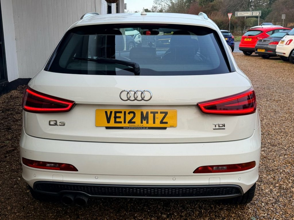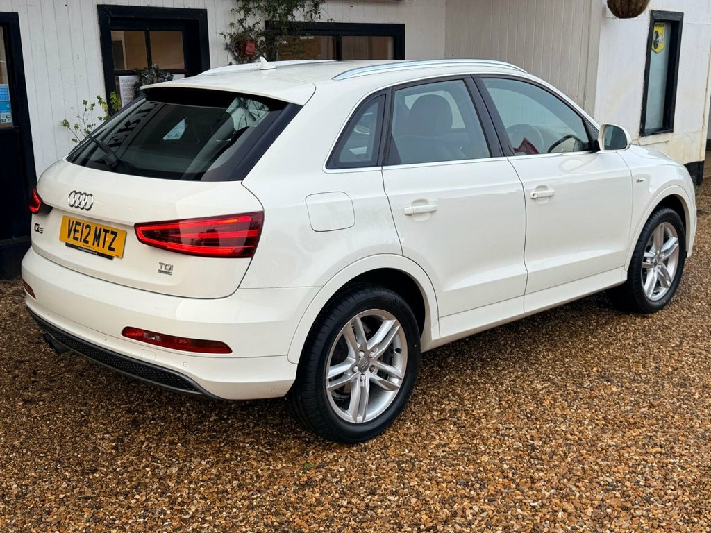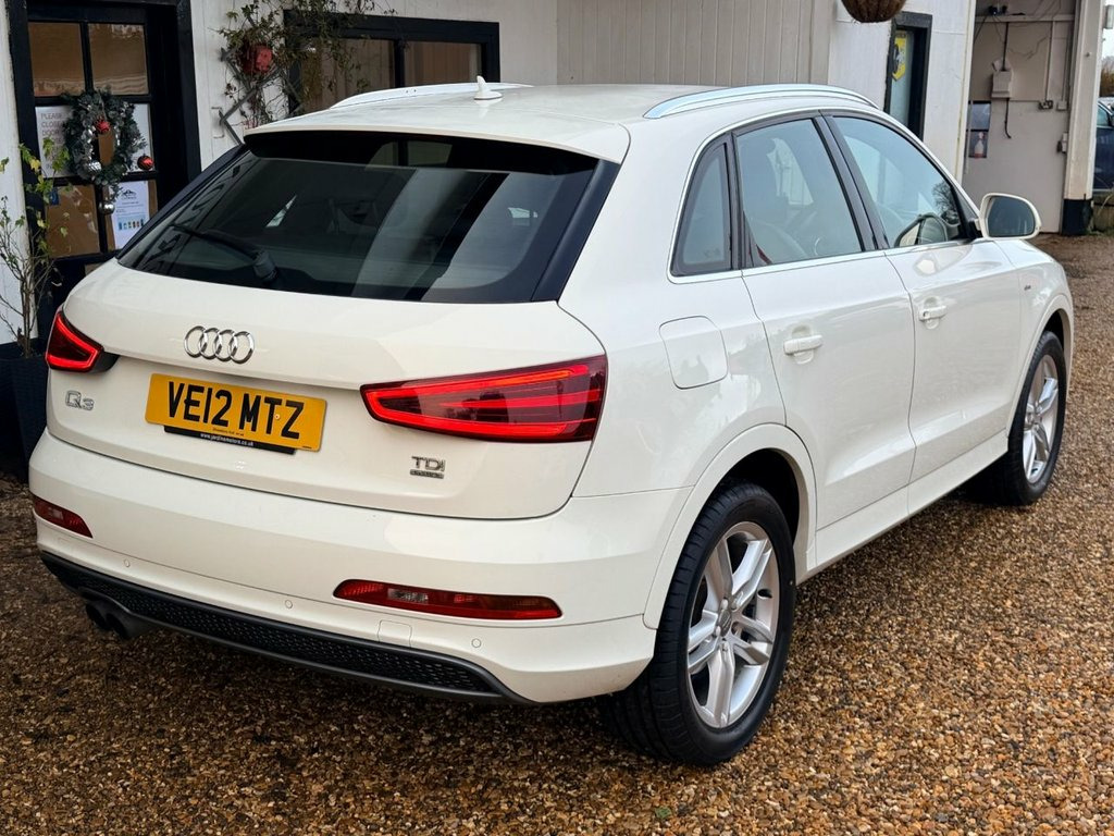 This 2012 Audi Q3 2.0 TDI S Line S tronic is a premium compact SUV that combines a sporty design with practical utility, featuring a powerful yet efficient diesel engine and Audi's responsive S tronic automatic transmission. The S Line trim adds an enhanced aesthetic and a high level of standard equipment which includes 18" Alloys, 7 Speed Paddle Shift Gearbox, Bluetooth Telephone Integration, Radio / CD / SD Card Connectivity, Heated Mirrors, Sports Seats and ISOFIX. We've completed the next Service and with 4 new tyres and a fresh MOT she's ready for the next adventure.... Amalfi White, 12V Power Socket, 18in Alloy Wheels - 5-Double-Spoke Desig, 6.5in Display Screen, ABS - Anti-Lock Braking System, AMI - Audi Music Interface, ASR - Anti Slip Regulation, Acoustic Parking System - Rear, Airbags - Driver, Airbags - Front Passenger, Airbags - Front Side, Airbags - Head System, Alarm - Thatcham Category 1, Aluminium Roof Rails, Anthracite Metallic Finish on Bumpers-Wh, Anti Theft Locking Wheel Bolts, Automatic Wipers with Rain Sensor, Brake Lights - LED, Car Jack, Cloth Headlining in Black, Concert Radio - MP3/CD Player, Diffuser Insert and Centre Front Spoiler, Door Mirrors - Body Coloured with Integr, Door Mirrors - Electrically Adjustable a, Door Sill Trims with