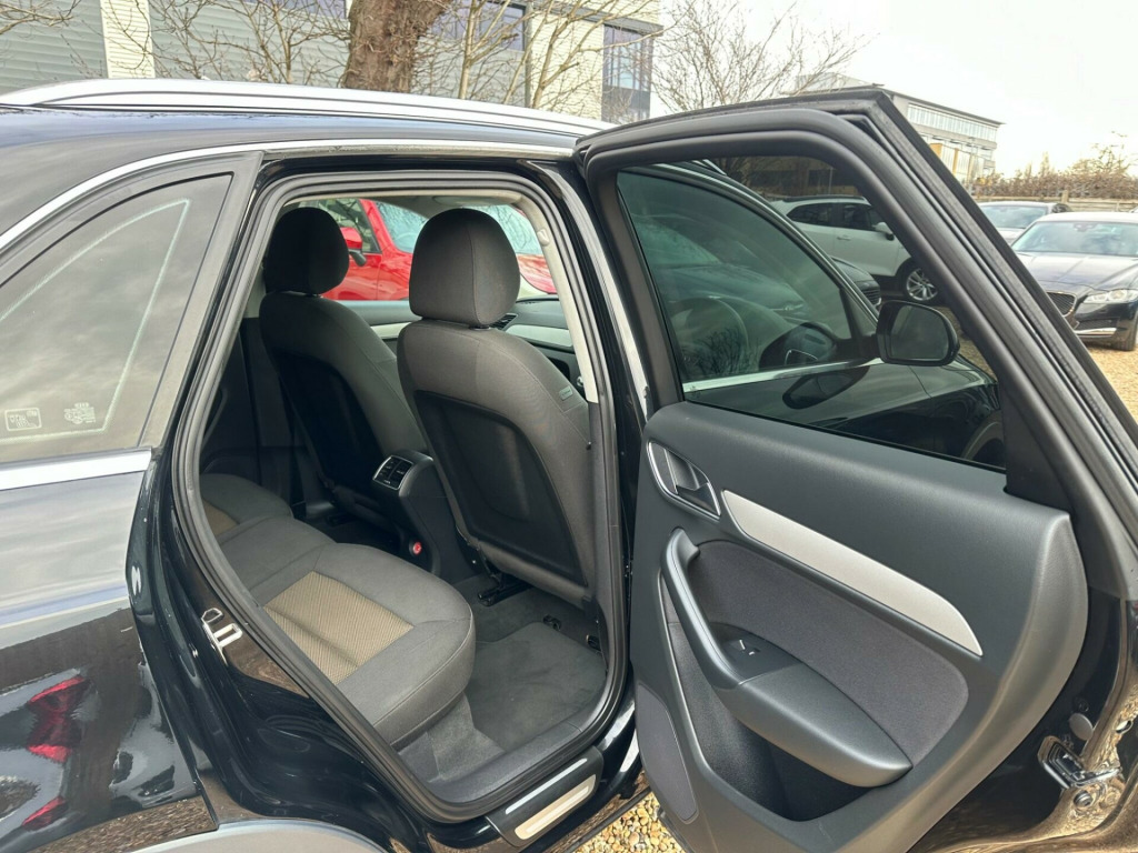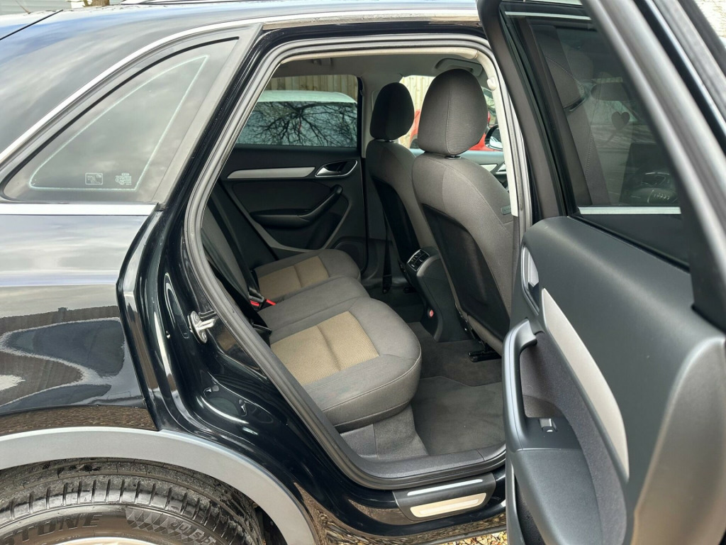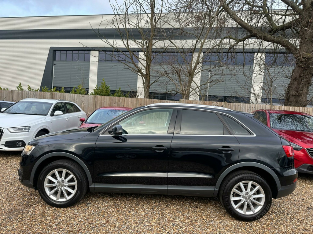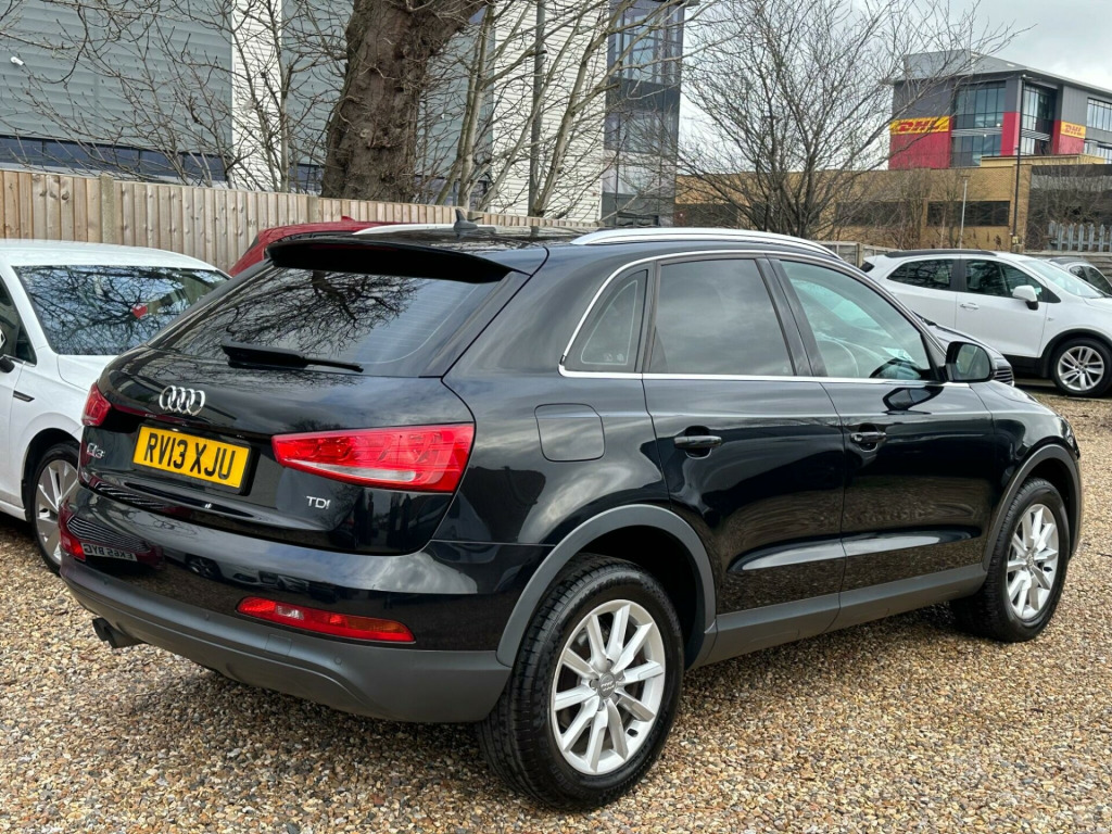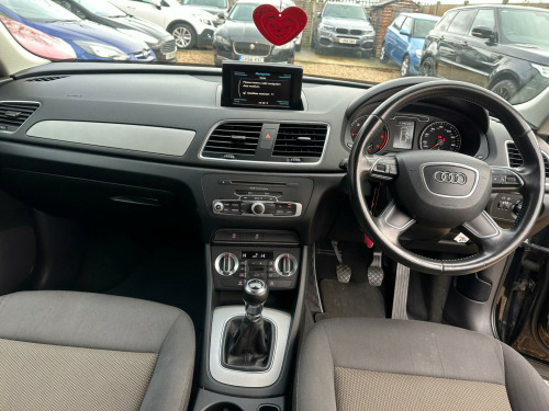 This Audi Q3 TDI SE from 2013 boasts a full service history and a clear vehicle history check, offering you peace of mind. This well maintained 2.0 litre diesel model comes with an MOT valid until August 2026 and is covered by a 3 month warranty. Inside, you'll find the convenience of Dual Zone Electronic Climate Control and Mobile Telephone Preparation with a Bluetooth interface, while the Acoustic Parking System with rear sensors makes parking straightforward.With an impressive fuel economy of 54 miles per gallon, this Q3 is designed to be economical to run. Its low insurance group and low CO2 emissions further highlight its cost effectiveness compared to similar vehicles. This combination of efficient performance and practical features makes the Audi Q3 TDI SE a sensible choice for everyday driving.. 12V Power Socket, 17in Alloy Wheels - 10-Spoke Design, 6.5in Display Screen, ABS - Anti-Lock Braking System, AMI - Audi Music Interface, ASR - Anti Slip Regulation, Acoustic Parking System - Rear, Airbags - Driver, Airbags - Front Passenger, Airbags - Front Side, Airbags - Head System, Alarm - Thatcham Category 1, Aluminium Roof Rails, Anthracite Metallic Finish on Bumpers-Wheel Arch Trims-Lower Door Trims, Anti Theft Locking Wheel Bolts, Automatic Wipers with Rain Sensor, Car Jack, Cloth Headlining, Concert Radio - MP3/CD Player, Daytime Running Lights, Door Mirrors - Body Coloured with Integrated LED Indicators, Door Mirrors - Electrically Adjustable and Heated, Door Sill Trims with Aluminium Inlay, Drivers Information System - DIS, Dual-Zone Electronic Climate Control, Dynamic Suspension, EBD - Electronic Brakeforce Distribution, EDL - Electronic Differential Lock, ESP - Electronic Stability Programme, Efficiency Program in the Drivers Information System - DIS, Electric Windows - Front and Rear, Electromechanical Parking Brake, Electromechanical Power Steering, First Aid Kit, Folding Storage Compartment in Front Centre Armrest, Front Centre Armrest - Adjustable, Front Fog Lights, Front Passenger Airbag Deactivation Switch, Front and Rear Floor Mats, Glovebox - Ventilated, Halogen Headlights, Headlights - Automatic Adjustment, Headlights - Coming-Leaving Home Function, Headlights - Range Adjustment, Heated Windscreen Washer Jets, ISOFIX Child Seat Mounting for Front Passenger and Rear Outer Seats, Inlays - Monometallic Platinum, Mobile Telephone Preparation - Bluetooth Interface, Preparation for SD Card-Based Navigation System, Rear air vents in rear centre console, Remote Central Locking with 2 Fold Away Keys, SDHC Card Reader x2, Seat Belt Reminder, Seats - Drivers Manual Height Adjustment, Smoking Package, Speakers x8, Split-Folding Rear Seats, Stainless Steel Loading Sill Protector, Steering Wheel - 4-Spoke Leather Trimmed/MultiFunction, Steering Wheel - Height and Reach Adjustable, Steering Wheel - Multi-function, Sunband for Windscreen, TP Memo - Automatically Saves Traffic News, Tool Kit, Towbar Preparation, Tyre Mobility System, Voice Control - Telephone, Warning Triangle, Washer Fluid Level Indicator, Window Surrounds - Aluminium, 12V Power Socket - Rear Centre Console, DAB Digital Radio, Headlights - Automatic Activation, Headlights - Electric Range Control, ISOFIX Child Seat Mounting for Front Passenger, ISOFIX Child Seat Preparation for Rear Seats with Top Tether, Rear Parking Sensors, Reversible Luggage Compartment Floor, Roof Rails - Aluminium, Space Saver Spare Wheel, Steering Wheel - 4-Spoke Leather Trimmed, Thatcham Category 1 Immobiliser, Tyre Pressure Monitoring System. Full service history
