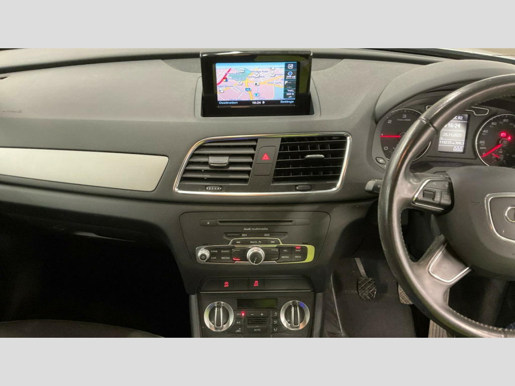This Audi Q3 TDI SE from 2013 boasts a remarkable history, having been owned by just one individual since new. This well maintained compact SUV features a 2.0 litre diesel engine and comes equipped with the SE trim level. For your convenience, it includes Mobile Telephone Preparation with a Bluetooth interface, allowing for seamless connectivity. Parking is made easier with the Acoustic Parking System at the rear, and you can ensure a comfortable journey for all occupants thanks to the Dual Zone Electronic Climate Control.This particular Q3 stands out with its impressive fuel economy, achieving a highlight of 54 miles per gallon, which indicates it is more economical than many similar vehicles. Furthermore, its low insurance group rating suggests that running costs will be more affordable. The vehicle also benefits from low CO2 emissions, demonstrating its efficiency and environmental consideration compared to other cars in its class. v power socket, 17in alloy wheels - 10-spoke design, 6.5in display screen, abs - anti-lock braking system, ami - audi music interface, asr - anti slip regulation, acoustic parking system - rear, airbags - driver, airbags - front passenger, airbags - front side, airbags - head system, alarm - thatcham category 1, aluminium roof rails, anthracite metallic finish on bumpers-wheel arch trims-lower door trims, anti theft locking wheel bolts, automatic wipers with rain sensor, car jack, cloth headlining, concert radio - mp3/cd player, daytime running lights, door mirrors - body coloured with integrated led indicators, door mirrors - electrically adjustable and heated, door sill trims with aluminium inlay, drivers information system - dis, dual-zone electronic climate control, dynamic suspension, ebd - electronic brakeforce distribution, edl - electronic differential lock, esp - electronic stability programme, efficiency program in the drivers information system - dis, electric windows - front and rear, electromechanical parking brake, electromechanical power steering, first aid kit, folding storage compartment in front centre armrest, front centre armrest - adjustable, front fog lights, front passenger airbag deactivation switch, front and rear floor mats, glovebox - ventilated, halogen headlights, headlights - automatic adjustment, headlights - coming-leaving home function, headlights - range adjustment, heated windscreen washer jets, isofix child seat mounting for front passenger and rear outer seats, inlays - monometallic platinum, mobile telephone preparation - bluetooth interface, preparation for sd card-based navigation system, rear air vents in rear centre console, remote central locking with 2 fold away keys, sdhc card reader x2, seat belt reminder, seats - drivers manual height adjustment, smoking package, speakers x8, split-folding rear seats, stainless steel loading sill protector, steering wheel - 4-spoke leather trimmed/multifunction, steering wheel - height and reach adjustable, steering wheel - multi-function, sunband for windscreen, tp memo - automatically saves traffic news, tool kit, towbar preparation, tyre mobility system, voice control - telephone, warning triangle, washer fluid level indicator, window surrounds - aluminium