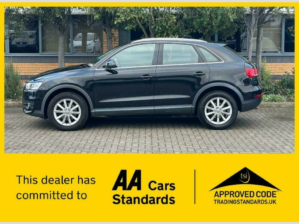 This Audi Q3 TDI SE from 2014 offers excellent value, having been owned by only two previous keepers. This stylish SUV features a 2.0 litre diesel engine and comes in the SE trim. For your convenience, it includes Mobile Telephone Preparation with a Bluetooth interface, rear parking sensors for easier manoeuvring, and dual zone electronic climate control to keep everyone comfortable. The headlights activate automatically, and you can enjoy your favourite stations with the DAB digital radio. This particular Q3 stands out with its impressive fuel economy, achieving up to 54 miles per gallon, which is better than many similar vehicles. It also benefits from a low insurance group, making it more affordable to run. Furthermore, its low CO2 emissions indicate a more environmentally conscious choice. 12V Power Socket - Rear Centre Console, 17in Alloy Wheels - 10-Spoke Design, 6.5in Display Screen, ABS - Anti-Lock Braking System, AMI - Audi Music Interface, ASR - Anti Slip Regulation, Airbags - Driver, Airbags - Front Passenger, Airbags - Front Side, Airbags - Head System, Alarm - Thatcham Category 1, Anthracite Metallic Finish on Bumpers-Wheel Arch Trims-Lower Door Trims, Anti Theft Locking Wheel Bolts, Automatic Wipers with Rain Sensor, Car Jack, Cloth Headlining, Concert Radio - MP3/CD Player, DAB Digital Radio, Daytime Running Lights, Door Mirrors - Body Coloured with Integrated LED Indicators, Door Mirrors - Electrically Adjustable and Heated, Door Sill Trims with Aluminium Inlay, Drivers Information System - DIS, Dual-Zone Electronic Climate Control, Dynamic Suspension, EBD - Electronic Brakeforce Distribution, EDL - Electronic Differential Lock, ESP - Electronic Stability Programme, Efficiency Program in the Drivers Information System - DIS, Electric Windows - Front and Rear, Electromechanical Parking Brake, Electromechanical Power Steering, First Aid Kit, Folding Storage Compartment in Front Centre Armrest, Front Centre Armrest - Adjustable, Front Fog Lights, Front Passenger Airbag Deactivation Switch, Front and Rear Floor Mats, Glovebox - Ventilated, Halogen Headlights, Headlights - Automatic Activation, Headlights - Automatic Adjustment, Headlights - Coming-Leaving Home Function, Headlights - Electric Range Control, Heated Windscreen Washer Jets, ISOFIX Child Seat Mounting for Front Passenger, ISOFIX Child Seat Preparation for Rear Seats with Top Tether, Inlays - Monometallic Platinum, Mobile Telephone Preparation - Bluetooth Interface, Preparation for SD Card-Based Navigation System, Rear Parking Sensors, Rear air vents in rear centre console, Remote Central Locking with 2 Fold Away Keys, Reversible Luggage Compartment Floor, Roof Rails - Aluminium, SDHC Card Reader x2, Seat Belt Reminder, Seats - Drivers Manual Height Adjustment, Smoking Package, Space Saver Spare Wheel, Speakers x8, Split-Folding Rear Seats, Stainless Steel Loading Sill Protector, Steering Wheel - 4-Spoke Leather Trimmed, Steering Wheel - Height and Reach Adjustable, Steering Wheel - Multi-function, Sunband for Windscreen, TP Memo - Automatically Saves Traffic News, Thatcham Category 1 Immobiliser, Tool Kit, Towbar Preparation, Tyre Pressure Monitoring System, Voice Control - Telephone, Warning Triangle, Washer Fluid Level Indicator, Window Surrounds - Aluminium