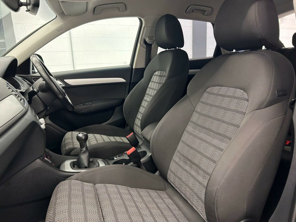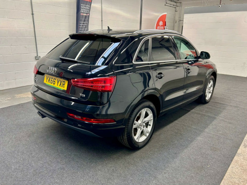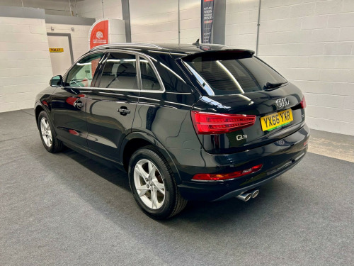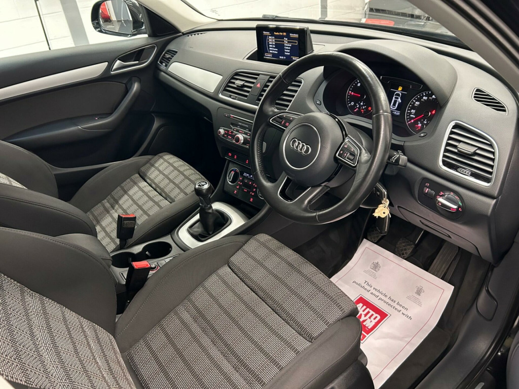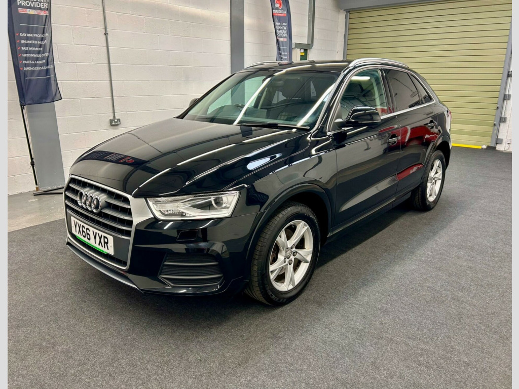 Viewings by appointment . + . Nationwide delivery available . + . See our walk around video. NEW TIMING BELT + CLUTCH FITTED by us. Discover this 2016 Audi Q3 TDI SE, a refined compact SUV that blends style with practicality. Powered by an efficient 2.0 litre diesel engine, this Euro 6 compliant model offers an impressive fuel economy of up to 63 miles per gallon. The SE trim level ensures a comfortable and convenient driving experience, featuring Dual Zone Electronic Climate Control to keep everyone at their ideal temperature. For enhanced visibility and safety, it is equipped with Bi-Xenon Plus headlights that activate automatically, and the convenience of a Bluetooth interface for seamless mobile phone connectivity. Parking is made easier with the inclusion of rear parking sensors, providing an extra layer of awareness.This Audi Q3 stands out with its excellent running costs, indicated by its low CO2 emissions and placement in a low insurance group, suggesting it is more economical to own and run compared to many other vehicles in its class. These highlights demonstrate the thoughtful engineering that makes this Q3 a sensible choice for those seeking a premium yet cost-effective compact SUV.All of our strict PDI processes have been completed, signed off along with certificates and its also received a full service by us so it's ready to go . + . Please view our website to see what we offer as a dealership along with details of our processes to ensure peace of mind motoring for all of our customers . + ., v power socket - rear centre console, 17in alloy wheels - 7j 5-spoke y design, 6.5in display screen, abs - anti-lock braking system, ami - audi music interface, asr - anti slip regulation, airbags - driver, airbags - front passenger, airbags - front side, airbags - head system, alarm - thatcham category 1, anti theft locking wheel bolts, audi drive select, automatic wipers with rain sensor, brake lights - led, car jack, cloth headlining in lunar silver, concert radio - mp3/cd player, dab digital radio, door mirrors - body coloured with integrated led indicators, door mirrors - electrically adjustable and heated, door sill trims with aluminium inlay, drivers information system - dis, dual-zone electronic climate control, dynamic suspension, ebd - electronic brakeforce distribution, edl - electronic differential lock, esp - electronic stability programme, electric windows - front and rear, electrically adjustable 4-way lumbar support, electromechanical parking brake, electromechanical power steering, exhaust tailpipe - chrome plated, first aid kit, floor mats - front and rear in velour, folding storage compartment in front centre armrest, front centre armrest - adjustable, front fog lights, front passenger airbag deactivation switch, front sports seats, full body-colour finish on bumpers-wheel arch trims-lower door trims, full paint finish, headlights - automatic activation, headlights - automatic adjustment, headlights - automatic dynamic range control, headlights - bi-xenon plus, headlights - coming-leaving home function, headlights - electric range control, heated windscreen washer jets, isofix child seat mounting for front passenger, isofix child seat preparation for rear seats with top tether, inlays - micrometallic silver, led daytime running lights, led rear indicators, led rear lights, luggage compartment - cover extendable, manual front seat adjustment, mobile telephone preparation - bluetooth interface, preparation for sd card-based navigation system, rear parking sensors, remote central locking with 2 fold away keys, reversible luggage compartment floor, roof rails - aluminium, sdhc card reader x2, seat belt reminder, secondary collision brake assist, smoking package, space saver spare wheel, speakers x8, split-folding rear seats, stainless steel loading sill protector, steering wheel - 3-spoke leather-multifunction-q-design, steering wheel - height and reach adjustable, steering wheel - multi-function, sunband for windscreen, tp memo - automatically saves traffic news, tool kit, towbar preparation, tyre pressure monitoring system, voice control - telephone, warning triangle, washer fluid level indicator, window surrounds - aluminium, audi sound system, colour drivers information system - dis, audi hill hold assist, privacy glass