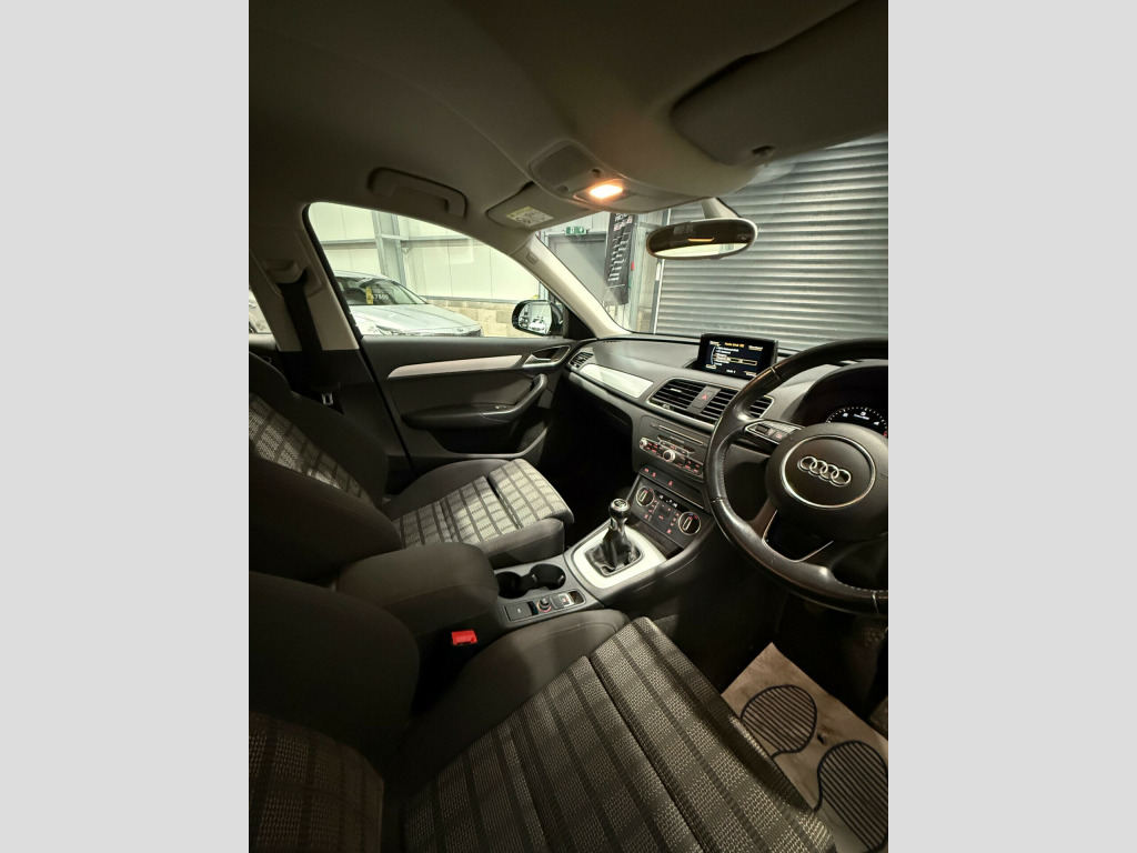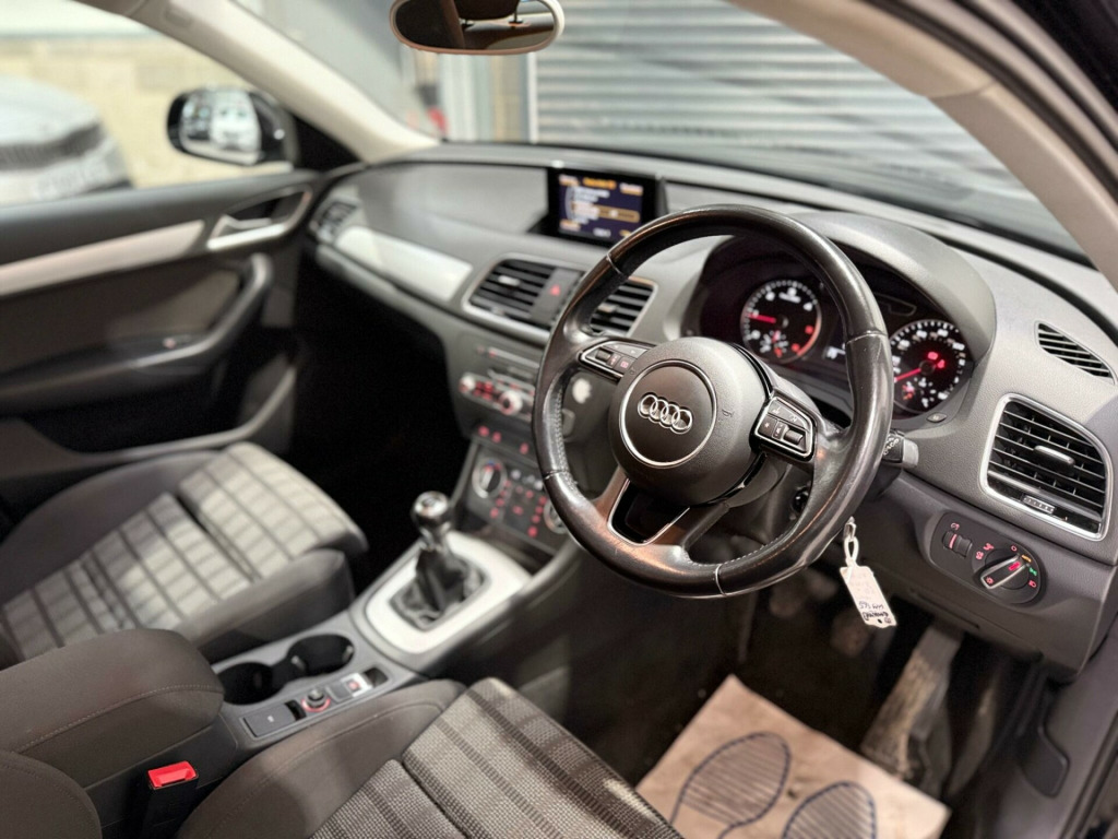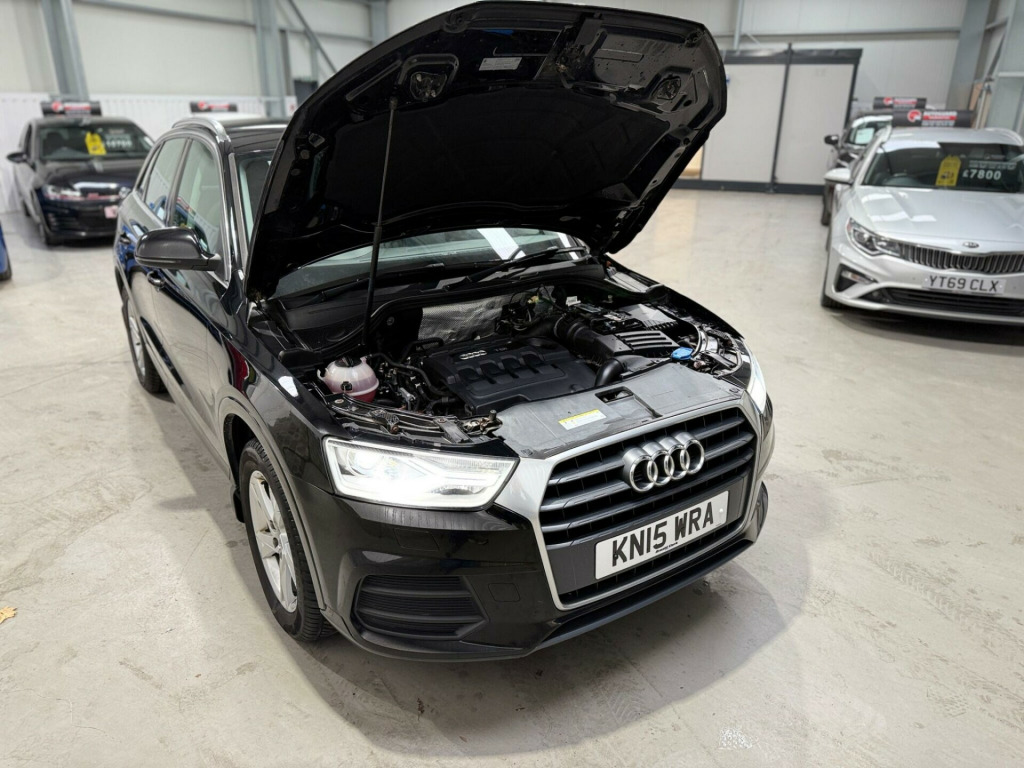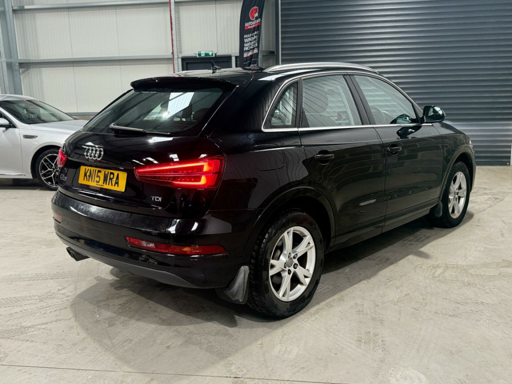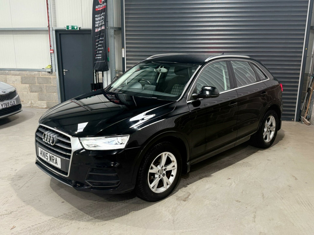GB Auto-Care presents this stunning Audi Q3 2.0 TDI SE Euro 6 (s/s) 5dr. Boasting huge spec and sportiness! Comes with a fresh MOT until June 26, vehicle will go through our onsite workshop for a full Pre sale Mechanical Inspection and a full service, will leave us with a 6 month premium Warranty with nationwide breakdown included and with options to extend. FINANCE AVAILABLE NATIONWIDE HOME DELIVERY PART X WELCOMEWith only one owner and a remarkably low mileage for its age, this 2015 Audi Q3 TDI SE presents a compelling proposition. This Euro 6 compliant model boasts a 2.0 litre diesel engine, offering an impressive fuel economy of 63 mpg. The vehicle comes with a clear vehicle history check and a valid MOT until June 2026, supported by partial service history, with the last service completed on 31 October 2025 at 76,330 miles. A 6 month warranty provides added peace of mind.The Q3 TDI SE is equipped with a Comfort Package Plus, featuring parking assistance with front sensors and a rear camera, making manoeuvring effortless. Audi Hill Hold Assist is also included, alongside rear side airbags for enhanced safety. Inside, you'll find an aluminium gear knob and dual zone electronic climate control, ensuring a comfortable driving experience for all occupants. This Audi Q3 also benefits from a low insurance group and low CO2 emissions, indicating it is a more economical choice compared to similar vehicles. v power socket - rear centre console, 17in alloy wheels - 7j 5-spoke y design, 6.5in display screen, abs - anti-lock braking system, ami - audi music interface, asr - anti slip regulation, airbags - driver, airbags - front passenger, airbags - front side, airbags - head system, alarm - thatcham category 1, aluminium-effect door mirror housings, anthracite metallic finish on bumpers-wheel arch trims-lower door trims, anti theft locking wheel bolts, audi drive select, automatic wipers with rain sensor, brake lights - led, car jack, cloth headlining in lunar silver, concert radio - mp3/cd player, dab digital radio, door mirrors - body coloured with integrated led indicators, door mirrors - electrically adjustable and heated, door sill trims with aluminium inlay, drivers information system - dis, dual-zone electronic climate control, dynamic suspension, ebd - electronic brakeforce distribution, edl - electronic differential lock, esp - electronic stability programme, electric windows - front and rear, electrically adjustable 4-way lumbar support, electromechanical parking brake, electromechanical power steering, exhaust tailpipe - chrome plated, first aid kit, floor mats - front and rear in velour, folding storage compartment in front centre armrest, front centre armrest - adjustable, front fog lights, front passenger airbag deactivation switch, front sports seats, full paint finish, headlights - automatic activation, headlights - automatic adjustment, headlights - automatic dynamic range control, headlights - bi-xenon plus, headlights - coming-leaving home function, headlights - electric range control, heated windscreen washer jets, isofix child seat mounting for front passenger, isofix child seat preparation for rear seats with top tether, inlays - micrometallic silver, led daytime running lights, led rear indicators, led rear lights, manual front seat adjustment, mobile telephone preparation - bluetooth interface, preparation for sd card-based navigation system, rear parking sensors, remote central locking with 2 fold away keys, reversible luggage compartment floor, roof rails - aluminium, sdhc card reader x2, seat belt reminder, secondary collision brake assist, smoking package, space saver spare wheel, speakers x8, split-folding rear seats, stainless steel loading sill protector, steering wheel - 3-spoke leather-multifunction-q-design, steering wheel - height and reach adjustable, steering wheel - multi-function, sunband for windscreen, tp memo - automatically saves traffic news, tool kit, towbar preparation, tyre pressure monitoring system, voice control - telephone, warning triangle, washer fluid level indicator, window surrounds - aluminium, audi hill hold assist, rear side airbags, 17in alloy wheels - 10-spoke design, comfort package plus, gear knob - aluminium