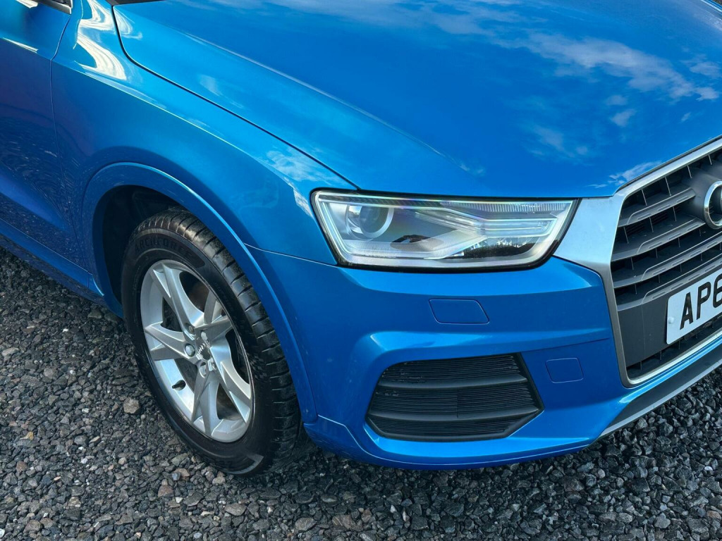 Specialist Cars are proud to offer this stunning Audi Q3 2.0 TDI SE Euro 6. Our Q3 is presented in Hainan Blue metallic with complimenting black Nappa leather interior. Boasting a magnificent service history and we will also service the car along with the all important timing belt and water pump. The car will also come with a new MOT ensuring all advisory notices (if any) will be completed. This is not your average abused and tatty SUV. The car is in fantastic condition throughout, the paintwork is amazing considering the age and mileage. The seats, plastics and buttons are in unbelievable condition showing very minimal wear. An absolute credit to its previous owner and Audis build quality and durability. On the road the car is a pleasure to drive. Its 2.0 turbo charged diesel engine comes with a healthy 148 BHP which gives this Q3 an impressive 0-62 time of 9.6 seconds. The interior is a lovely place to be, the seats are supportive, sporty and comfortable. All of the controls are neatly placed and are very easy to use. This car is also ultra low emission & clean air zone compliant. The car is just £35 to tax for the year and a claimed average of 62.8 miles to the gallon this Q3 is a very cheap car to run!, Please visit our website for full details and the specification, we have taken pictures of the cars specification and special features. Examples like this one do not come around often, a family car in this condition at this price point is a challenge. 6 MONTHS PARTS AND LABOUR WARRANTY!, Thinking of financing this Audi Q3? Please feel free to call one of our team and we will run a no obligation competitive finance quote for you through one of our several lenders.