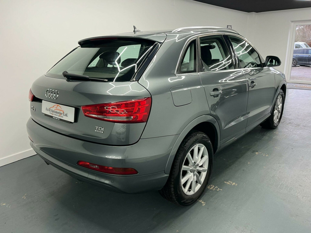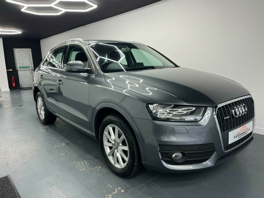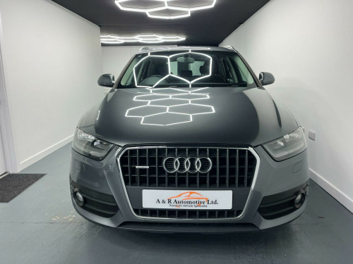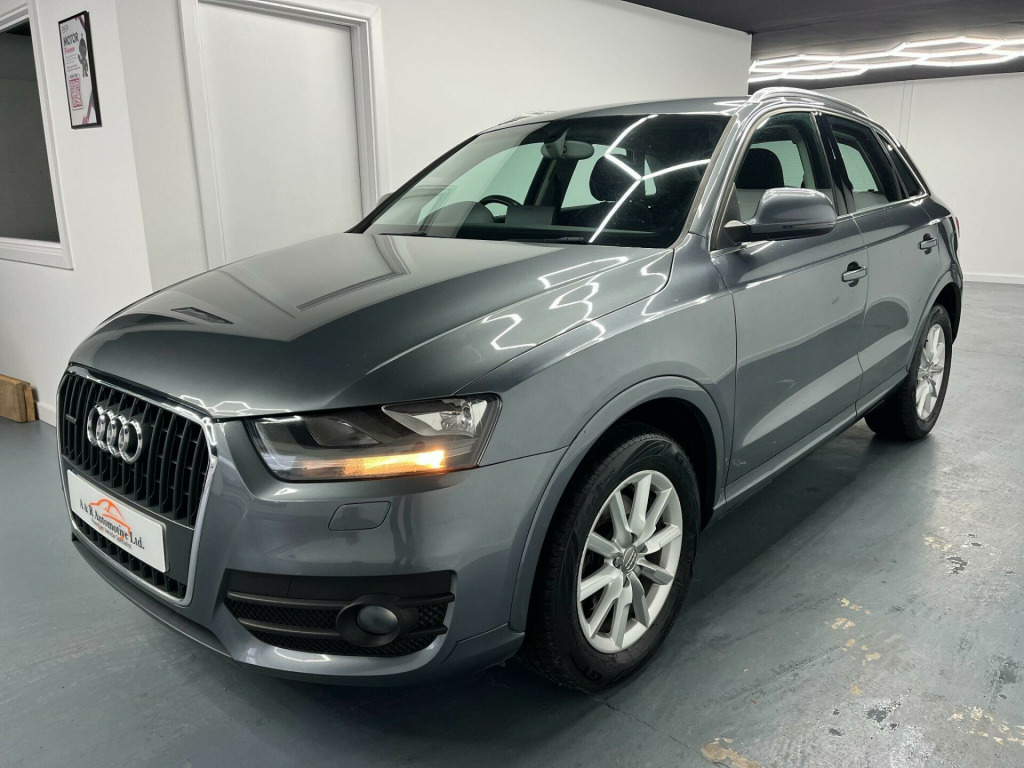 This 1 Owner 2013 Audi Q3 Quattro is in fantastic condition inside and out. It comes with a FULL Service History (CAMBELT DONE), 2 Keys and is sold with a new MOT. This has got to be the best Q3 of it's age on the market today!OUR SHOWROOM AND FORECOURT ARE NOW OPEN FOR VIEWINGS!WE ARE ALSO STILL OPERATING OUR VIDEO CALL VIEWING AND RESERVE AND COLLECT SERVICE IF REQUIRED. ALL VEHICLES COME WITH A NEW MOT, VEHICLE INSPECTION & 3 MONTHS WARRANTY VALID THROUGHOUT THE UK.All vehicles are HPI checked and clear, Part Exchanges Welcome, Credit and Debit cards accepted, Finance available competitive rates. Viewing by appointment only, To arrange your viewing appointment please contact on either phone number or email at aandrautomotivegmail.comA & R, Just Nice People To Deal With. di sound system, colour drivers information system - dis, satellite navigation system - sd card based, 17in alloy wheels - 5-arm trias design, full paint finish, steering wheel - 3-spoke leather-multifunction-q-design, style cloth - black, 12v power socket, 17in alloy wheels - 10-spoke design, 6.5in display screen, abs - anti-lock braking system, ami - audi music interface, asr - anti slip regulation, acoustic parking system - rear, airbags - driver, airbags - front passenger, airbags - front side, airbags - head system, alarm - thatcham category 1, aluminium roof rails, anthracite metallic finish on bumpers-wheel arch trims-lower door trims, anti theft locking wheel bolts, automatic wipers with rain sensor, car jack, cloth headlining, concert radio - mp3/cd player, daytime running lights, door mirrors - body coloured with integrated led indicators, door mirrors - electrically adjustable and heated, door sill trims with aluminium inlay, drivers information system - dis, dual-zone electronic climate control, dynamic suspension, ebd - electronic brakeforce distribution, edl - electronic differential lock, esp - electronic stability programme, efficiency program in the drivers information system - dis, electric windows - front and rear, electromechanical parking brake, electromechanical power steering, first aid kit, folding storage compartment in front centre armrest, front centre armrest - adjustable, front fog lights, front passenger airbag deactivation switch, front and rear floor mats, glovebox - ventilated, halogen headlights, headlights - automatic adjustment, headlights - coming-leaving home function, headlights - range adjustment, heated windscreen washer jets, isofix child seat mounting for front passenger and rear outer seats, inlays - monometallic platinum, mobile telephone preparation - bluetooth interface, preparation for sd card-based navigation system, rear air vents in rear centre console, remote central locking with 2 fold away keys, sdhc card reader x2, seat belt reminder, seats - drivers manual height adjustment, smoking package, speakers x8, split-folding rear seats, stainless steel loading sill protector, steering wheel - 4-spoke leather trimmed/multifunction, steering wheel - height and reach adjustable, steering wheel - multi-function, sunband for windscreen, tp memo - automatically saves traffic news, tool kit, towbar preparation, tyre mobility system, voice control - telephone, warning triangle, washer fluid level indicator, window surrounds - aluminium