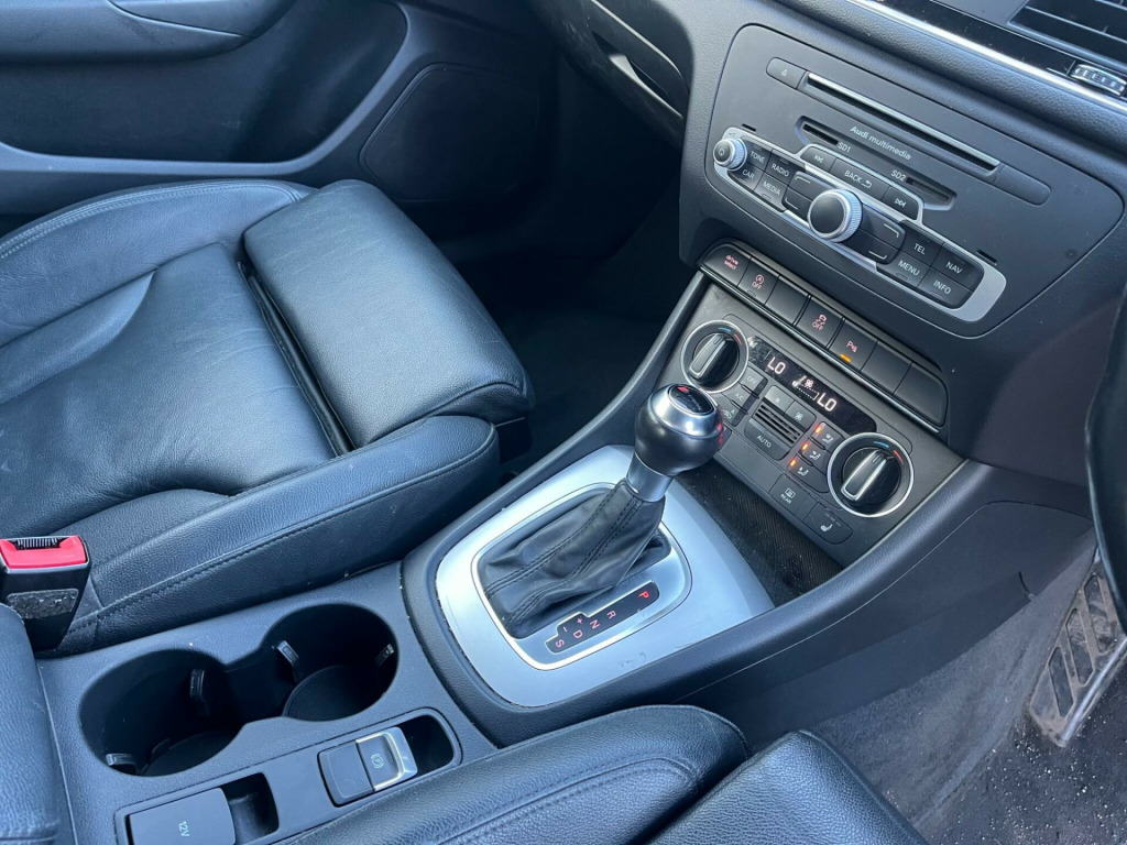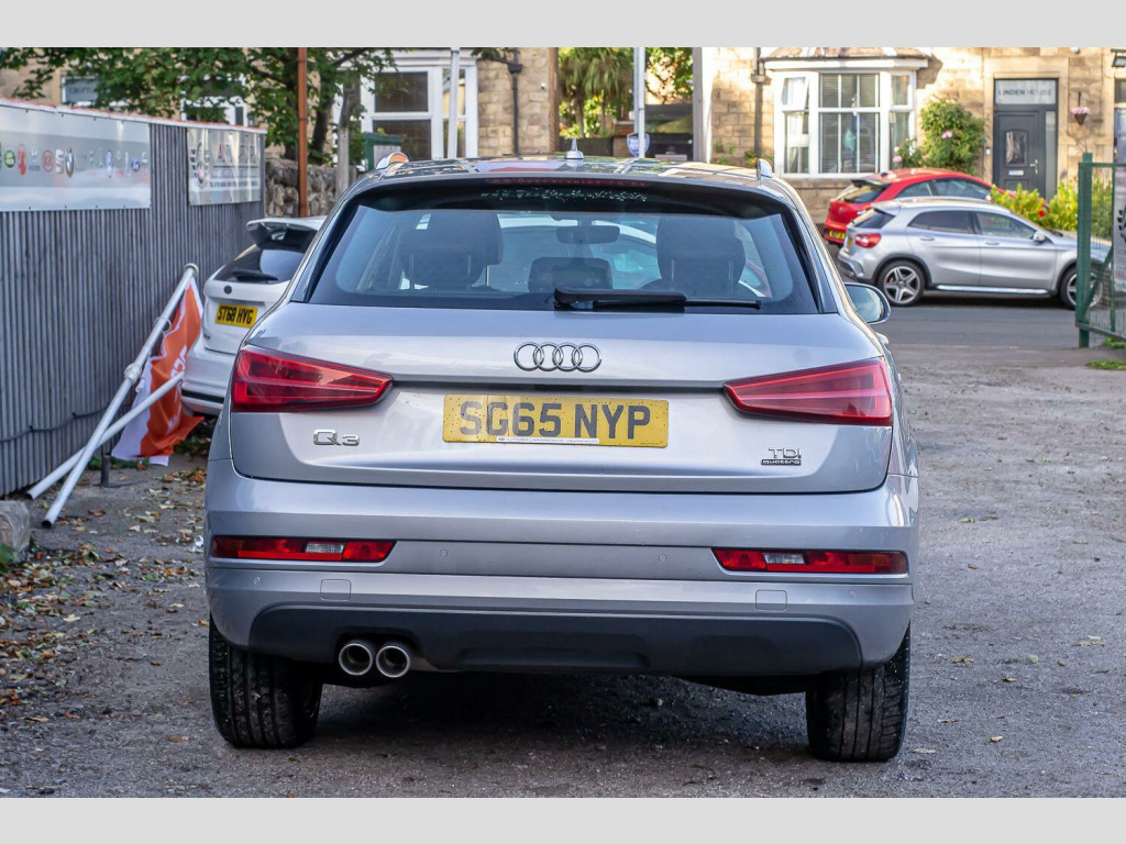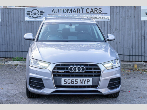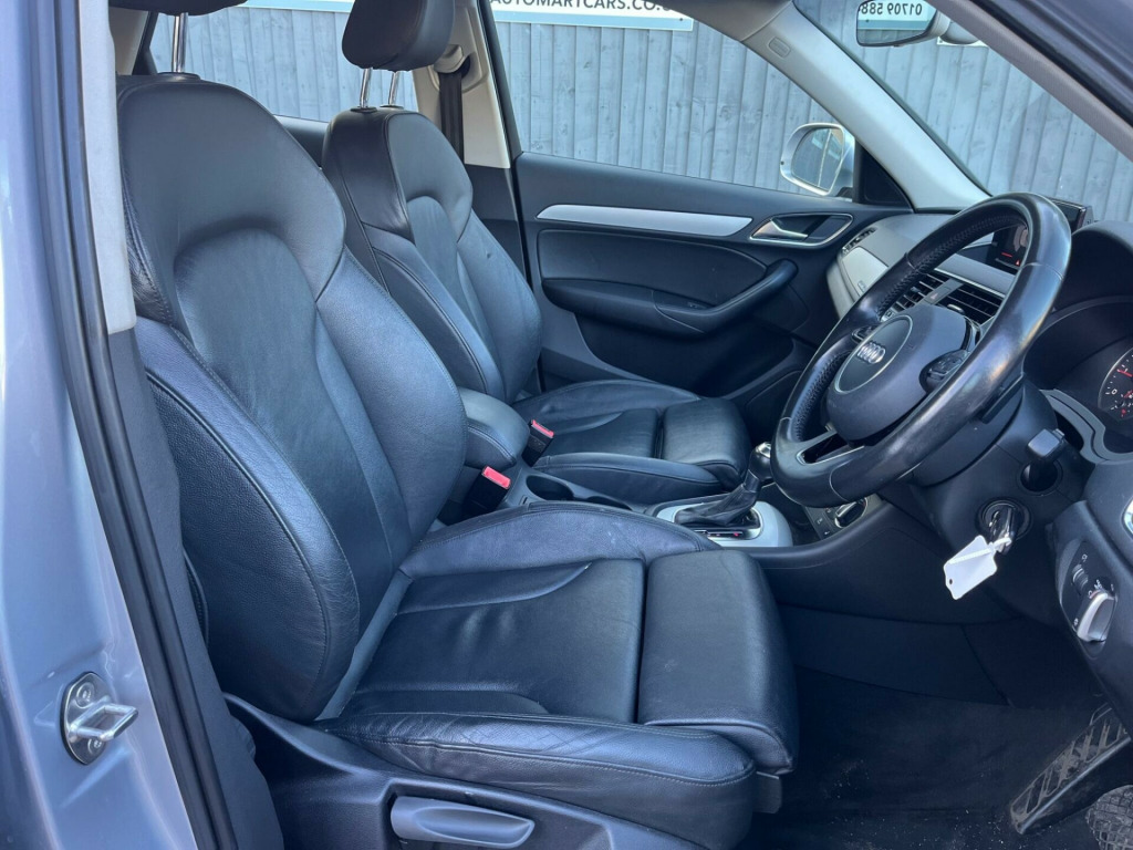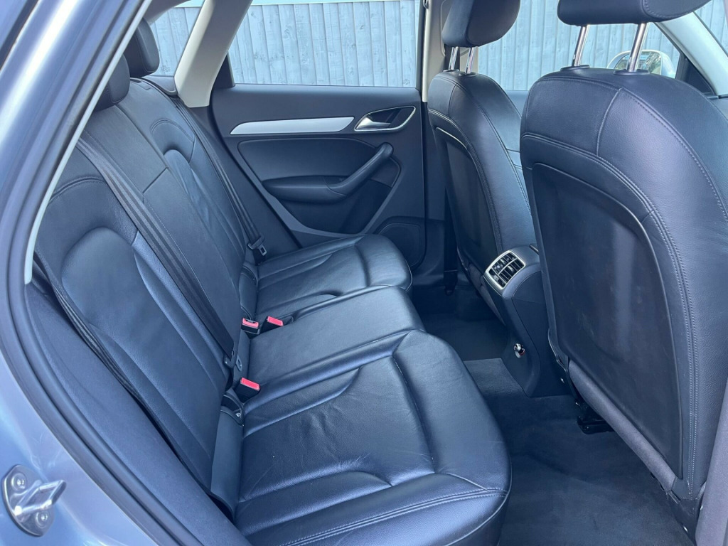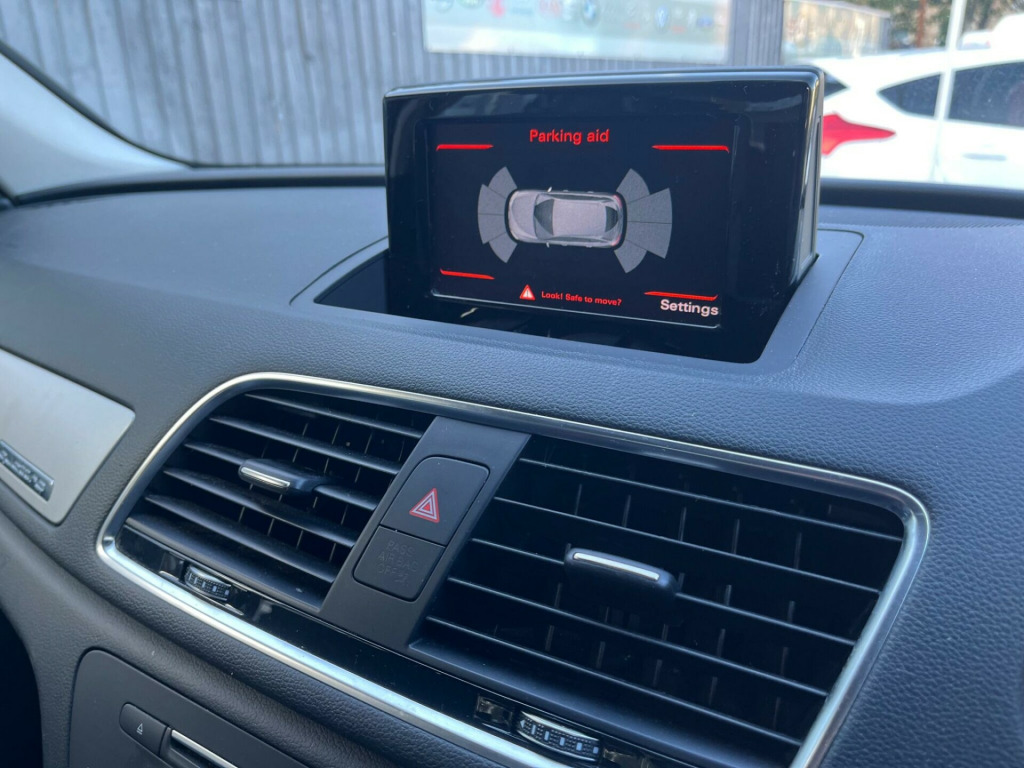 Benefit from a 3 month warranty on this Audi Q3 TDI SE, registered in 2015, offering peace of mind with its partial service history. This Four Wheel Drive model is equipped with a 2.0L Diesel Engine and meets Euro 6 emissions standards. Inside, you'll find comfortable Milano Leather Sports Seats in Black, complemented by heated front seats for those colder journeys. The SE trim also includes the Comfort Package, featuring the Audi Parking System Plus with Park Assist and front sensors, making parking a breeze.Experience impressive performance with this Audi Q3, capable of accelerating from 0 to 60mph in just 7.6 seconds, a testament to its powerful 2.0L engine. This vehicle also boasts an excellent fuel economy of 54 mpg, indicating it is more efficient than many similar cars. The Advanced Key system, providing keyless entry, adds a touch of modern convenience to your driving experience.. 12V Power Socket - Rear Centre Console, 17in Alloy Wheels - 7J 5-Spoke Y Design, 6.5in Display Screen, ABS - Anti-Lock Braking System, AMI - Audi Music Interface, ASR - Anti Slip Regulation, Airbags - Driver, Airbags - Front Passenger, Airbags - Front Side, Airbags - Head System, Alarm - Thatcham Category 1, Aluminium-Effect Door Mirror Housings, Anthracite Metallic Finish on Bumpers-Wheel Arch Trims-Lower Door Trims, Anti Theft Locking Wheel Bolts, Audi Drive Select, Automatic Wipers with Rain Sensor, Brake Lights - LED, Car Jack, Cloth Headlining in Lunar Silver, Concert Radio - MP3/CD Player, DAB Digital Radio, Door Mirrors - Body Coloured with Integrated LED Indicators, Door Mirrors - Electrically Adjustable and Heated, Door Sill Trims with Aluminium Inlay, Drivers Information System - DIS, Dual-Zone Electronic Climate Control, Dynamic Suspension, EBD - Electronic Brakeforce Distribution, EDL - Electronic Differential Lock, ESP - Electronic Stability Programme, Electric Windows - Front and Rear, Electrically Adjustable 4-Way Lumbar Support, Electromechanical Parking Brake, Electromechanical Power Steering, Exhaust Tailpipe - Chrome Plated, First Aid Kit, Floor Mats - Front and Rear in Velour, Folding Storage Compartment in Front Centre Armrest, Front Centre Armrest - Adjustable, Front Fog Lights, Front Passenger Airbag Deactivation Switch, Front Sports Seats, Full Paint Finish, Headlights - Automatic Activation, Headlights - Automatic Adjustment, Headlights - Automatic Dynamic Range Control, Headlights - Bi-Xenon Plus, Headlights - Coming-Leaving Home Function, Headlights - Electric Range Control, Heated Windscreen Washer Jets, ISOFIX Child Seat Mounting for Front Passenger, ISOFIX Child Seat Preparation for Rear Seats with Top Tether, Inlays - Micrometallic Silver, LED Daytime Running Lights, LED Rear Indicators, LED Rear Lights, Manual Front Seat Adjustment, Mobile Telephone Preparation - Bluetooth Interface, Preparation for SD Card-Based Navigation System, Rear Parking Sensors, Remote Central Locking with 2 Fold Away Keys, Reversible Luggage Compartment Floor, Roof Rails - Aluminium, SDHC Card Reader x2, Seat Belt Reminder, Secondary Collision Brake Assist, Smoking Package, Space Saver Spare Wheel, Speakers x8, Split-Folding Rear Seats, Stainless Steel Loading Sill Protector, Steering Wheel - 3-Spoke Leather-MultiFunction-Shift Paddles-Q-Design, Steering Wheel - Gear-Shift Paddles, Steering Wheel - Height and Reach Adjustable, Steering Wheel - Multi-function, Sunband for Windscreen, TP Memo - Automatically Saves Traffic News, Tool Kit, Towbar Preparation, Tyre Pressure Monitoring System, Voice Control - Telephone, Warning Triangle, Washer Fluid Level Indicator, Window Surrounds - Aluminium, Audi Parking System Plus with Park Assist, Audi Sound System, Colour Drivers Information System - DIS, Cruise Control, Advanced Key, Audi Hill Hold Assist, Rear Side Airbags, 17in Alloy Wheels - 10-Spoke Design, Alcantara-Leather - Sport Seats - Black, Audi Exclusive Gear Lever - Fine Grain Ash - Nougat, Comfort Package, Heated Front Seats, Milano Leather - Sports Seats - Black, Technology Package. Part service history