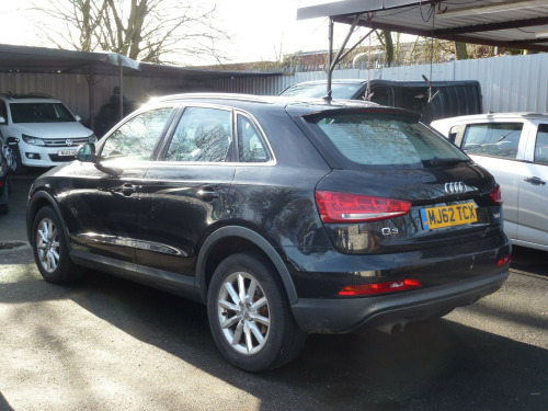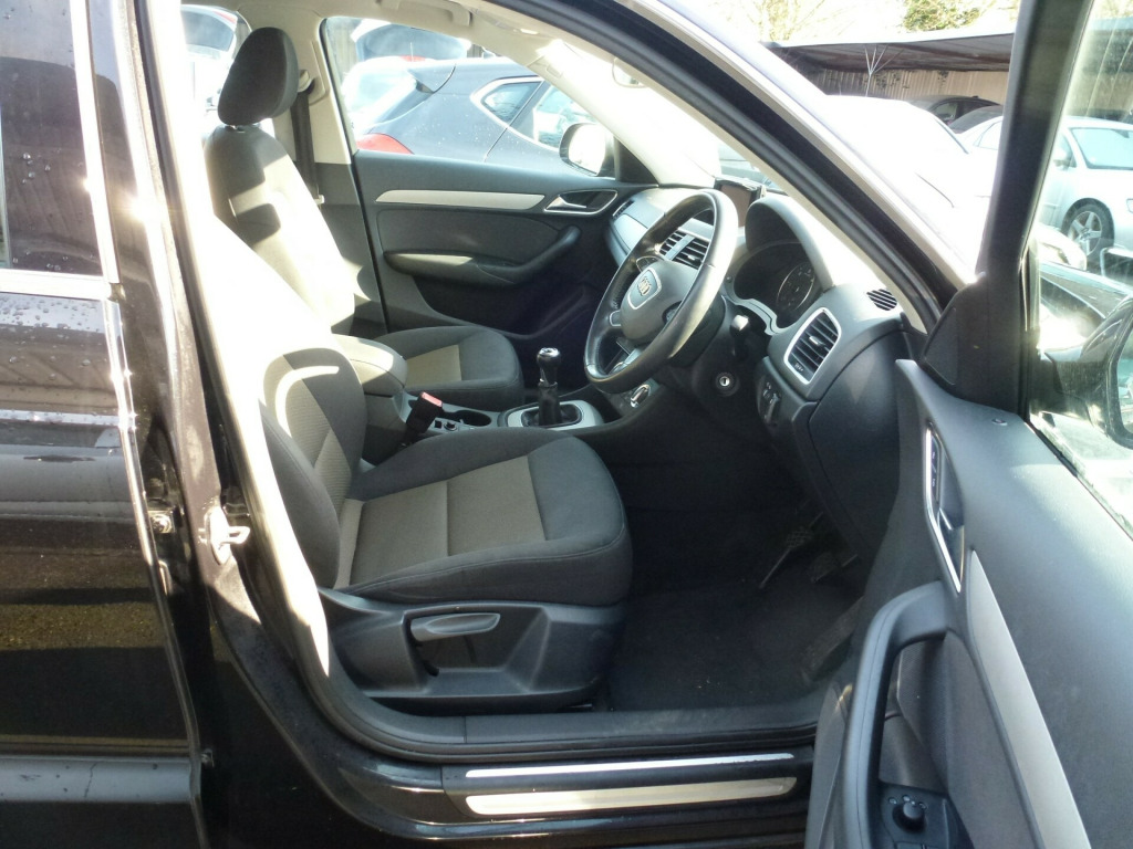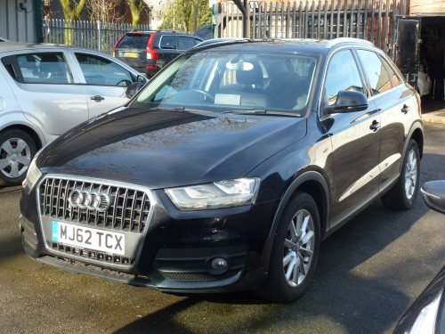 2012 AUDI Q3 2.0 TDi SE 5DR HATCHBACK, 6 Speed Manual, 107000 Miles Finished In Metalic Black With Black Cloth Interior Trim, Lovely Car In Fantastic Condition, Drives Superbly With No Faults, Fitted With Alloy Wheels, Satalite Navigation, Rear Parking Sensors, Electric Windows x4, Electric Mirrors, Air Conditioning, Auto Climate Control, Radio CD Player, Bluetooth Phone Connectivity, Aux Connection, USB Connection, Isofix Anchor Points, Traction Control, High Level Rear Brake Light, Rear Boot Spoiler, Front Fog lights, Tinted Privacy Glass, Remote Central Locking, 2 Keys, MOT Till 18/09/26, To Arrange a Viewing Call Steve on 07767783701, v power socket, 6.5in display screen, ami - audi music interface, concert radio - mp3/cd player, mobile telephone preparation - bluetooth interface, preparation for sd card-based navigation system, sdhc card reader x2, speakers x8, towbar preparation, 17in alloy wheels - 10-spoke design, aluminium roof rails, anthracite metallic finish on bumpers-wheel arch trims-lower door trims, anti theft locking wheel bolts, door mirrors - body coloured with integrated led indicators, door mirrors - electrically adjustable and heated, electric windows - front and rear, heated windscreen washer jets, sunband for windscreen, tyre mobility system, window surrounds - aluminium, abs - anti-lock braking system, asr - anti slip regulation, airbags - driver, airbags - front passenger, airbags - front side, airbags - head system, alarm - thatcham category 1, ebd - electronic brakeforce distribution, esp - electronic stability programme, electromechanical parking brake, first aid kit, front passenger airbag deactivation switch, isofix child seat mounting for front passenger and rear outer seats, remote central locking with 2 fold away keys, seat belt reminder, thatcham category 1 immobiliser, warning triangle, acoustic parking system - rear, drivers information system - dis, dynamic suspension, edl - electronic differential lock, efficiency program in the drivers information system - dis, electromechanical power steering, voice control - telephone, washer fluid level indicator, automatic wipers with rain sensor, car jack, cloth headlining, door sill trims with aluminium inlay, dual-zone electronic climate control, folding storage compartment in front centre armrest, front centre armrest - adjustable, front and rear floor mats, glovebox - ventilated, headlights - range adjustment, inlays - monometallic platinum, rear air vents in rear centre console, seats - drivers manual height adjustment, smoking package, split-folding rear seats, stainless steel loading sill protector, steering wheel - 4-spoke leather trimmed/multifunction, steering wheel - height and reach adjustable, steering wheel - multi-function, tp memo - automatically saves traffic news, tool kit, daytime running lights, front fog lights, halogen headlights, headlights - automatic adjustment, headlights - coming-leaving home function
