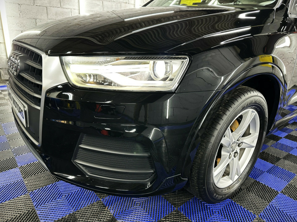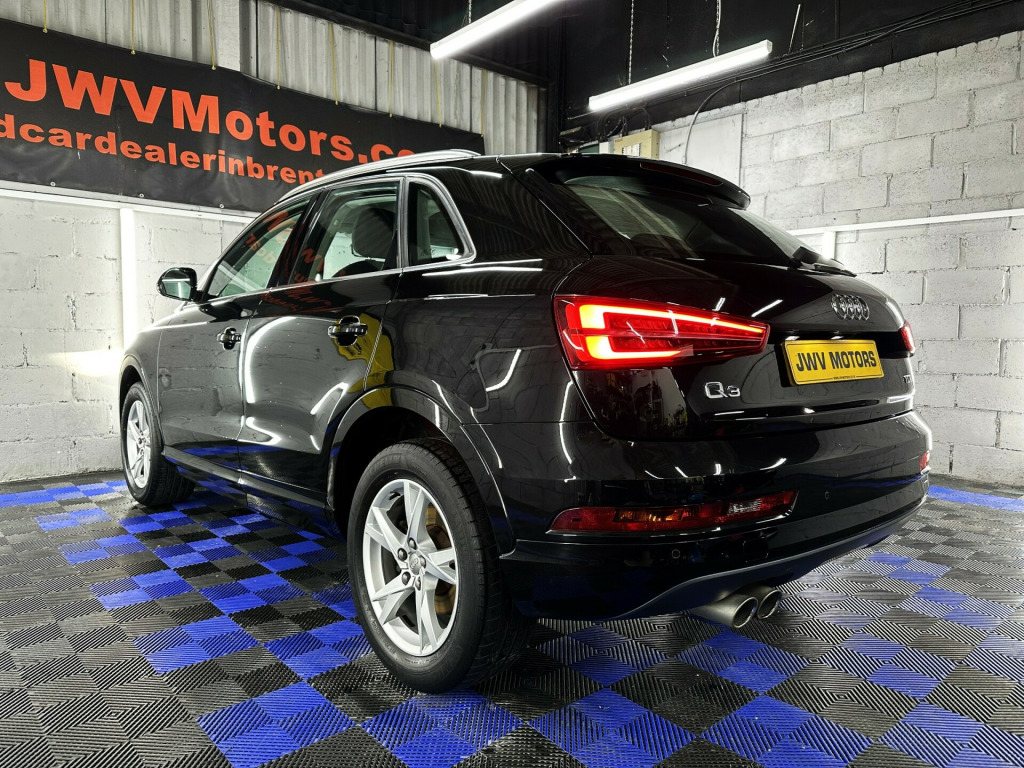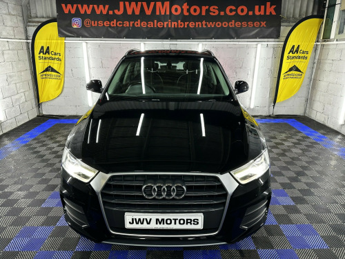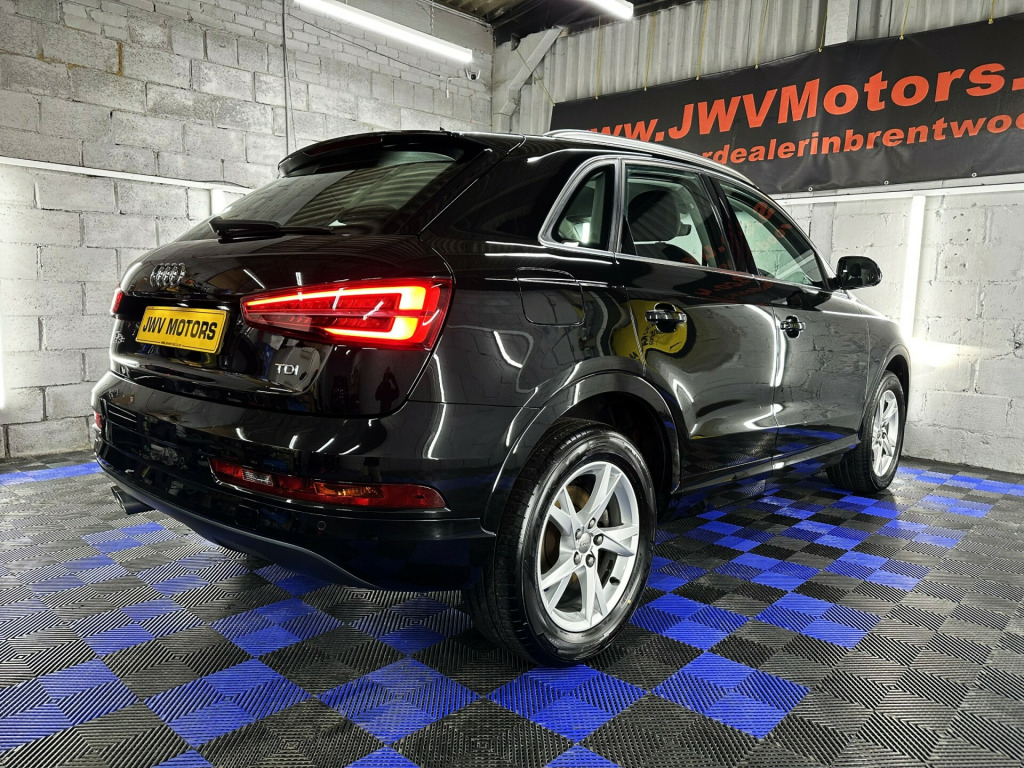 Hear we have a great looking Audi Q3 SE TDI with just 2 owners from new, which is in excellent condition inside and out for its age and mileage. Ulez compliant, Excellent running costs and excellent mpg for an SUV. Full main dealer service history comprising of 10 entries (Audi service printout). This car comes complete with our best 3 months comprehensive warranty, visit our website for full terms and conditions, for that extra peace of mind. HPI clear. Professionally valeted and detailed inside and out giving you the highest quality a car dealer can offer. The perfect new used car feeling. 2 x remote central locking key fobs. Part exchange welcome. This car is ready to drive away today. Appointments only giving you the customer our full attention, call today to arrange a viewing. All credit and debit cards accepted including American express. If you are looking for finance we work with a number of brokers to help find you the best deal. If you choose to finance your car with JWV Motors we will give you something back in return, up to months warranty with no admin fee. Unfortunately if you decide to choose an outsourced finance provider there will be an admin, this will vary depending on the company charges. If this car is not suitable for your needs you can visit all of our current stock on our website www.jwvmotors.co.uk. Why choose JWV Motors? Why not look at our reviews before making any decisions. Thank you for your time. SALE YOUR CAR THROUGH OUR SALE OR RETURN POLICY. INTERESTED PLEASE CALL FOR DETAILS. in alloy wheels - 7j 5-spoke y design, aluminium roof rails, aluminium window trims, anti theft locking wheel bolts, body-coloured door mirrors - electrically adjustable and heated with integrated led indicator signals, bright moulding, electric windows - front and rear, full body-colour finish on bumpers-wheel arch trims-lower door trims, heated windscreen washer jets, space saver spare wheel, windscreen with sunband, 3-spoke multi-function q-design steering wheel, 4-way electric lumbar support for front seats, cloth headlining, door sill trims with aluminium inlay, dual-zone electronic climate control, floor mats - front and rear in velour, front centre armrest, front sports seats, inlays - micrometallic flex silver, reversible luggage compartment floor, seats - split folding rear backrest, smoking package, stainless steel loading sill protector, steering wheel - height and reach adjustable, tool kit and car jack, 6.5in display screen, 8 passive speakers, ami - audi music interface, bluetooth interface, concert radio, dab digital radio, preparation for sd card-based navigation system, towbar preparation, audi drive select, drivers information system - dis, dynamic suspension, efficiency program in the drivers information system - dis, electromechanical power steering - speed-sensitive provides a precise steering feel at high speeds and excellent assistance when parking., rear parking sensors, tyre pressure loss indicator, voice control system, washer fluid level indicator, driver - front passenger - front side and head airbag system, esp - electronic stability programme, electromechanical parking brake, first aid kit, front passenger airbag deactivation switch, isofix child seat mounting, remote central locking, seat belt monitoring, thatcham category 1 alarm and immobiliser, warning triangle, front and rear fog lights, light and rain sensor, xenon plus headlights with led daytime running lights