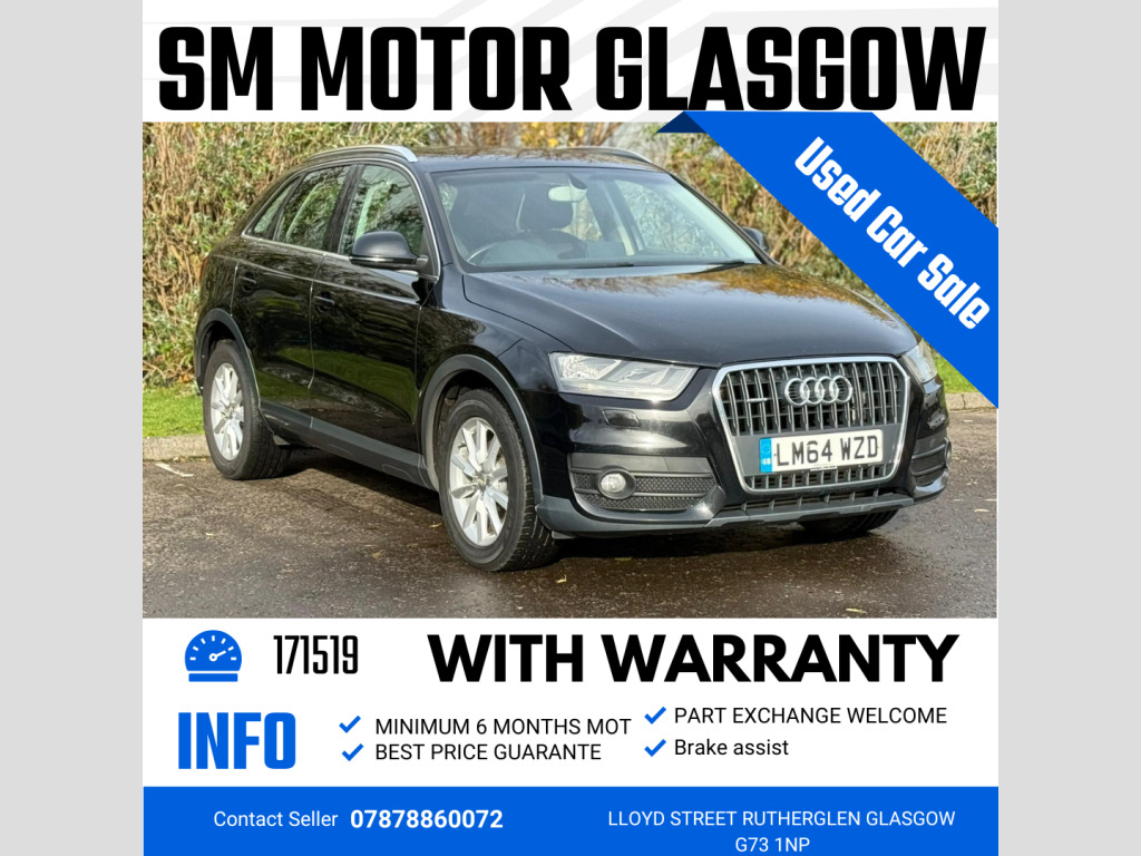 This 2014 Audi Q3 2.0 TDI SE SUV 5dr Diesel Manual quattro Euro 5 (s/s) (177 ps) is currently available for £4,999 in Rutherglen with Diesel engine and Manual gearbox. For more information or to arrange a viewing, click here to send us an email using form below.