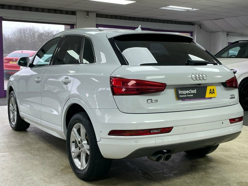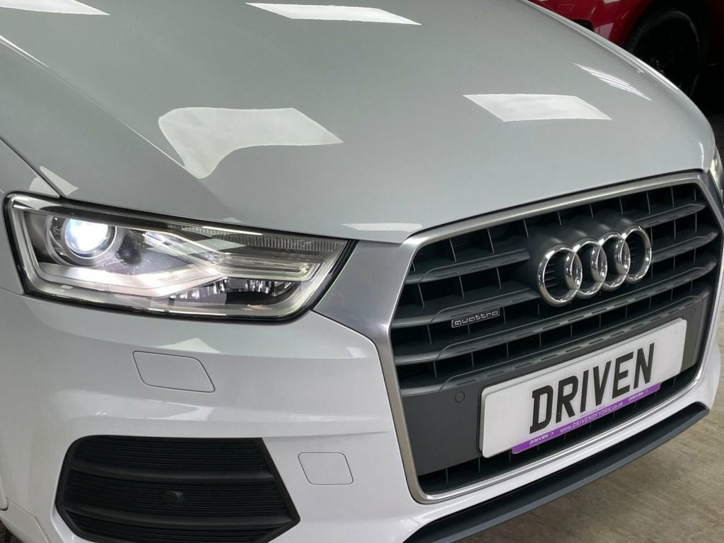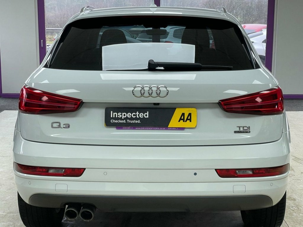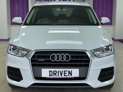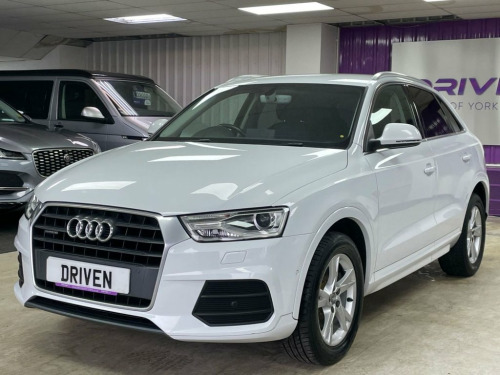 Driven Of York Are Proud To Present This 2015 65 Audi Q3 2.0 TDI SE S TRONIC Presented In Shell White With Complementing Black Cloth Interior. This Lovely Example Features 17" Multi Spoke Alloy Wheels, Bluetooth Telephone Preparation With Bluetooth Audio, SAT NAV, DAB/FM Radio, Front Loading CD Player With SD Card Slots , Dual Zone Climate Control, Electric Heated Wing Mirrors, Front And Rear Parking Sensors With Reverse Camera, Automatic Headlights With Daytime Running Lights, Multi-functional Steering Wheel With F1 Style Paddleshift Gearbox And Sports Drive Modes. Privacy Glass And Great Service History With 9 Total Services 4 By A Main Dealer! Reserve This Vehicle Now For Just £149. Sport Cloth - Sports Seats - Black - Sil, Audi Parking System Advanced with Revers, Satellite Navigation System - SD Card Ba, Privacy Glass, 17in Alloy Wheels - 10-Spoke Design, Shell White, 12V Power Socket - Rear Centre Console, 17in Alloy Wheels - 7J 5-Spoke Y Design, 6.5in Display Screen, ABS - Anti-Lock Braking System, AMI - Audi Music Interface, ASR - Anti Slip Regulation, Airbags - Driver, Airbags - Front Passenger, Airbags - Front Side, Airbags - Head System, Alarm - Thatcham Category 1, Anti Theft Locking Wheel Bolts, Audi Drive Select, Automatic Wipers with Rain Sensor, Brake Lights - LED, Car Jack, Cloth Headlining in Lunar Silver, Concert Radio - MP3/CD Player, DAB Digital Radio,