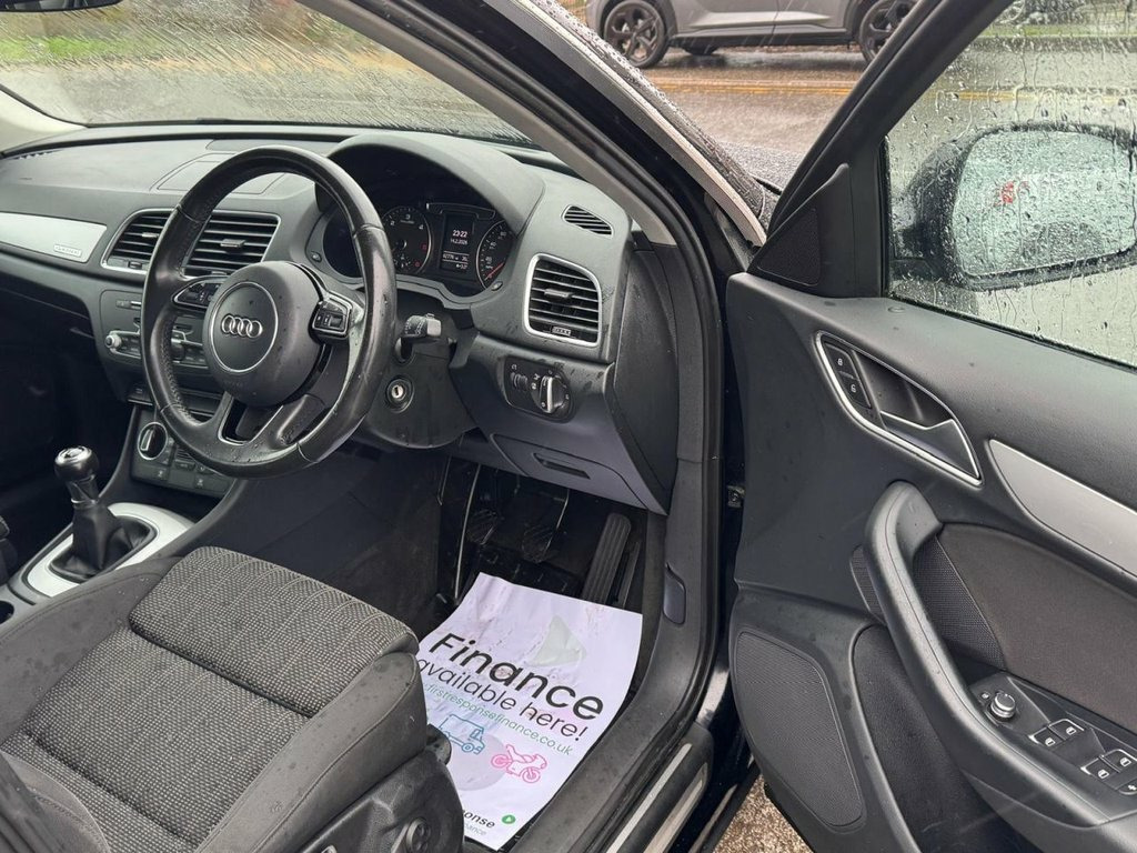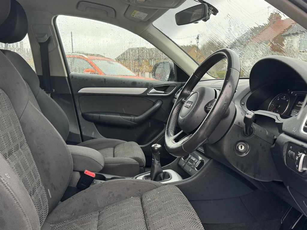 This 2016 Audi Q3 TDI Sport is a well maintained example with a clear vehicle history check. It features a 2.0 litre diesel engine paired with four wheel drive, offering a Euro 6 emission class. The Sport trim includes Xenon Plus headlights with LED daytime running lights, and automatic on headlights activated by a light and rain sensor. For convenience, it also comes with rear parking sensors and a Bluetooth interface, all managed within a dual zone electronic climate control system. This Audi Q3 is designed to be economical and efficient, achieving an impressive 58 miles per gallon. Its low CO2 emissions and low insurance group rating indicate that running costs are kept to a minimum, making it a more sensible choice compared to many other vehicles in its class. 17in Alloy Wheels - 7J 5-Spoke Y Design, 4-Way Electric Lumbar Support for Front , 6.5in Colour Display Screen, 8 Passive Speakers, Aluminium Roof Rails, Aluminium Window Trims, AMI - Audi Music Interface, Anti Theft Locking Wheel Bolts, Audi Drive Select, Bluetooth Interface, Body Coloured Door Mirrors, Cloth Headlining, Concert Radio, DAB Digital Radio, Door Sills with Aluminium Inlays, Driver - Front Passenger - Front Side an, Drivers Information System - DIS, Dual-Zone Electronic Climate Control, Dynamic Suspension, Efficiency Program in the Drivers Inform, Electric Windows - Front and Rear, Electromechanical Parking Brake, Electromechanical Power Steering - Speed, Electronic Stability P