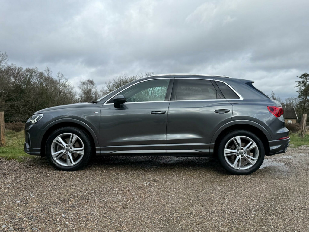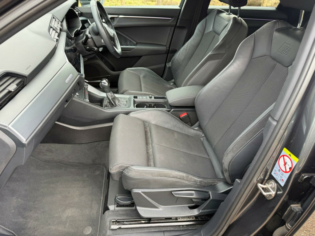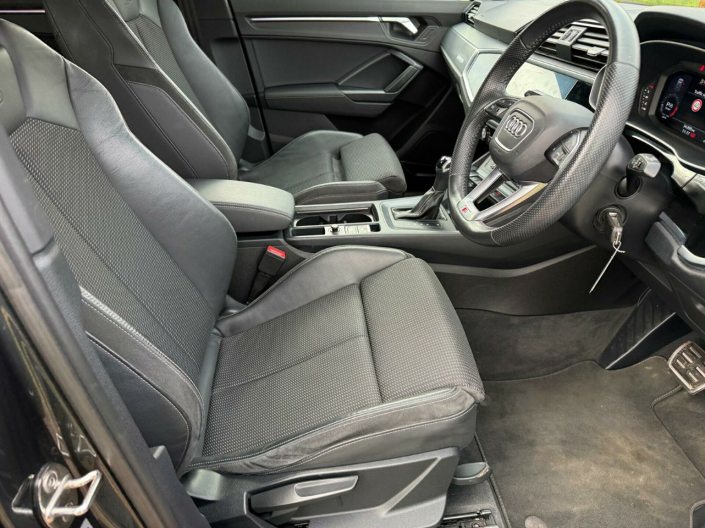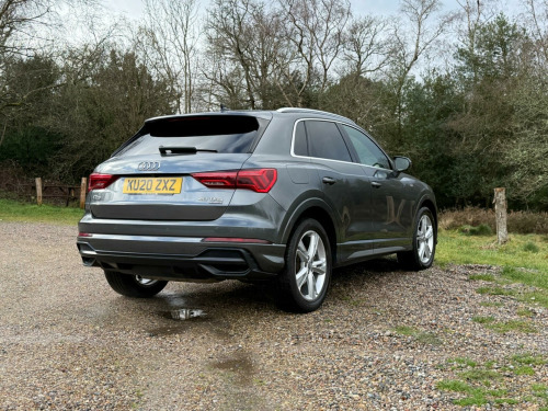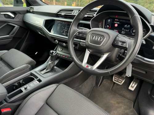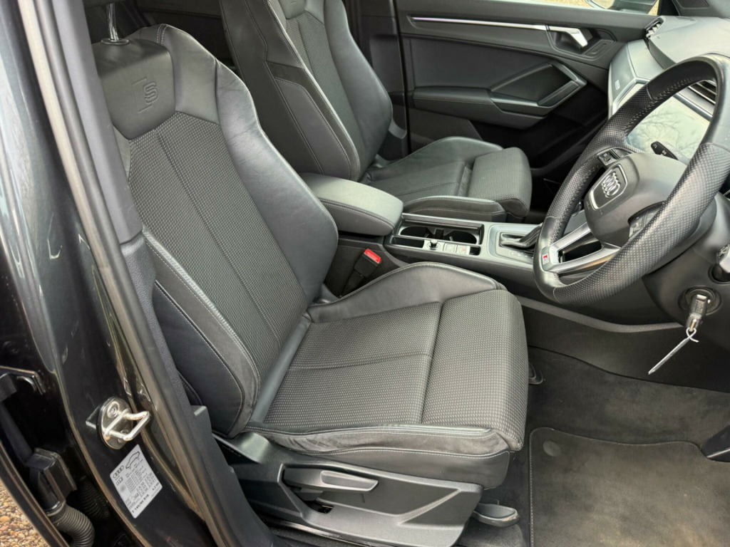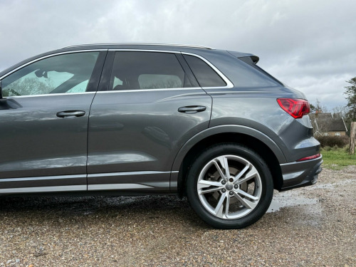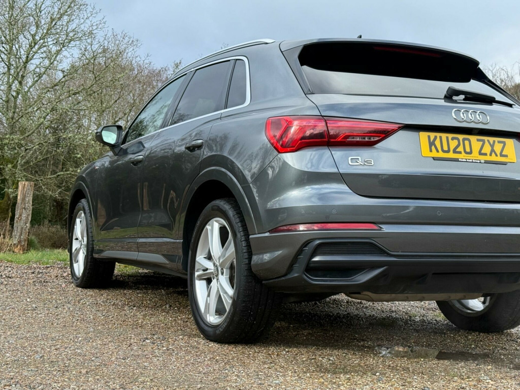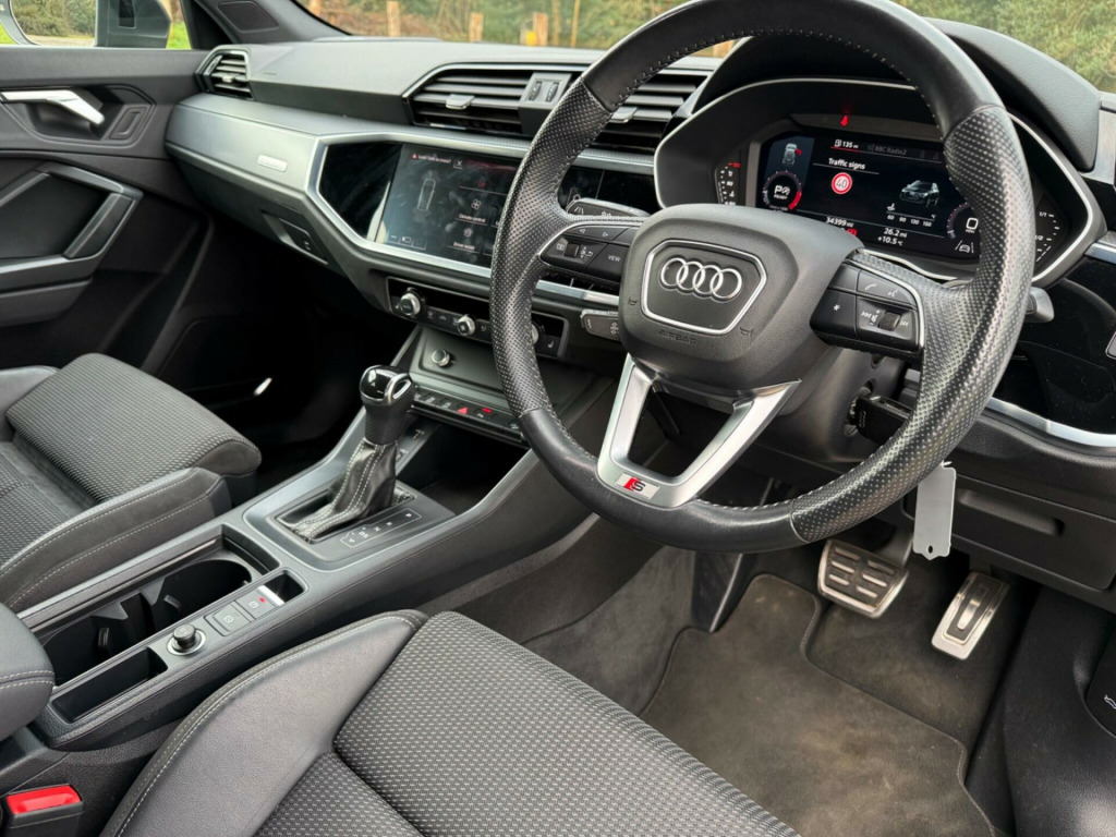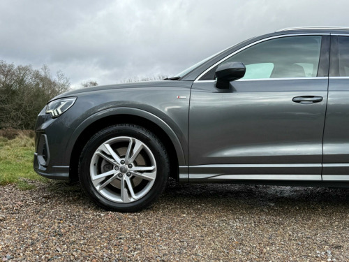 This 2020 Audi Q3 TFSI S line offers exceptional provenance with only one owner and a remarkably low mileage of 34,000 miles for its age, all backed by a clear vehicle history check. This Euro 6 compliant model boasts a powerful 2.0 litre petrol engine paired with Audi's renowned four wheel drive system, ensuring confident performance in all conditions. The S line trim enhances its sporty appeal, while the Comfort and Sound Package, featuring heated seats, and the Extended Ambient Lighting Pack with multi coloured options, create a truly inviting interior.Experience the dynamic capabilities of this Q3, which accelerates from 0 to 62mph in a swift 7.4 seconds, demonstrating its performance advantage over many similar vehicles. Practicality is also a strong suit, with generous boot space designed to accommodate your needs. Further enhancing your driving experience are the advanced LED headlights with dynamic rear indicators, Audi Side Assist for added safety on the road, and rear parking sensors to assist with manoeuvring. EMAIL: salesholwoodcarsltd.co.ukTELEPHONE: 01689 853475WEBSITE: www.holwoodcarsltd.co.ukWE OPERATE BY APPOINTMENT ONLY. PLEASE CALL THE SHOWROOM TO BOOK A TIME SLOT. SUPPLIED WITH 6 MONTHS RAC PLATINUM PLUS WARRANTY, 12 MONTH BREAKDOWN COVER AND 82 POINT RAC COMPLIANT INSPECTION mfort and sound package, extended ambient lighting pack - multi-coloured, 19in alloy wheels - 5-twin-spoke dynamic, 3-spoke leather multi-function steering wheel - s badging and grips in perforated leather with contrast stitching, 6 passive loud speakers, 6-airbag system, adjustable rear seat bench-backrest with centre armrest and cupholder, aluminium roof rails, aluminium window trims, ambient lighting pack, anti theft locking wheel bolts, anti-theft alarm, audi connect infotainment services plus (3 year subscription from new), audi connect safety and service - e-call, audi drive select, audi pre-sense front with pedestrian and cyclist recognition, audi side assist, audi smartphone interface, audi virtual cockpit - 10.25in display, auto dimming and frameless rear view mirror, b and c-pillar trim in high-gloss black, bluetooth interface, body coloured door mirrors, bumpers in full body colour paint finish, cloth headlining in black, cruise control system with speed limiter, dab digital radio, detail in dashboard around the mmi touch colour display, diffuser - platinum grey - matt, door mirrors - electrically adjustable and heated with integrated led side indicators, door sill trims with aluminium inlay, dual-zone electronic climate control, esc - electronic stabilisation control inc abs - asr and edl, first aid kit and warning triangle, frame of front side air inlets in platinum grey - matt, front centre armrest, front spoiler blade in platinum grey - matt, front sport seats with s embossed logo, front and rear floor mats in black with contrast stitching in rock grey, gear knob - perforated leather, grille vertical bars in aluminium silver - matt, hold assist, isofix child seat mounting for the front passenger seat with front passenger airbag deactivation and isofix child seat mounting and top tether for the outer rear seats, illuminated door sill trims with s logo, inlays - matt brushed aluminium - dark, interior elements in leatherette, led headlights with led daytime running lights and dynamic rear indicator, led rear lights, lane departure warning, light and rain sensor, luggage compartment sill protection in stainless steel, mmi navigation plus with high resolution 10.1in touchscreen colour display, manual seat adjustment for front seats, non-smoking package, pedals in stainless steel, power operated tailgate, pre-sense basic, privacy glass, progressive steering, radiator grille - titanium black, rear parking sensors, s line badges on the front wings, s line front and rear bumpers and side skirts, seat belt monitoring, side skirt insert in platinum grey - matt, sport suspension, tool kit, tow bar preparation, tyre pressure warning light, tyre repair kit, voice control system with natural language interaction, windscreen with acoustic glazing