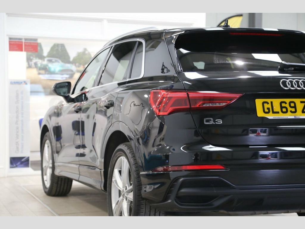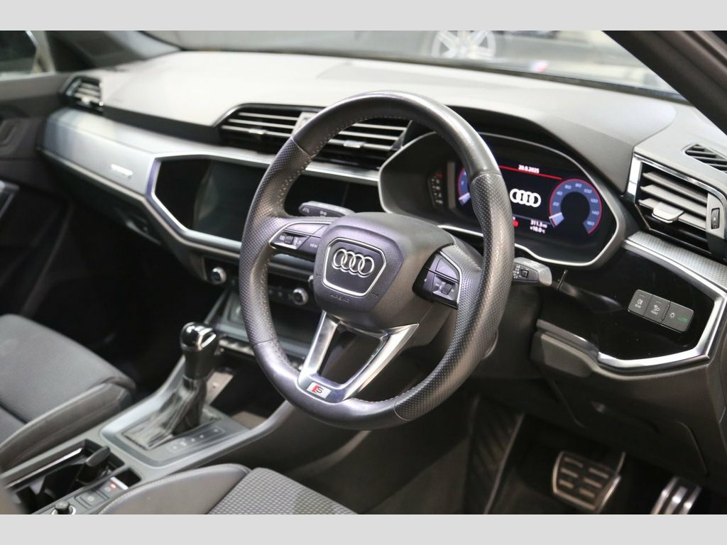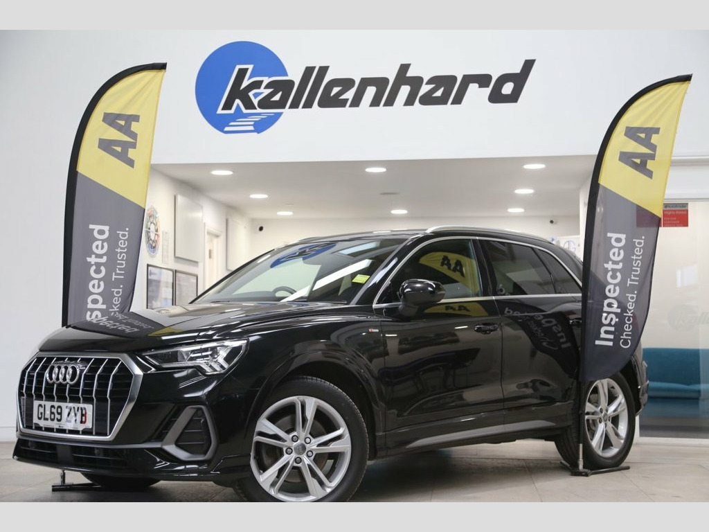 The Audi Q3 2.0 TFSI 40 S line quattro blends striking design, confident performance and everyday versatility in a premium SUV. Finished in Mythos Black, its bold stance is enhanced by 19-inch alloy wheels, S line styling elements, and privacy glass for a refined yet athletic presence. Powered by a 190 PS petrol engine, paired with the smooth S tronic transmission and Audi's renowned quattro all-wheel drive, it delivers assured traction and dynamic handling in all conditions. Inside, stainless steel pedals, quality materials, and precise detailing create a cockpit focused on both comfort and control. Audi drive select allows the driver to tailor performance to suit the road ahead, while light and rain sensors add seamless convenience to every journey. With its combination of sharp design, intelligent engineering, and adaptable performance, the Q3 S line embodies the progressive spirit of Audi. Service History: 09/12/2024 @ 51255 miles 18/03/2024 @ 46178 miles 08/06/2023 @ 40776 miles 23/02/2023 @ 38108 miles 07/04/2022 @ 28709 miles 14/07/2021 @ 19412 miles 08/09/2020 @ 11360 miles 15/12/2019 @ 0 miles At Kallenhard Engineering we specialise in Performance, Prestige, and 4×4s. Because preparation is at the heart of everything we do, all our cars are prepared mechanically and cosmetically to the highest standards. Starting with an independent AA inspection, any work highlighted (including due services) will be completed before you pick up your new car. All cars come Mythos Black, 1 x USB-C and 1 x USB-A Port with Charge, 19in Alloy Wheels - 5-Twin-Spoke Dynamic, 3-Spoke Leather Multi-Function Steering , 6 Passive Loud Speakers, 6-Airbag System, Adjustable Rear Seat Bench-Backrest with, Aluminium Look Interior Elements, Aluminium Roof Rails, Aluminium Window Trims, Ambient Lighting Pack, Anti Theft Locking Wheel Bolts, Anti-Theft Alarm, Audi Connect Infotainment Services Plus , Audi Connect Safety and Service - e-call, Audi Drive Select, Audi Pre-Sense Front with Pedestrian and, Audi Side Assist, Audi Smartphone Interface Includes Wirel, Audi Virtual Cockpit - 10.25in Display, Auto Dimming and Frameless Rear View Mir, B and C-Pillar Trim in High-Gloss Bl