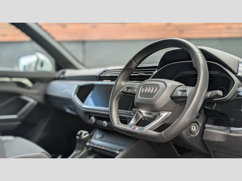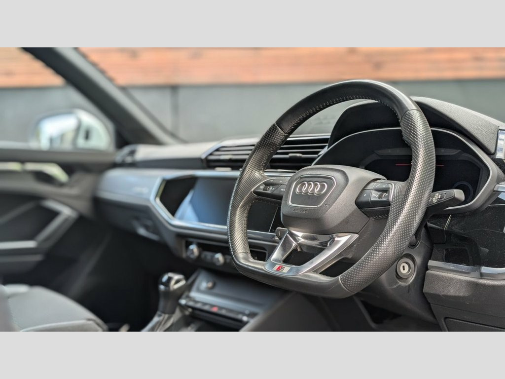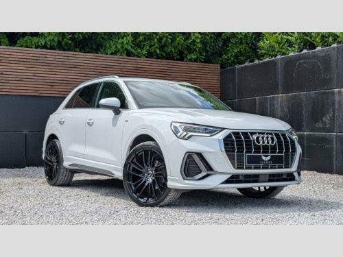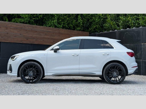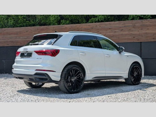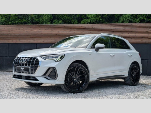 This stunning Q3 S Line TFSI 45 comes with a great spec including - Glacier White Metallic - Anthracite 1/2 leather With Cloth Inserts - Comfort And Sound Pack - B&O Sound System - Flat Bottomed Steering Wheel - Heated Seats - Virtual cockpit - Satellite navigation - LED headlights with daytime running lights - Rear Camera - 21" Alloy wheels - OPTIONAL EXTRA'S / UPGRADES AVAILABLE: - Optional 3 year manufacturer equivalent warranty available to purchase - Optional brake caliper painting to a colour of your choice - Optional gloss black wing mirrors - Optional de-badge - Optional gloss black badges - Optional exterior de-chrome - The fitment of the brand new tyres, alloy wheels and styling parts are subject to a fee of £249. This also warrants the fitted parts for 12 months. - Number of keys to be confirmed at the point of sale. Glacier White, Pulse Cloth-Twin Leather - Sport Seats -, Flat-Bottomed 3-Spoke Leather-Trimmed Mu, Comfort and Sound Package, 1 x USB-C and 1 x USB-A Port with Charge, 3-Spoke Leather Multi-Function Steering , 6 Passive Loud Speakers, 6-Airbag System, Adjustable Rear Seat Bench-Backrest with, Aluminium Look Interior Elements, Aluminium Roof Rails, Aluminium Window Trims, Ambient Lighting Pack, Anti Theft Locking Wheel Bolts, Anti-Theft Alarm, Audi Connect Infotainment Services Plus , Audi Connect Safety and Service - e-call, Audi Drive Select, Audi Pre-Sense Basic, Audi Pre-Sense Front with Pedestrian and, Audi Side Assist, Audi Smartphone Interface includes Wirel, Audi Virtual Cockpit - 10.