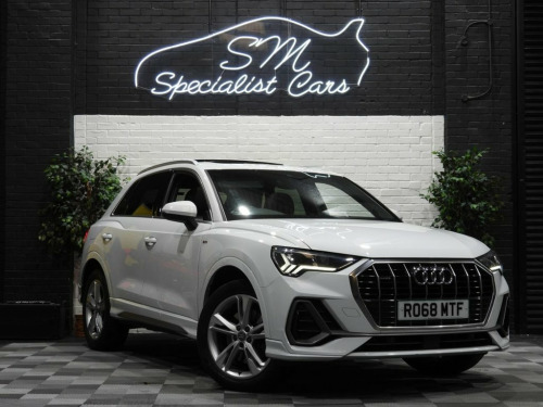 HUGE SPEC Q3 S LINE - ONLY 50K WITH SERVICE HISTORY - PANORAMIC SUNROOF - A/C - HALF LEATHER INTERIOR - DRIVES & PERFORMS SUPERB - FIRST TO SEE WILL BUY! 19in Alloy Wheels - 5-Twin-Spoke Dynamic, 3-Spoke Leather Multi-Function Steering , 6 Passive Loud Speakers, 6-Airbag System, Adjustable Rear Seat Bench-Backrest with, Aluminium Roof Rails, Aluminium Window Trims, Ambient Lighting Pack, Anti Theft Locking Wheel Bolts, Anti-Theft Alarm, Audi Connect Infotainment Services Plus , Audi Connect Safety and Service - e-call, Audi Drive Select, Audi Pre-Sense Front with Pedestrian and, Audi Side Assist, Audi Smartphone Interface, Audi Virtual Cockpit - 10.25in Display, Auto Dimming and Frameless Rear View Mir, B and C-Pillar Trim in High-Gloss Black, Bluetooth Interface, Body Coloured Door Mirrors, Bumpers in Full Body Colour Paint Finish, Cloth Hea