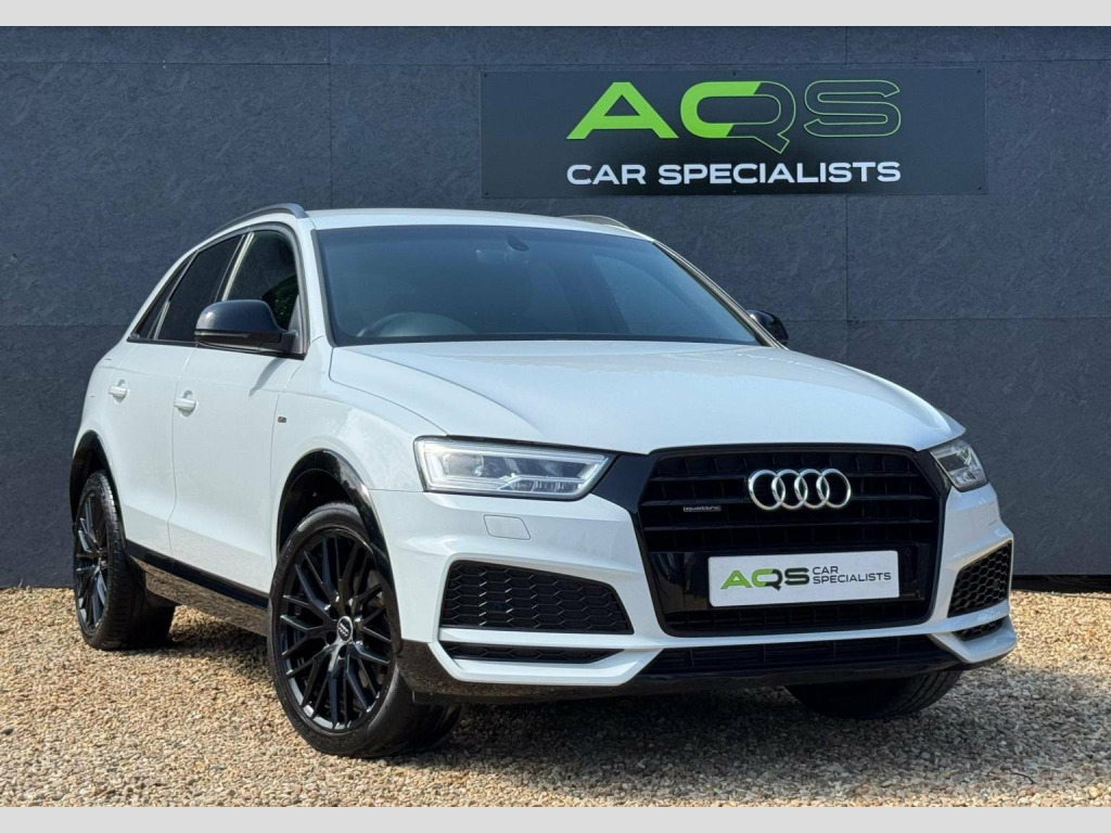 Here at AQS Car Specialist we take pride in being one of the few highly rated dealers for our customer service from Autotrader working closely together so we can go the extra mile to make sure you are getting the best service out there. All vehicles undergo a full visual and Mechanical health inspection, driven and tested. All essential work carried out with no expense spared. We offer an extended nation wide warranty with the option to extend up to 36 months, giving our customers full peace of mind and security when purchasing a car from AQS car specialists. Any inspection welcome, Test drive welcome, Part exchanges welcome. All dealer facilities available on site. Here at AQS Car Specialist we are delighted to offer this exceptionally well maintained example of an Audi Q3 2.0 TFSi Black Edition S Tronic Quattro. Finished in White with a contrasting Black leather and alcantara interior alongside 19 inch gloss black alloys. Recently serviced and accompanied by a full service history, comes with a fresh 12 months MOT. In excellent condition both inside and out, drives without fault and needs for nothing ! These Petrol Q3s are known for their stylish looks, comfort, being low maintenance and very reliable. This particular example benefits from being fitted with some must have extras which include, Cruise Control, Dual Zone Climate Controlled Air Conditioning, Sat Nav, Bluetooth Connectivity, DAB Radio, Reverse Camera, Front and Rear Parking Sensors, Parking System Plus, Auto Headlights, Rain Sensing Wipers, Heated Front Seats, Powered Tailgate, Hill Hold Assist, MultiFunctional Steering Wheel with Paddle Shifters, Electrically Adjustable and Heated PowerFolding Side Mirrors, Full Exterior S Line Styling from Factory and the super useful Split Fold Rear Bench amongst all the usual Audi refinements you expect.