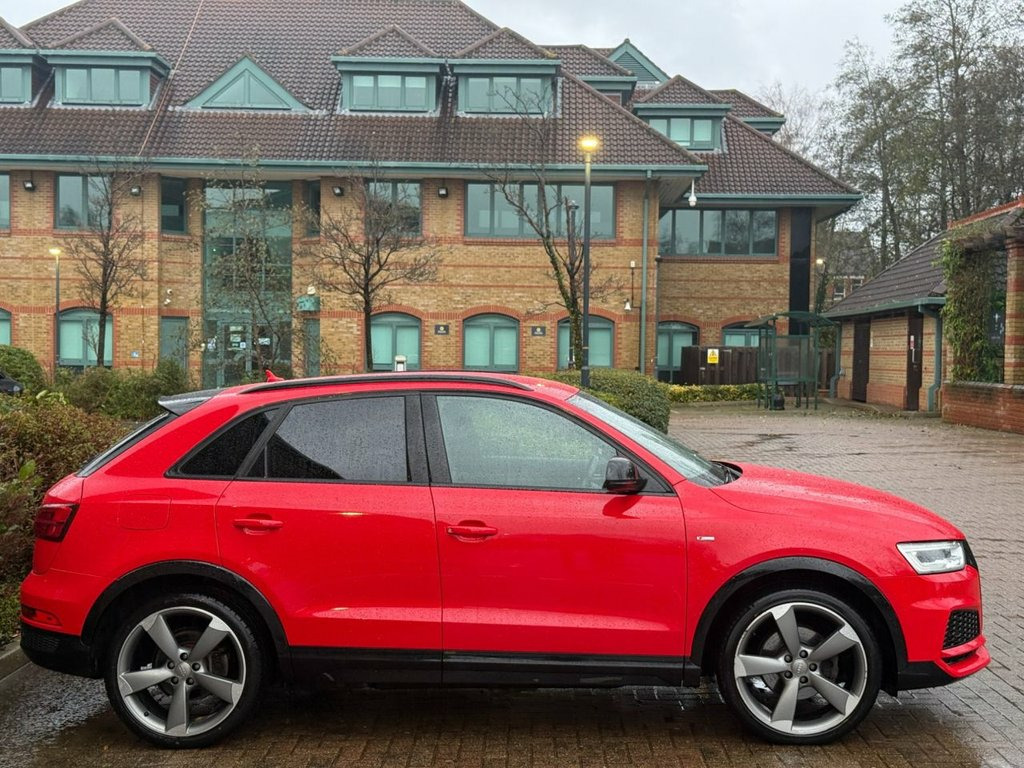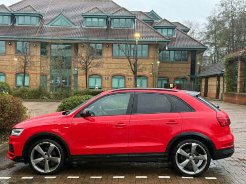 Welcome to Land Cars LTD, a family run business with over 30 years of experience. We are open 7 days a week, available 9am to 10pm by appointment. Land Cars are delighted to present this Audi Q3 2.0 TFSI Black Edition finished in Misano Red metallic paint paired with 20" Diamond Cut alloy wheels. This one former owner from new vehicle comes complete with well documented service history. A MOT passing with no advisories has been carried out along with a Pre Delivery Inspection ensuring it's fit for the road ahead. Incredible specification including Full Heated Leather Seats with S-Line Embossed Logo, Satellite Navigation, Bluetooth Phone Connectivity, Rear Parking Camera, Front & Rear Parking Sensors, Cruise Control, Xenon Headlights, BOSE Speakers, Digital Dashboard Display, Automatic Lights, Automatic Rain Sense Wipers, Audi Drive Select - Efficiency - Comfort - Auto - Dynamic, 3 Spoke Multi Function Leather Steering Wheel with Paddle Shift, Voice Command, Electric Lumbar Support, Stop Start Technology, Dual Zone Climate Control with Air Conditioning, Audi Multi Media Input, Electric Tailgate Lift, Electric Handbrake, Hill Hold Assist, Front Loading CD Player, SD Card Input, Auto Dimming Rear View Mirror, Electric Windows, Electric Heated Folding Mirrors, Glovebox Air Conditioning, Front & Rear Fog Lights, Height Adjustable Steering Wheel, Height Adjustable Seats, Remote Central Locking. Vehicle is HPI Clear & ULEZ Complaint. This vehicle will come wit Comfort and Sound Package, Audi Parking System Advanced with Revers, Audi Hill Hold Assist, Heated Front Seats, 20in Alloy Wheels - 5-Arm Rotor Design w, Door Mirrors - Heated-Electrically Adjus