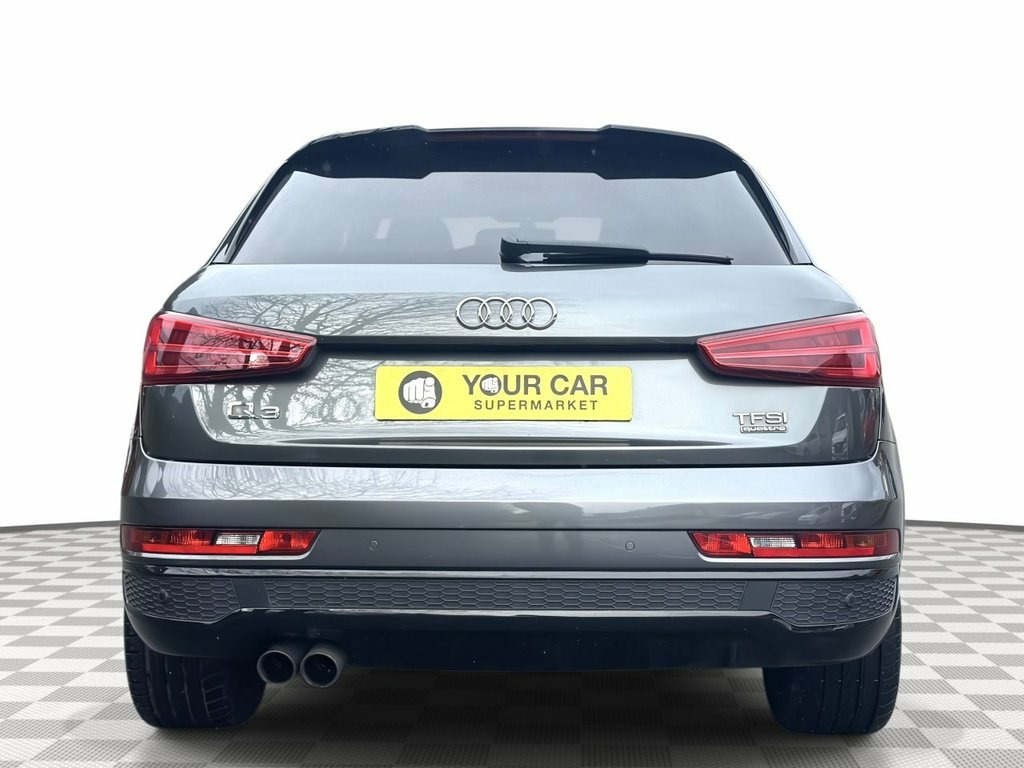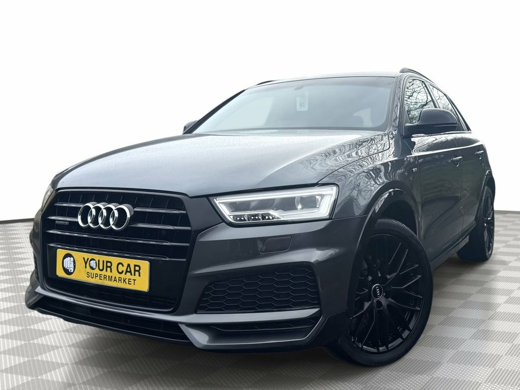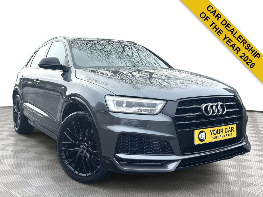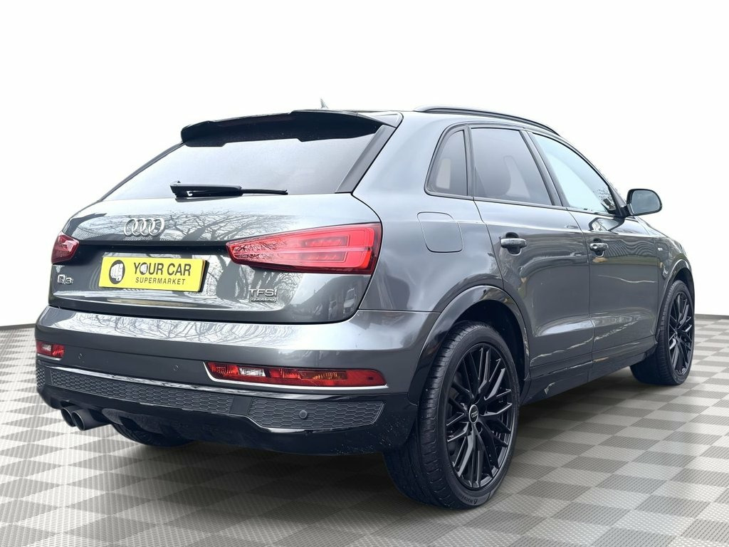 This 2018 Audi Q3 TFSI Black Edition boasts a clear vehicle history, offering you peace of mind. This stylish SUV features a powerful 2.0 litre petrol engine paired with a four wheel drive system, ensuring confident handling in various conditions. As a Euro 6 compliant vehicle, it meets modern emissions standards. The Black Edition trim enhances its already striking appearance, while the interior is equipped with a Bluetooth interface for seamless connectivity, and a light and rain sensor that automatically adjusts headlights. Parking is made easier with the Audi Parking System Plus, featuring sensors at both the front and rear. Experience superior audio with the BOSE Surround Sound System, and enjoy personalised comfort thanks to the Dual Zone Electronic Climate Control. This Q3 TFSI Black Edition truly stands out with its impressive performance, accelerating from 0 to 60 miles per hour in just 7.6 seconds. This swift acceleration demonstrates its dynamic capabilities, setting it apart from other vehicles in its class and providing an engaging driving experience. 19in Alloy Wheels - 10-Y-Spoke Design - , 4-Way Electric Lumbar Support for Front , 6.5in Colour Display Screen, AMI - Audi Music Interface, Anti Theft Locking Wheel Bolts, Anti-Theft Alarm, Audi Drive Select, Audi Parking System Plus, Auto-Dimming Rear-View Mirror, BOSE Surround Sound System, Black Roof Rails, Black Styling Pack with Black Roof Rails, Bluetooth Interface, Chrome-Plated Trims for Exhaust Tailpipe, Cloth Headlining in Black, Concert Radio, Cruise Control, DAB Digital Radio, Door Mirrors - Heated-Electrically Adjus, Driver - Front Passenger - Front Side an, Drivers Information System - DIS - 3.5in, Dual-Zone Electronic Climate Control, ESC - Electronic Stabilisation Control i,