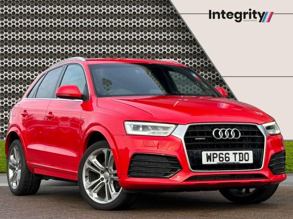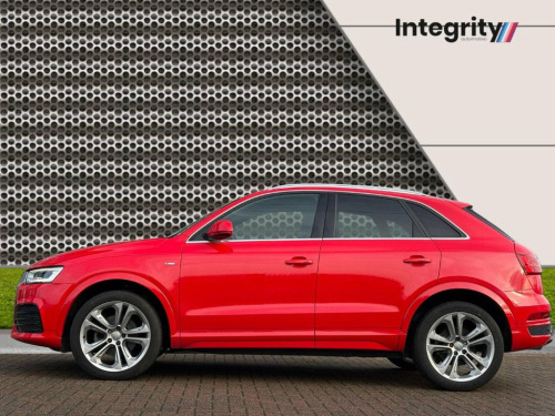 Here at Integrity Automotive, we are pleased to present this Audi Q3 TFSI S line Plus S Tronic Quattro. This Audi Q3 is finished in Misano red with Alcantara/Leather Perforated seats. This vehicle is now available for sale and ready to view at our Ipswich Showroom. This vehicle comes with a good service history and the next service is not due for another 8500 miles! This Audi Q3 is a premium compact SUV that is powered by a 2.0-litre TFSI engine which delivers a potent driving experience with its turbocharged four-cylinder unit. The Quattro all-wheel-drive system ensures optimal traction and stability, making it well-suited for various road conditions. The S Line Plus trim emphasises a sporty and dynamic aesthetic. With sleek exterior features such as S Line badging, distinctive alloy wheels, and a lowered sports suspension, the Q3 exudes a refined yet athletic presence. The S Line Plus specification enhances the overall visual appeal, setting it apart from standard models. Inside the cabin, the S Line Plus trim continues its commitment to luxury and sophistication. Premium materials, fine craftsmanship, and cutting-edge technology define the interior and the MMI infotainment system offers intuitive control over various vehicle functions. This Audi Q3 also comes with £695 of optional extras enhancing the vehicle further from it's original factory spec. The Flat-Bottomed 3 Spoke Multi Function Steering Wheel (£125) gives a sportier look to the interior, comp 19in Alloy Wheels - 5-Double-Spoke Off-R, 3-Spoke Multi-Function Q-Design Steering, 4-Way Electric Lumbar Support for Front , 6.5in Display Screen, 8 Passive Speakers, All Weather LED Headlights, Aluminium Roof Rails, Aluminium Window Trims, AMI - Audi Music Interface, Anti Theft Locking Wheel Bolts, Audi Drive Select, Audi Parking System Advanced with Revers, Audi Parking System Plus, Auto-Dimming Rear-View Mirror, Bluetooth Interface, Body-Coloured Door Mirrors - Electricall, Bright Moulding, Chrome-Plated Trims for Exhaust System, Cloth Headlining and Dashboard in Black, Concert Radio, Cruise Control, DAB Digital Radio, Door Mirrors - Heated-Electrically Adjus, Door Sill Trims with S Line