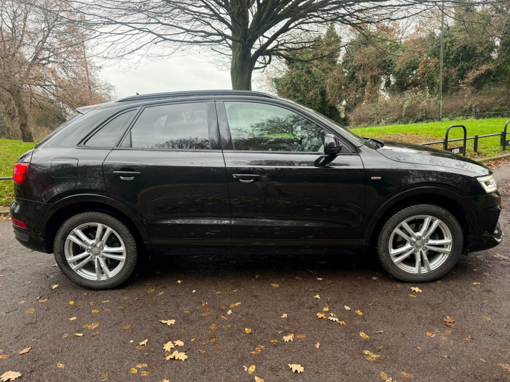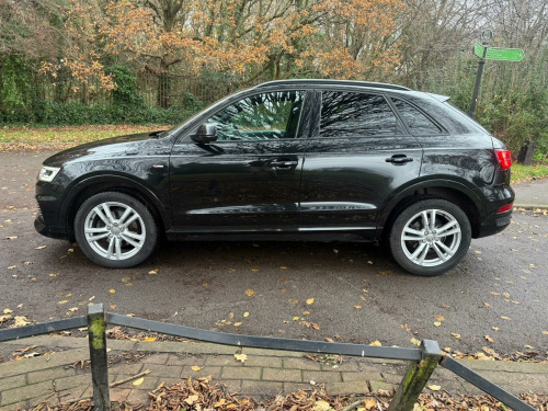 Free 3 Months warranty, 5 Days driveaway insurance available, Used by 1 Oner from new. Water pump and timing belt has been replaced on 26.03.2025, Transmission serviced on 20.06.2023 at 75000 miles. Wide collection of vehicles available on our website at www.blueautospro.co.uk or please give us a call on 07555218777 if you wish to book a viewing appointment or visit our showroom in North West London in Wembley area. 30-32 Blackbird Hill, The Hyde, Middlesex, NW9 8SD.This 2017 Audi Q3 TFSI S line Edition boasts a full service history, with its last service completed on 3rd December 2025 at 106,000 miles, and comes with a clear vehicle history check. This one owner vehicle is a Euro 6 compliant model, powered by a 2.0 litre petrol engine and featuring four wheel drive for confident handling. Notable features include All Weather LED Headlights, a Light and Rain Sensor system that automatically activates the headlights, and Dual Zone Electronic Climate Control to ensure comfort for all occupants. Parking is made easier with the Audi Parking System Plus, offering front and rear sensors, while the Bluetooth interface allows for seamless connectivity.The Q3 TFSI S line Edition offers an engaging driving experience, highlighted by its impressive 0-62mph acceleration time of just 7.6 seconds, demonstrating its performance capabilities. This vehicle is supplied with a 12 month MOT and a 3 month warranty, providing peace of mind for its new owner. The combination of its comprehensive service history, single owner status, and desirable S line Edition trim signifies a well maintained and thoughtfully equipped vehicle that stands out from others in its class., in alloy wheels - 5-twin-spoke design partly polished, 4-way electric lumbar support for front seats, 6.5in colour display screen, 8 passive speakers, ami - audi music interface, all weather led headlights, aluminium roof rails, aluminium window trims, anti theft locking wheel bolts, audi drive select, audi parking system plus, auto-dimming rear-view mirror, bluetooth interface, body coloured door mirrors, chrome-plated trims for exhaust tailpipes, cloth headlining and dashboard in black, concert radio, cruise control, dab digital radio, door mirrors - heated-electrically adjustable-folding, door sill trims with s line logo, driver - front passenger - front side and head airbag system, drivers information system - dis, dual-zone electronic climate control, dynamic suspension, efficiency program in the drivers information system - dis, electric windows - front and rear, electromechanical parking brake, electromechanical power steering - speed-sensitive provides a precise steering feel at high speeds and excellent assistance when parking., electronic stability programme - esp includes abs-ebd-asr-edl, extendable luggage compartment cover, first aid kit, floor mats - front and rear in velour, front centre armrest, front lip and rear diffuser in full paint finish, front and rear fog lights, full body-colour paint finish, gear knob - perforated leather, heated windscreen washer jets, isofix child seat mounting, inlays - matt brushed aluminium, led tail lights including led dynamic rear indicators, light and rain sensor, power operated tailgate, rear diffuser insert in platinum grey, remote central locking, reversible luggage compartment floor, s line badges on front wings, s line body styling, s line radiator grille with horizontal struts in high-gloss black, satellite navigation system - sd card based, seat belt monitoring, secondary collision brake assist, space saver spare wheel, split-folding rear seats, steering wheel - 3-spoke leather-multifunction-shift paddles-q-design, steering wheel - height and reach adjustable, thatcham category 1 alarm and immobiliser, tool kit and car jack, tow bar bracket preparation, tyre pressure loss indicator, voice control system, warning triangle, washer fluid level indicator, windscreen with sunband