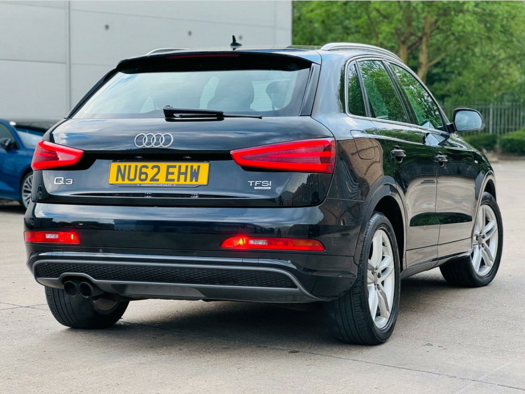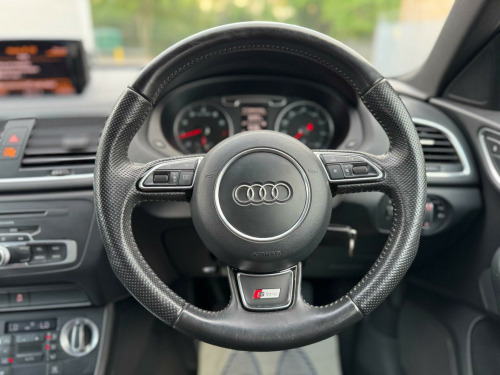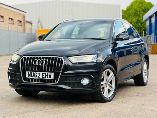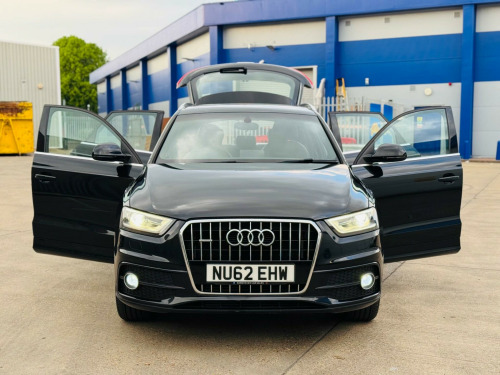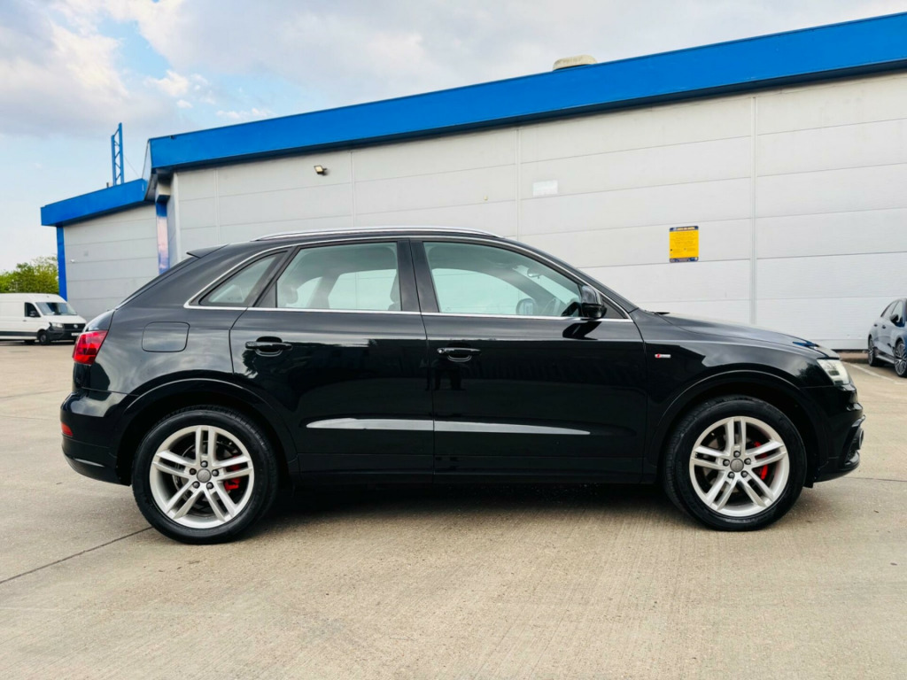 We Are Selling Audi Q3 S LineTfsi 170 Quattro Start/Stop Black Colour SUV Petrol 1984 cc Car Comes With Full Specs On ** Air Condition ** Electric Windows ** Adjustable Seats & Steering ** Parking Sensors **Navigation** Cruise Controller **MAY EXPIRES MOT** Good Service History ** 2 Keys **Beautiful Black Leather Interior ** ULEZ FREE ** HPI Clear ** AUX ** Central Locking ** Alloys ** 3 Owners Car Only From New ** Very Well Maintained Neat & Clean Car Inside Out Drives Perfectly Fine ** Warrenty Available ** Nationwide Delivery Available ** Part Exchange Welcome . v power socket, 18in alloy wheels - 5-double-spoke design, 6.5in display screen, abs - anti-lock braking system, ami - audi music interface, asr - anti slip regulation, acoustic parking system - rear, airbags - driver, airbags - front passenger, airbags - front side system, airbags - front side and head system, airbags - head system, alarm - thatcham category 1, aluminium roof rails, automatic wipers with rain sensor, cloth headlining in black, concert radio - mp3-cd player, door mirrors - electrically adjustable and heated, drivers information system - dis, dual-zone electronic climate control, dynamic suspension, ebd - electronic brakeforce distribution, edl - electronic differential lock, esp - electronic stability programme, electric windows - front and rear, electrically adjustable 4-way lumbar support, first aid kit, front centre armrest - adjustable, front fog lights, front passenger airbag deactivation switch, front sports seats, full paint finish, headlights - automatic adjustment, headlights - bi-xenon plus, headlights washers, isofix child seat mounting for front passenger with airbag deactivation, inlays - matt brushed aluminium, light and rain sensor package, mobile telephone preparation - bluetooth interface, power steering, remote central locking, remote central locking with 2 fold away keys, seats - drivers manual height adjustment, split-folding rear seats, steering wheel - 3-spoke s line multi-function leather, steering wheel - height and reach adjustable, steering wheel - multi-function, tyre mobility system