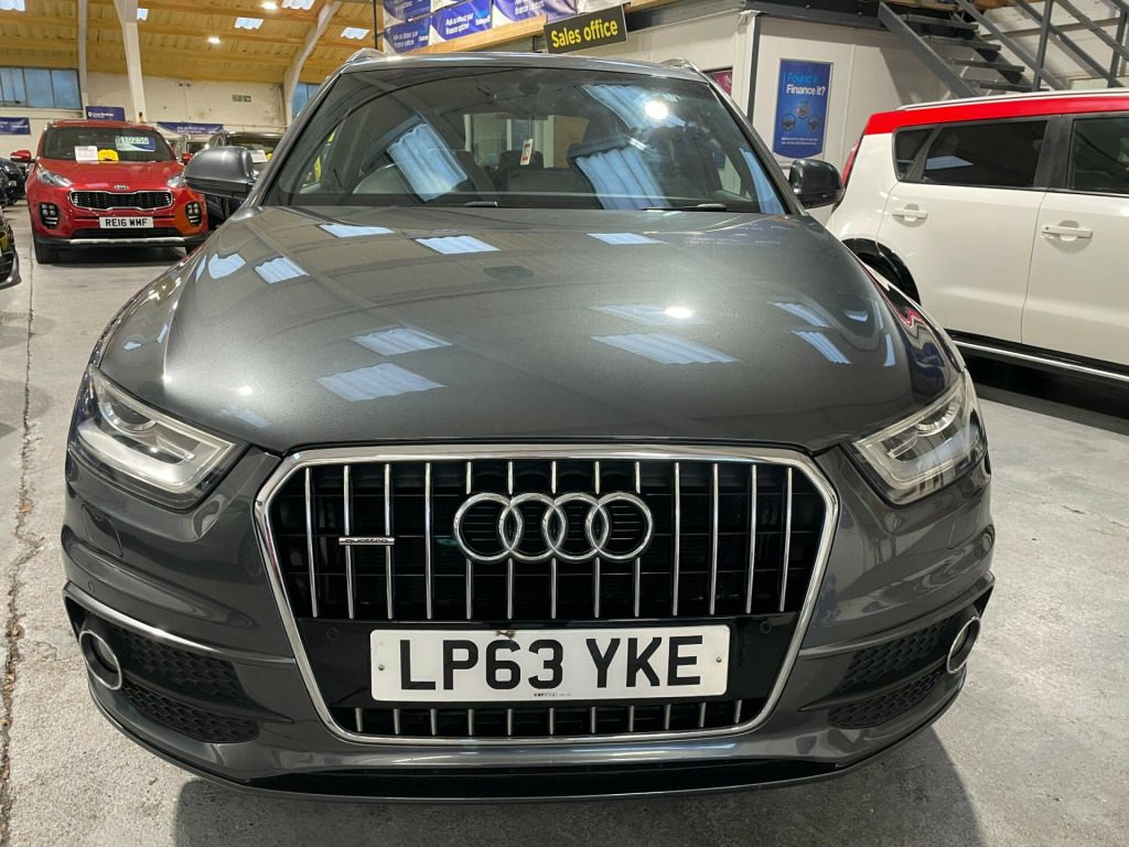This 2014 Audi Q3 2.0 TFSI S line SUV with 58000 miles is a reliable and spacious SUV that runs on Petrol and is equipped with a manual transmission and quattro Euro 5 (s/s) engine producing 170 ps. and ULEZ compliant, this 5-seater, 5-door vehicle is perfect for city and long distance driving. It comes with features such as 12V Power Socket - Rear Centre Console, 6.5in Display Screen, AMI - Audi Music Interface, Concert Radio - MP3/CD Player, and DAB Digital Radio, providing comfort and entertainment on the go. Don't miss out on this versatile and stylish SUV that is ready for any adventure. It's an absolute pleasure to be selling this stunning example of this extremely sort after SUV. Looking absolutely stunning in this shade of Gun Metal Grey, it really is a in lovely condition both inside and out and is a credit to it's former owners. It comes with lots of features and has a Full Service History to verify the mileage, 2 keys and will be sold with a new MOT upon purchase.Actons Motor Company NEVER buys cars from auction halls, we are a family run business that has operated in Brighton and Shoreham for over 35 years. Due to expansion we have moved to a new larger Showroom in the village of Rustington in between Worthing and Littlehampton . We have a large indoor showroom that displays up to 40 cars and customer parking on our forecourt right outside. Appointments are not necessary but advisable due to the fast turnover of stock we experience. Please see our customers Google reviews based on the after sales service and sales experience we offer. v power socket - rear centre console, 6.5in display screen, ami - audi music interface, concert radio - mp3/cd player, dab digital radio, mobile telephone preparation - bluetooth interface, preparation for sd card-based navigation system, sdhc card reader x2, speakers x8, towbar preparation, 18in alloy wheels - 5-double-spoke design, anti theft locking wheel bolts, brake lights - led, bumpers - front and rear - s line design, diffuser insert and centre front spoiler lip painted in platinum grey, door mirrors - body coloured with integrated led indicators, door mirrors - electrically adjustable and heated, electric windows - front and rear, exhaust tailpipe - chrome plated, fog lights - chrome surrounds, full paint finish, heated windscreen washer jets, led rear indicators, radiator grille - with vertical chrome bars, roof rails - aluminium, s line badges on front wings, s line body styling, space saver spare wheel, sunband for windscreen, window surrounds - aluminium, abs - anti-lock braking system, asr - anti slip regulation, airbags - driver, airbags - front passenger, airbags - front side, airbags - head system, alarm - thatcham category 1, ebd - electronic brakeforce distribution, esp - electronic stability programme, electromechanical parking brake, first aid kit, front passenger airbag deactivation switch, isofix child seat mounting for front passenger, isofix child seat preparation for rear seats with top tether, remote central locking with 2 fold away keys, seat belt reminder, thatcham category 1 immobiliser, warning triangle, automatic wipers with rain sensor, car jack, cloth headlining in black, door sill trims with s line logo, dual-zone electronic climate control, electrically adjustable 4-way lumbar support, folding storage compartment in front centre armrest, front centre armrest - adjustable, front sports seats, front and rear floor mats, gear knob - perforated leather, glovebox - ventilated, inlays - matt brushed aluminium, rear air vents in rear centre console, reversible luggage compartment floor, seats - drivers manual height adjustment, seats - front sports - s line embossed, seats - sports, smoking package, split-folding rear seats, stainless steel loading sill protector, steering wheel - 3-spoke leather trimmed sports, steering wheel - height and reach adjustable, steering wheel - multi-function, tp memo - automatically saves traffic news, tool kit, drivers information system - dis, dynamic suspension, edl - electronic differential lock, efficiency program in the drivers information system - dis, electromechanical power steering, rear parking sensors, tyre pressure monitoring system, voice control - telephone, washer fluid level indicator, front fog lights, headlights - automatic activation, headlights - automatic adjustment, headlights - automatic dynamic range control, headlights - bi-xenon plus, headlights - coming-leaving home function, headlights washers, led daytime running lights, led rear lights