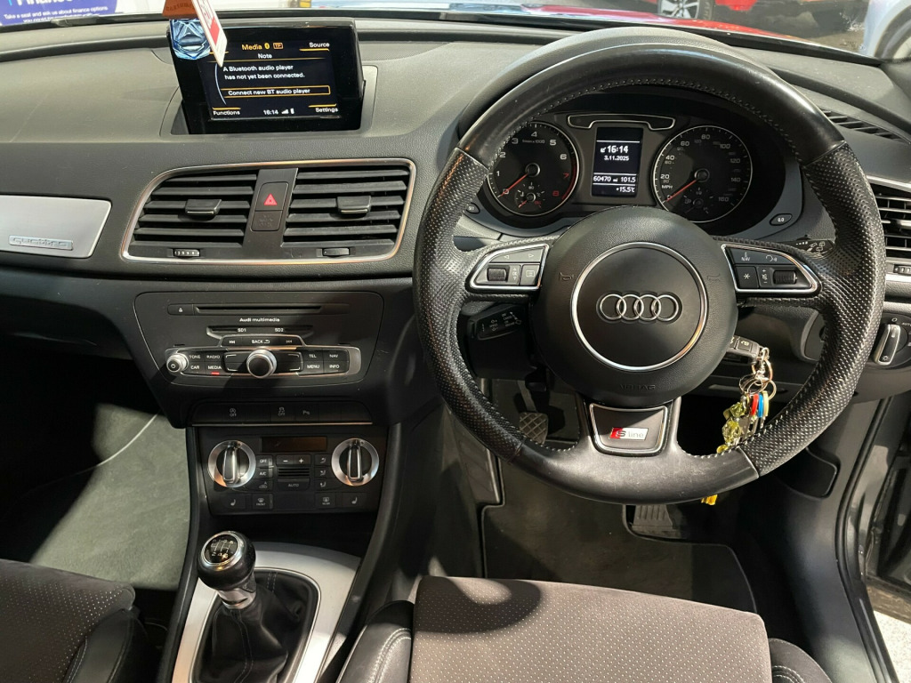 This 2014 Audi Q3 2.0 TFSI S line SUV 5dr Petrol Manual quattro Euro 5 (s/s) (170 ps) is currently available for £10,500 in Brighton West Sussex with Petrol engine and Manual gearbox. For more information or to arrange a viewing, click here to send us an email using form below.