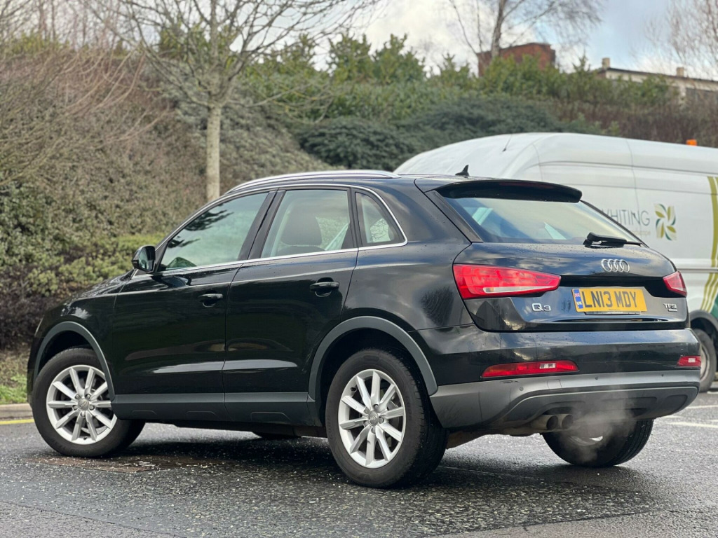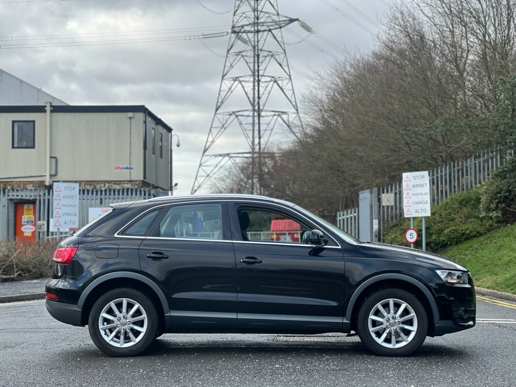 2013 Audi Q3 Quattro 2.0 TFSI finished in black. 69,000 warranted miles on the clock. Comes with a 12 month warranty! MOT til 19th December 2026. 1 former keeper from new. Service history available; 5 services. Last serviced on 08/07/2025 at 68,310 miles. Car drives well with no mechanical faults. Full V5 available. Comes with a top spec including; alloy wheels, leather steering wheel, multi-functional steering wheel, Radio/CD, electric windows, central locking, AC/Climate control, Bluetooth, automatic headlights, TPMS, cup holders and many more. Nationwide Delivery Available. P/X Welcome. HPI Clear. ULEZ compliant. Any questions don't hesitate to contact us on 07443456706 v power socket, 17in alloy wheels - 10-spoke design, 6.5in display screen, abs - anti-lock braking system, ami - audi music interface, asr - anti slip regulation, acoustic parking system - rear, airbags - driver, airbags - front passenger, airbags - front side system, airbags - front side and head system, airbags - head system, alarm - thatcham category 1, aluminium roof rails, automatic wipers with rain sensor, concert radio - mp3-cd player, door mirrors - electrically adjustable and heated, drivers information system - dis, dual-zone electronic climate control, dynamic suspension, ebd - electronic brakeforce distribution, edl - electronic differential lock, esp - electronic stability programme, electric windows - front and rear, first aid kit, front centre armrest - adjustable, front fog lights, front passenger airbag deactivation switch, headlights - automatic adjustment, isofix child seat mounting for front passenger with airbag deactivation, inlays - micrometallic platinum, light and rain sensor package, mobile telephone preparation - bluetooth interface, power steering, remote central locking, remote central locking with 2 fold away keys, seats - drivers manual height adjustment, split-folding rear seats, steering wheel - 4-spoke leather trimmed/multifunction, steering wheel - height and reach adjustable, steering wheel - multi-function, tyre mobility system