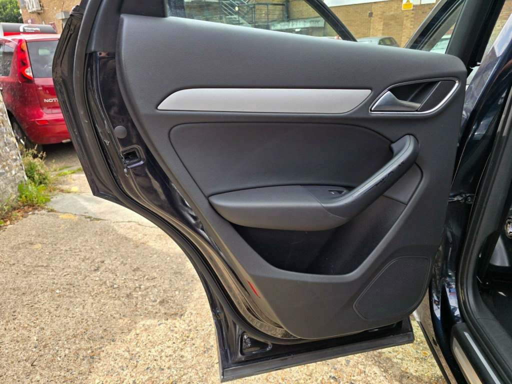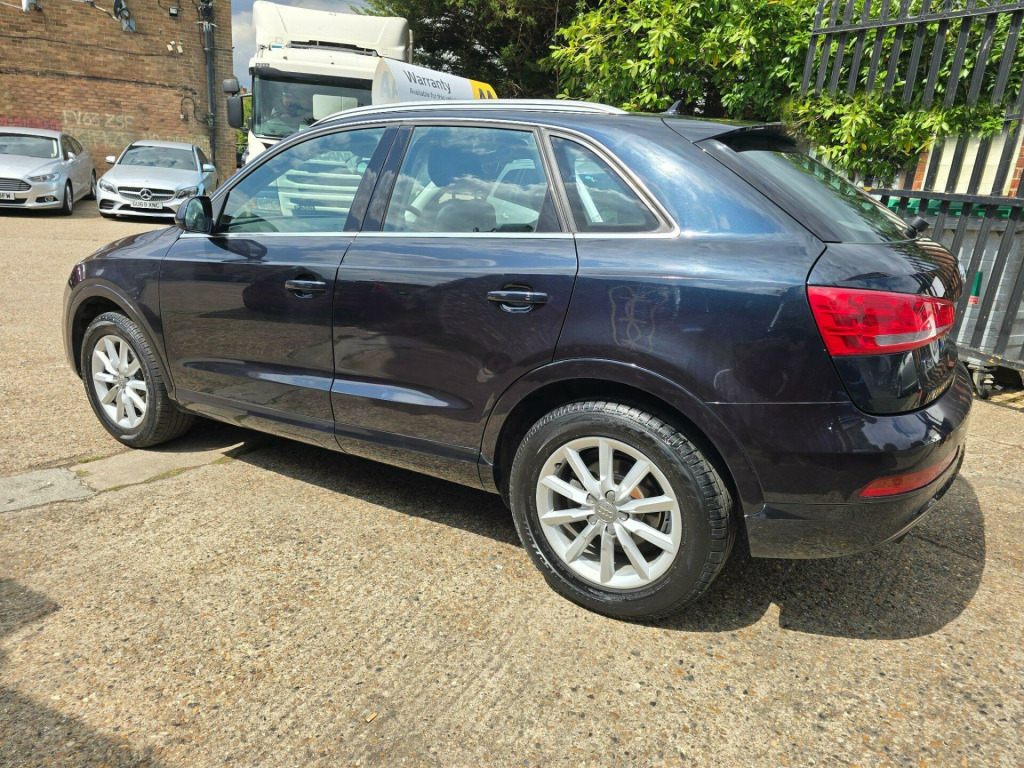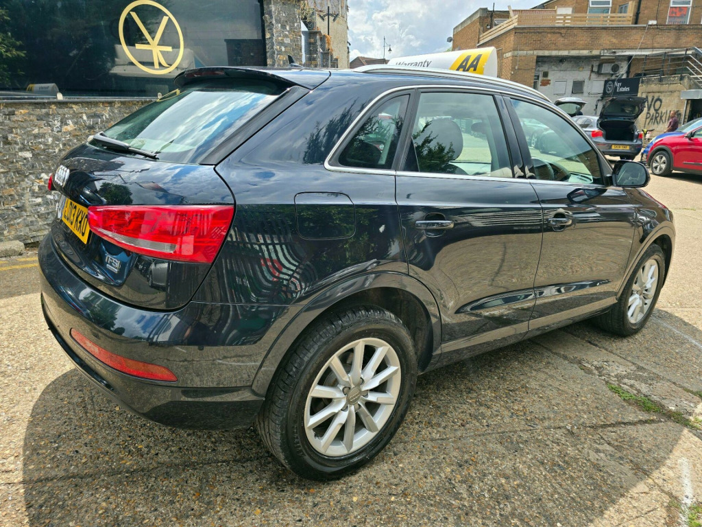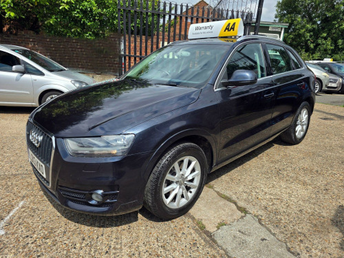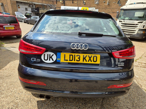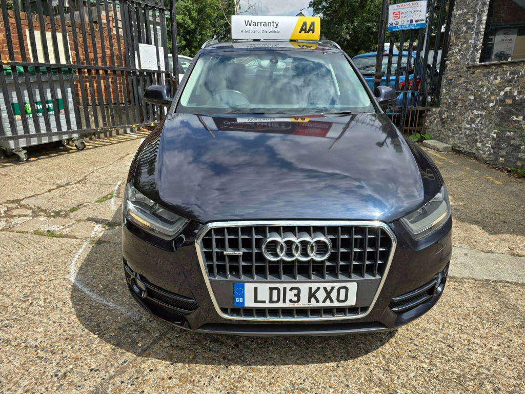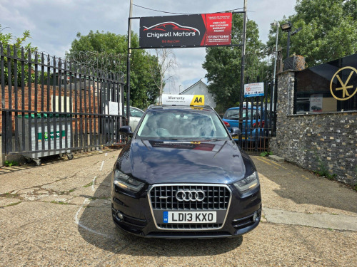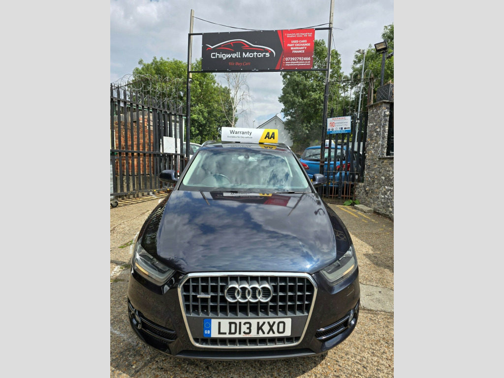 Audi Q3 2.0 TFSI SE S Tronic quattro Euro 5 (s/s) 5dr LD13KXO 2013 (13) 79,819 miles? Petrol ?? Automatic (S Tronic) Blue 1 Owner ? ULEZ CompliantA refined, capable and stylish compact SUV - this Audi Q3 2.0 TFSI SE delivers smooth automatic performance, superb quattro all-wheel drive traction, and the peace of mind of ULEZ compliance. A perfect balance of comfort and confidence for any journey.Why Buy from Chigwell Motors Ltd?We're a trusted, family-run dealership in East London with over 15 years of experience. Every vehicle includes:?? Minimum 6-Month MOT?? Fresh Service & Pre-Sale Inspection?? Warranty Included?? Same-Day Drive Away?? Click & Collect or Nationwide Delivery?? Fixed Price - No Admin Fees?? Finance from 7.9% APR 688-690 Chigwell Road, Woodford Green, Essex IG8 8AH 07392 792466 www.chigwellmotors.co.uk chigwellmotorshotmail.com v power socket, 17in alloy wheels - 10-spoke design, 6.5in display screen, abs - anti-lock braking system, ami - audi music interface, asr - anti slip regulation, acoustic parking system - rear, airbags - driver, airbags - front passenger, airbags - front side, airbags - head system, alarm - thatcham category 1, aluminium roof rails, anthracite metallic finish on bumpers-wheel arch trims-lower door trims, anti theft locking wheel bolts, automatic wipers with rain sensor, car jack, cloth headlining, concert radio - mp3/cd player, daytime running lights, door mirrors - body coloured with integrated led indicators, door mirrors - electrically adjustable and heated, door sill trims with aluminium inlay, drivers information system - dis, dual-zone electronic climate control, dynamic suspension, ebd - electronic brakeforce distribution, edl - electronic differential lock, esp - electronic stability programme, efficiency program in the drivers information system - dis, electric windows - front and rear, electromechanical parking brake, electromechanical power steering, first aid kit, folding storage compartment in front centre armrest, front centre armrest - adjustable, front fog lights, front passenger airbag deactivation switch, front and rear floor mats, glovebox - ventilated, halogen headlights, headlights - automatic adjustment, headlights - coming-leaving home function, headlights - range adjustment, heated windscreen washer jets, isofix child seat mounting for front passenger and rear outer seats, inlays - monometallic platinum, mobile telephone preparation - bluetooth interface, preparation for sd card-based navigation system, rear air vents in rear centre console, remote central locking with 2 fold away keys, sdhc card reader x2, seat belt reminder, seats - drivers manual height adjustment, smoking package, speakers x8, split-folding rear seats, stainless steel loading sill protector, steering wheel - 4-spoke leather trimmed/multifunction/shift paddles, steering wheel - height and reach adjustable, steering wheel - multi-function, sunband for windscreen, tp memo - automatically saves traffic news, tool kit, towbar preparation, tyre mobility system, voice control - telephone, warning triangle, washer fluid level indicator, window surrounds - aluminium