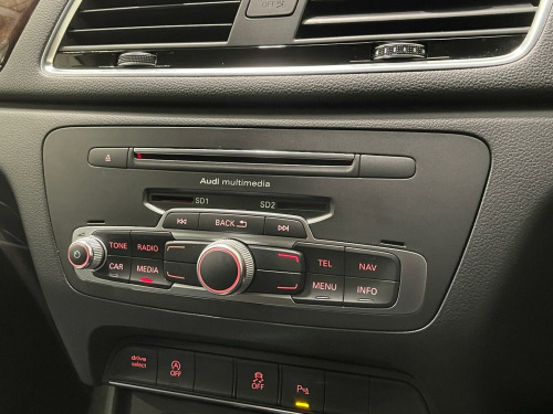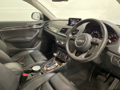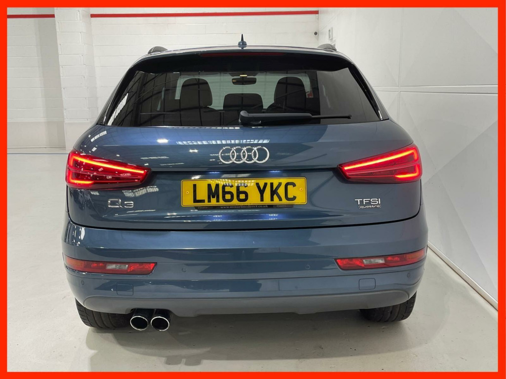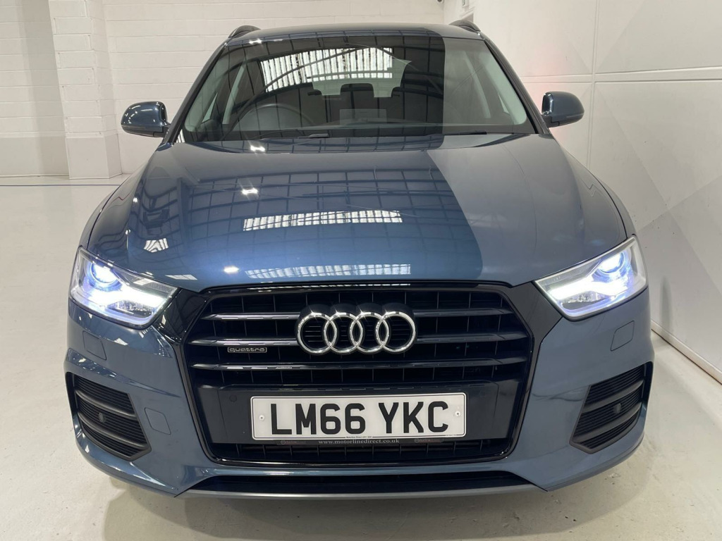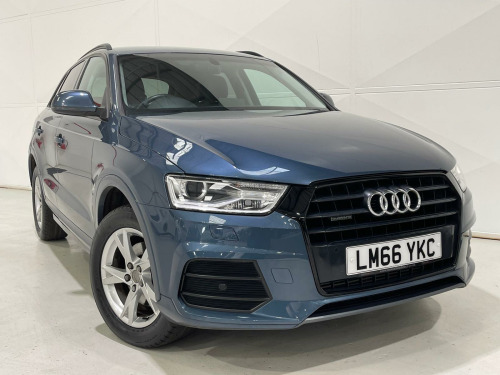 FINANCE & PART EXCHANGE AVAILABLE* - Only 1 registered keeper & 31,593 miles from new, AUDI MAIN DEALER SERVICE HISTORY, 2 KEYS - this FANTASTIC LOW MILEAGE AUDI Q3 2.0 TFSI SE QUATTRO 4WD AUTOMATIC is finished in stunning sports blue metallic & is complimented with contrasting full black leather sports trim and extends itself to the following additional features - on board satellite navigation system, dual zone climate control / automatic air conditioning, trip computer, cruise control, leather trimmed multi function steering wheel with paddle shift, front & rear park distance control, driver & passenger electric heated front seats, Bluetooth telephone prep, DAB digital radio, media input, voice command, keyless start, start / stop, roof rails, electric tailgate, privacy glass, speed warning, rest recommend, Audi drive select, lumbar support, electric folding & heated exterior mirrors, Bi-Xenon plus auto headlights, rain sensor, power assisted steering, abs, airbags, electric mirrors, electric windows, remote central locking, head restraints, Audi 17'' sports alloy wheels, Audi anti theft system. ***FINANCE AVAILABLE - subject to status. T&C's apply.***PART EXCHANGE AVAILABLE***ALL VEHICLES ARE HPI & NATIONAL MILEAGE REGISTER CHECKED***THE AA WARRANTY IS SUBJECT TO TERMS & CONDITIONS AND DOES NOT COVER VEHICLES THAT ARE BEING USED FOR TAXI, PRIVATE HIRE, CHAUFFEURING PURPOSES OR FOR REWARD.***Please note, that the specifications/components/features etc. are generic to that vehicle of the type advertised but may not be included in the specific vehicle that is for sale. It is for the intended purchaser to satisfy themselves of the presence or absence of any specifications/components/features before sale. Please ask if you are uncertain of anything and we will see if we can assist.. 12V Power Socket - Rear Centre Console, 17in Alloy Wheels - 7J 5-Spoke Y Design, 6.5in Display Screen, ABS - Anti-Lock Braking System, AMI - Audi Music Interface, ASR - Anti Slip Regulation, Airbags - Driver, Airbags - Front Passenger, Airbags - Front Side, Airbags - Head System, Alarm - Thatcham Category 1, Anti Theft Locking Wheel Bolts, Audi Drive Select, Automatic Wipers with Rain Sensor, Brake Lights - LED, Car Jack, Cloth Headlining in Lunar Silver, Concert Radio - MP3/CD Player, DAB Digital Radio, Door Mirrors - Body Coloured with Integrated LED Indicators, Door Mirrors - Electrically Adjustable and Heated, Door Sill Trims with Aluminium Inlay, Drivers Information System - DIS, Dual-Zone Electronic Climate Control, Dynamic Suspension, EBD - Electronic Brakeforce Distribution, EDL - Electronic Differential Lock, ESP - Electronic Stability Programme, Electric Windows - Front and Rear, Electrically Adjustable 4-Way Lumbar Support, Electromechanical Parking Brake, Electromechanical Power Steering, Exhaust Tailpipe - Chrome Plated, First Aid Kit, Floor Mats - Front and Rear in Velour, Folding Storage Compartment in Front Centre Armrest, Front Centre Armrest - Adjustable, Front Fog Lights, Front Passenger Airbag Deactivation Switch, Front Sports Seats, Full Body-Colour Finish on Bumpers-Wheel Arch Trims-Lower Door Trims, Full Paint Finish, Headlights - Automatic Activation, Headlights - Automatic Adjustment, Headlights - Automatic Dynamic Range Control, Headlights - Bi-Xenon Plus, Headlights - Coming-Leaving Home Function, Headlights - Electric Range Control, Heated Windscreen Washer Jets, ISOFIX Child Seat Mounting for Front Passenger, ISOFIX Child Seat Preparation for Rear Seats with Top Tether, Inlays - Micrometallic Silver, LED Daytime Running Lights, LED Rear Indicators, LED Rear Lights, Luggage Compartment - Cover Extendable, Manual Front Seat Adjustment, Mobile Telephone Preparation - Bluetooth Interface, Preparation for SD Card-Based Navigation System, Rear Parking Sensors, Remote Central Locking with 2 Fold Away Keys, Reversible Luggage Compartment Floor, Roof Rails - Aluminium, SDHC Card Reader x2, Seat Belt Reminder, Secondary Collision Brake Assist, Smoking Package, Space Saver Spare Wheel, Speakers x8, Split-Folding Rear Seats, Stainless Steel Loading Sill Protector, Steering Wheel - 3-Spoke Leather-MultiFunction-Shift Paddles-Q-Design, Steering Wheel - Gear-Shift Paddles, Steering Wheel - Height and Reach Adjustable, Steering Wheel - Multi-function, Sunband for Windscreen, TP Memo - Automatically Saves Traffic News, Tool Kit, Towbar Preparation, Tyre Pressure Monitoring System, Voice Control - Telephone, Warning Triangle, Washer Fluid Level Indicator, Window Surrounds - Aluminium, 3-Spoke Multi-Function Q-Design Steering Wheel, 4-Way Electric Lumbar Support for Front Seats, 8 Passive Speakers, Aluminium Roof Rails, Aluminium Window Trims, Bluetooth Interface, Body-Coloured Door Mirrors - Electrically Adjustable and Heated with Integrated LED Indicator Signals, Bright Moulding, Cloth Headlining, Concert Radio, Driver - Front Passenger - Front Side and Head Airbag System, Efficiency Program in the Drivers Information System - DIS, Electromechanical Power Steering - Speed-Sensitive Provides a Precise Steering Feel at High Speeds and Excellent Assistance when Parking., Front and Rear Fog Lights, Front Centre Armrest, Inlays - Micrometallic Flex Silver, ISOFIX Child Seat Mounting, Light and Rain Sensor, Remote Central Locking, Seat Belt Monitoring, Seats - Split Folding Rear Backrest, Thatcham Category 1 Alarm and Immobiliser, Tool Kit and Car Jack, Tyre Pressure Loss Indicator, Voice Control System, Windscreen with Sunband, Xenon Plus Headlights with LED Daytime Running Lights, Cruise Control, Satellite Navigation System - SD Card Based, Fine Nappa Leather - Standard Seats - Black, Privacy Glass, Electrically Adjustable Front Seats, Heated Front Seats, Power Operated Tailgate, Seats - Front Electric Adjustment, Door.