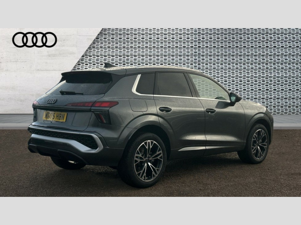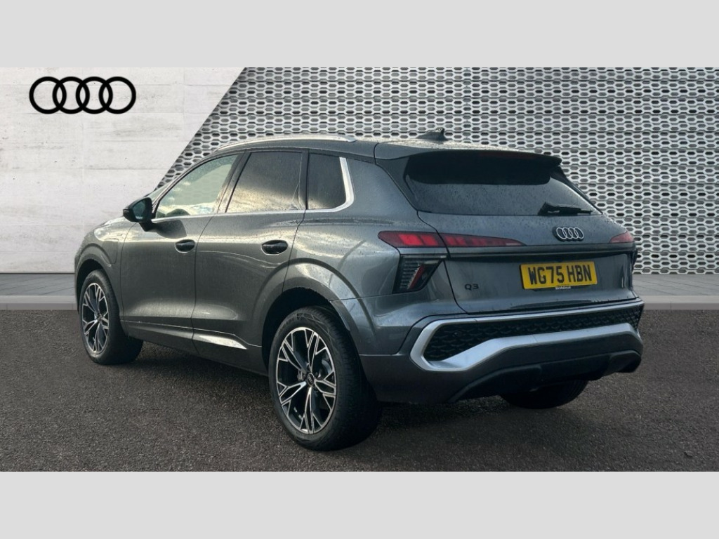 Audi Q3 1.5 e-Hybrid S Line 5dr S Tronic Adaptive cruise control, Audi connect emergency call and service, Audi connect remote and controls, Audi drive select (Balanced/Individual, effeciency, comfort and dynamic), Audi virtual cockpit plus - 11.9" display, Bluetooth interface, Camera based traffic sign recognition, Driver attention and fatigue detection with driver monitoring camera, Front cross traffic assist, Lane departure warning with emergency assist, Panoramic curved display with 12.8" MMI navigation plus and MMI touch, Park assist plus with parking system and 360 display, Phonebox light with wireless charging, Reversing camera, Smartphone interface includes wireless Apple carplay/Android Auto, Start/stop system, Swerve assist and turn assist, Traffic sign based speed limiter, Voice control system with natural language interaction, 3 pin 10 amp domestic charging cable, Charging socket CCS type 2, Comfort suspension, Compact charging system, Industrial connector CEE 32A, 230V, Mode 3 charging cable for public charging, 22 KW (AC), Petrol Particulate Filter, 2 USB-C ports with charge and data functions, Audi sound system with 10 loudspeakers, subwoofer,8 channel amplifier with 260 watts, DAB digital radio module, Acoustic glass for front door windows, Acoustic windscreen, Aluminium roof rails, Aluminium window trim, Audi Q3 lettering on the B-pillars, Auto dimming door mirrors, Auto dimming rear view mirror, Body colour door mirrors, Contrasting finish in volcano grey, Electrically folding, adjustable and heated door mirrors with integrated LED side indicators and kerb view function for passenger side, Full paint finish, Illuminated door sills with aluminium inserts at the front with S logo, LED daytime running lights, LED headlights plus with LED rear lights pro with continous light strip,illuminated Audi rings, rear, LED third brake light, Loading sill protector in stainless steel, Main beam assist, Privacy glass - dark tinted rear window, rear door and side windows, Projection light in the exterior mirrors - Projects a graphic element onto the ground, Q3 badging on the rear, Rain and light sensors, Rear side wing doors, Rear window, rear door windows and rear side windows in clear glass, Rear wiper, Sports bumpers, 3 seat bench in 2nd row, 3 spoke flat top and bottomed leather multi function sport steering wheel with gear shift paddles and "S" badging, 3-zone deluxe automatic air conditioning, 4 way lumbar support for the front seats - electric with horizontal and vertical adjustment in four directions, Black cloth headlining, Convenience auxiliary air conditioning, Front and rear floor mats, Front and rear headrests, Front centre armrest, Heated front seats, Height and reach adjustable steering wheel, Interior storage compartment, Leather/artificial leather upholstery combination with S emblem + front sports seats, Luggage compartment lid, electrically opening and closing, Manual front seats with height adjustment, Rear seat bench plus with split folded 40:20:40, Single front passenger seat, Stainless steel pedals, Steering wheel operating unit, gloss black, Storage compartment in front centre console, Ambient lighting package pro - Q3, S line exterior styling pack - Q3, 3x3 point rear seatbelts, Acoustic vehicle alerting system, Convenience key with safelock, Driver and front passenger airbag with passenger airbag deactivation, Electromechanical parking brake, Electronic stabilisation control including ABS, ASR and EDL, First aid kit with warning triangle and high visibility vests, Front emergency brake assist, Hill hold assist, i - Size child seat mounting on the front passenger side and i - Size and top tether on the outer rear seats, Power operated child locks, Seatbelt monitoring, Three point automatic belts with belt tensioner and height adjustment, Tyre pressure loss indicator, Anti theft wheel bolts, Remote central locking, Thatcham approved category 1 anti theft alarm, Dark aluminium divergence inlay, Interior elements in dinamica microfibre, Interior trims in aluminium look, Tool kit and Jack, Tyre repair kit