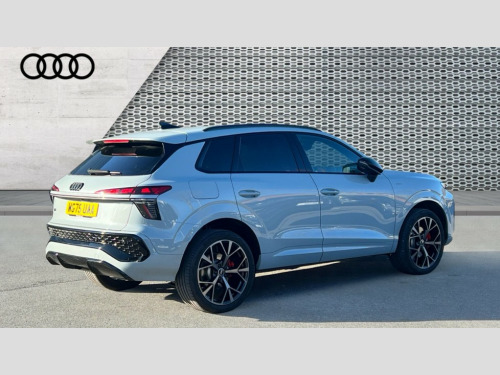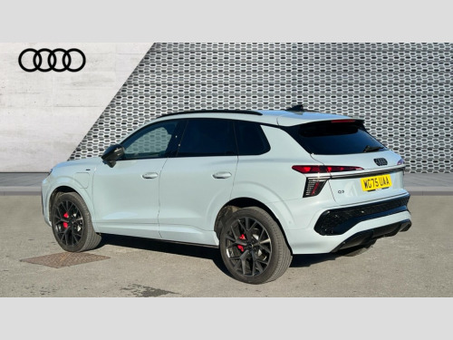 Audi Q3 1.5 e-Hybrid Launch Edition 5dr S Tronic Adaptive cruise assist plus, Audi connect emergency call and service, Audi connect remote and controls, Audi drive select for suspension with damper control, Audi side assist with exit warning and rear cross traffic assist, Audi virtual cockpit plus - 11.9" display, Bluetooth interface, Camera based traffic sign recognition, Driver attention and fatigue detection with driver monitoring camera, Emergency assist, Front cross traffic assist, Garage door opener, Head up Display, In-car-office assist, Panoramic curved display with 12.8" MMI navigation plus and MMI touch, Phonebox light with wireless charging, Progressive steering, Projection of a black ice warning, Smartphone interface includes wireless Apple carplay/Android Auto, Start/stop system, Surround view cameras, Swerve assist and turn assist, Traffic sign based speed limiter, Trained parking, Voice control system with natural language interaction, 3 pin 10 amp domestic charging cable, Charging socket CCS type 2, Compact charging system, Industrial connector CEE 32A, 230V, Mode 3 charging cable for public charging, 22 KW (AC), Petrol Particulate Filter, Sound actuator for interior drive sound, Suspension with damping control, 2 USB-C ports with charge and data functions, DAB digital radio module, SONOS premium sound system, USB interfaces with higher charging capacity, Acoustic glass for front door windows, Acoustic windscreen, Advanced dynamic light scenario of the coming home/leaving home function, Aluminium window trim, Audi Q3 lettering on the B-pillars, Auto dimming rear view mirror, Automatic dynamic headlight range control, Automatically dimming exterior mirrors with memory function, Contrasting finish in volcano grey, Cornering light, Digital matrix LED headlights, Digital OLED rear lights, Dipped beam, Dynamic indicators, Electrically folding, adjustable and heated door mirrors with integrated LED side indicators and kerb view function for passenger side, Full paint finish, Headlight cleaning system, High resolution main beam, Illuminated door sills with aluminium inserts at the front with S logo, Intersection light, Lane light with side assist and direction indicator, LED daytime running lights, LED third brake light, Loading sill protector in stainless steel, Manoeuvring light, Motorway light, Opening panoramic sunroof, Orientation light with lane departure warning, Position light, Preparation for trailer hitch, Privacy glass - dark tinted rear window, rear door and side windows, Projection light in the exterior mirrors - Projects a graphic element onto the ground, Q3 badging on the rear, Rain and light sensors, Rear side wing doors, Rear window, rear door windows and rear side windows in clear glass, Rear wiper, Solid paint, Sports bumpers, Turning light, 3 seat bench in 2nd row, 3 spoke flat top and bottomed leather free multi function Sport steering wheel with gear shift paddles and "S" badging, 3-zone deluxe automatic air conditioning, 4 way lumbar support for the front seats - electric with horizontal and vertical adjustment in four directions, Black cloth headlining, Convenience auxiliary air conditioning, Electrically adjustable front seats with memory function for driver's side, Front and rear floor mats, Front and rear headrests, Front centre armrest, Heated front seats, Height and reach adjustable steering wheel, Interior storage compartment, Luggage compartment lid, electrically opening and closing, Microfibre upholstery with rhombus pattern and S emblem + front sports seats, Single front passenger seat, Stainless steel pedals, Steering wheel operating unit, gloss black, Storage compartment in front centre console, Ambient lighting package pro - Q3, Black styling pack with black door mirrors - Q3, Function pack - Q3, 3 point seat belts in front, with pretensioner and electric height adjustment, 3x3 point rear seatbelts, Acoustic vehicle alerting system, Convenience key with safelock, Driver and front passenger airbag with passenger airbag deactivation, Electromechanical parking brake, Electronic stabilisation control including ABS, ASR and EDL, First aid kit with warning triangle and high visibility vests, Front and rear side airbags with head airbags and front interaction airbag, Front emergency brake assist, i - Size child seat mounting on the front passenger side and i - Size and top tether on the outer rear seats, Power operated child locks, Proactive occupant protection, front, side and rear, Rear side airbags, Red brake callipers, front and rear, Seatbelt monitoring, Tyre pressure loss indicator, Anti theft wheel bolts, Remote central locking, Thatcham approved category 1 anti theft alarm, Dark aluminium divergence inlay, Interior elements in dinamica microfibre, Interior trims in aluminium look, 20" 5 spoke tripod design alloy wheels with gloss turned finish in darkened metallic black, Tool kit and Jack, Tyre repair kit