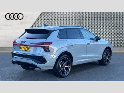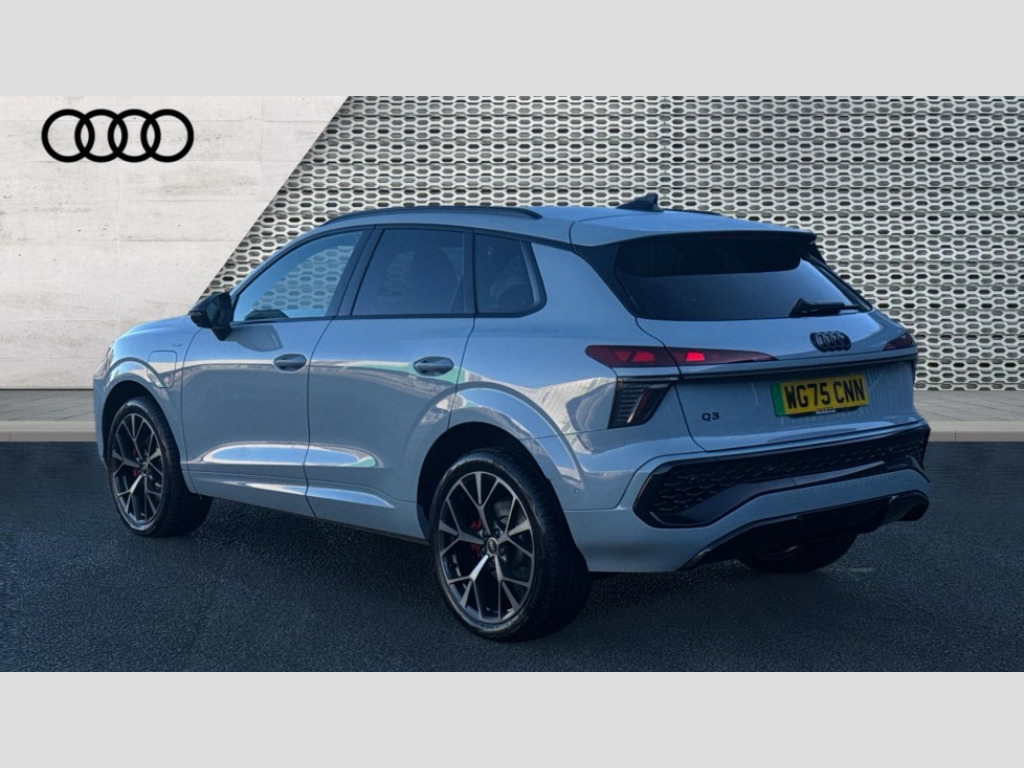 Audi Q3 1.5 e-Hybrid Launch Edition 5dr S Tronic Adaptive cruise assist plus, Audi connect emergency call and service, Audi connect remote and controls, Audi drive select for suspension with damper control, Audi side assist with exit warning and rear cross traffic assist, Audi virtual cockpit plus - 11.9" display, Bluetooth interface, Camera based traffic sign recognition, Driver attention and fatigue monitor with driver monitoring, Emergency assist, Front cross traffic assist, Garage door opener, Head up Display, In-car-office assist, Panoramic curved display with 12.8" MMI navigation plus and MMI touch, Phonebox light with wireless charging, Progressive steering, Projection of a black ice warning, Smartphone interface includes wireless Apple carplay/Android Auto, Start/stop system, Surround view cameras, Swerve assist and turn assist, Traffic sign based speed limiter, Trained parking, Voice control system with natural language interaction, 3 pin 10 amp domestic charging cable, Charging socket CCS type 2, Compact charging system, Industrial connector CEE 32A, 230V, Mode 3 charging cable for public charging, 22 KW (AC), Petrol Particulate Filter, Sound actuator for interior drive sound, Suspension with damping control, 2 USB-C ports with charge and data functions, DAB digital radio module, SONOS premium sound system, USB interfaces with higher charging capacity, Acoustic glass for front door windows, Acoustic windscreen, Advanced dynamic light scenario of the coming home/leaving home function, Aluminium window trim, Audi Q3 lettering on the B-pillars, Auto dimming rear view mirror, Automatic dynamic headlight range control, Automatically dimming exterior mirrors with memory function, Contrasting finish in volcano grey, Cornering light, Digital matrix LED headlights, Digital OLED rear lights, Dipped beam, Dynamic indicators, Electrically folding, adjustable and heated door mirrors with integrated LED side indicators and kerb view function for passenger side, Full paint finish, Headlight cleaning system, High resolution main beam, Illuminated door sills with aluminium inserts at the front with S logo, Intersection light, Lane light with side assist and direction indicator, LED daytime running lights, LED third brake light, Loading sill protector in stainless steel, Manoeuvring light, Motorway light, Opening panoramic sunroof, Orientation light with lane departure warning, Position light, Preparation for trailer hitch, Privacy glass - dark tinted rear window, rear door and side windows, Projection light in the exterior mirrors - Projects a graphic element onto the ground, Q3 badging on the rear, Rain and light sensors, Rear side wing doors, Rear window, rear door windows and rear side windows in clear glass, Rear wiper, Solid paint, Sports bumpers, Turning light, 3 seat bench in 2nd row, 3 spoke flat top and bottomed leather free multi function Sport steering wheel with gear shift paddles and "S" badging, 3-zone deluxe automatic air conditioning, 4 way lumbar support for the front seats - electric with horizontal and vertical adjustment in four directions, Black cloth headlining, Convenience auxiliary air conditioning, Electrically adjustable front seats with memory function for driver's side, Front and rear floor mats, Front and rear headrests, Front centre armrest, Heated front seats, Height and reach adjustable steering wheel, Interior storage compartment, Luggage compartment lid, electrically opening and closing, Microfibre upholstery with rhombus pattern and S emblem + front sports seats, Single front passenger seat, Stainless steel pedals, Steering wheel operating unit, gloss black, Storage compartment in front centre console, Ambient lighting package pro - Q3, Black styling pack with black door mirrors - Q3, Function pack - Q3, 3 point seat belts in front, with pretensioner and electric height adjustment, 3x3 point rear seatbelts, Acoustic vehicle alerting system, Convenience key with safelock, Driver and front passenger airbag with passenger airbag deactivation, Electromechanical parking brake, Electronic stabilisation control including ABS, ASR and EDL, First aid kit with warning triangle and high visibility vests, Front and rear side airbags with head airbags and front interaction airbag, Front emergency brake assist, i - Size child seat mounting on the front passenger side and i - Size and top tether on the outer rear seats, Power operated child locks, Proactive occupant protection, front, side and rear, Rear side airbags, Red brake callipers, front and rear, Seatbelt monitoring, Tyre pressure loss indicator, Anti theft wheel bolts, Remote central locking, Thatcham approved category 1 anti theft alarm, Dark aluminium divergence inlay, Interior elements in dinamica microfibre, Interior trims in aluminium look, 20" 5 spoke tripod design alloy wheels with gloss turned finish in darkened metallic black, Tool kit and Jack, Tyre repair kit