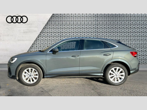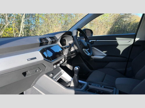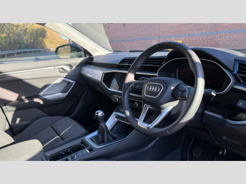 Audi Q3 35 TFSI Sport 5dr Audi connect safety and service, Audi drive select, Audi lane departure warning, Audi Virtual Cockpit - 10.25" display, Bluetooth interface, Camera based traffic sign recognition, Cruise control + speed limiter, Distraction and Fatigue warning, Legal emergency call, MMI Navigation Plus with high resolution 10.1 inch touchscreen colour display, Power operated tailgate, Progressive steering, Rear parking sensors, Service interval indicator, Smartphone interface includes wireless Apple carplay/Android Auto, Start stop system with recuperation, Voice control system with natural language interaction, Standard suspension, 2 USB-C ports with charge and data functions, 6 passive loudspeakers, DAB digital radio module, Acoustic windscreen, Aluminium window trim, Auto dimming door mirrors, Auto dimming frameless rear view mirror, Bumpers and underbody protection in contrasting manhattan grey paint finish, Diffuser grille in grained matt black, Diffuser trim in manhattan grey metallic, Door sill trims with illuminated aluminium inlay, Electrically folding, adjustable and heated door mirrors with integrated LED side indicators and kerb view function for passenger side, Front and rear electric windows, Front fog lights, Front side air inlets in Manhattan grey metallic, Grille surround in aluminium silver matt, High gloss black finish B and C pillars, Honeycomb design radiator grille in matt anthracite black, LED headlights with LED daytime running lights, LED third brake light, Rain and light sensors, Rear side wing doors, Rear wiper, Variable front intermittent wipers, 12V socket in rear centre console, 3 seat bench in 2nd row, 3 spoke multi-function leather steering wheel, 40:20:40 folding with manual adjustment for 60:40 forwards/backwards position and backrest angle, Black carpet mats, Dual zone electronic climate control, Electric lumbar support, Front and rear floor mats, Front and rear headrests, Front centre armrest, Height and reach adjustable steering wheel, ISOFIX child seat mounting for front passenger with airbag deactivation and outer rear seat including top tether attachment point for outer rear seats, Luggage compartment sill protection in stainless steel, Lunar silver cloth headlining, Manual front seats with height adjustment, Single front passenger seat, Non smoking pack - Q3, 3x3 point rear seatbelts, 6 airbags - Driver, front passenger, curtain and side windows, Audi pre-sense front with pedestrain and cyclist recognition, Electrically operated child locks on rear doors, Electromechanical parking brake, Electronic stabilisation control including ABS, ASR and EDL, Front seatbelt reminder, Hill descent control, Hill hold assist, Pre sense basic, Seatbelt monitoring, Tyre pressure warning, Warning triangle and first aid kit, Anti theft wheel bolts, Immobiliser, Remote central locking, Thatcham approved category 1 anti theft alarm, Aluminium look interior elements, Detail dashboard around MMI touch colour display in glass look, black with surround in aluminium look, Micrometallic silver inlay