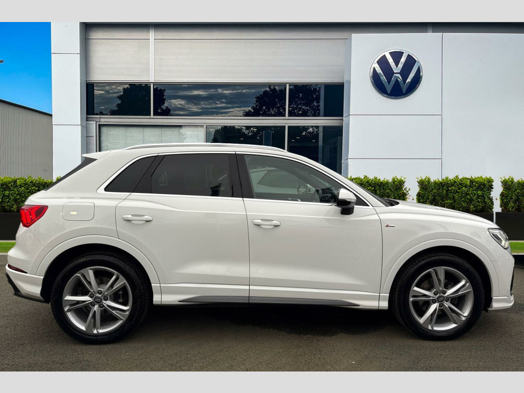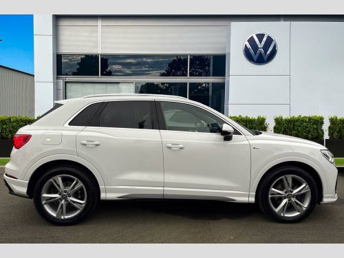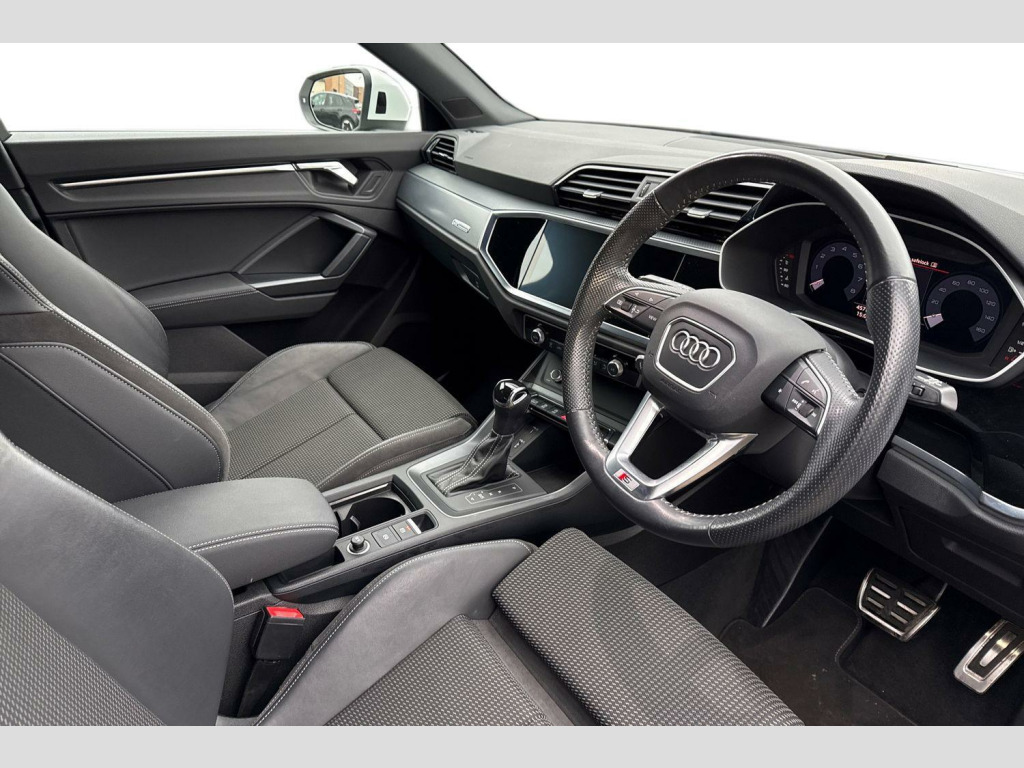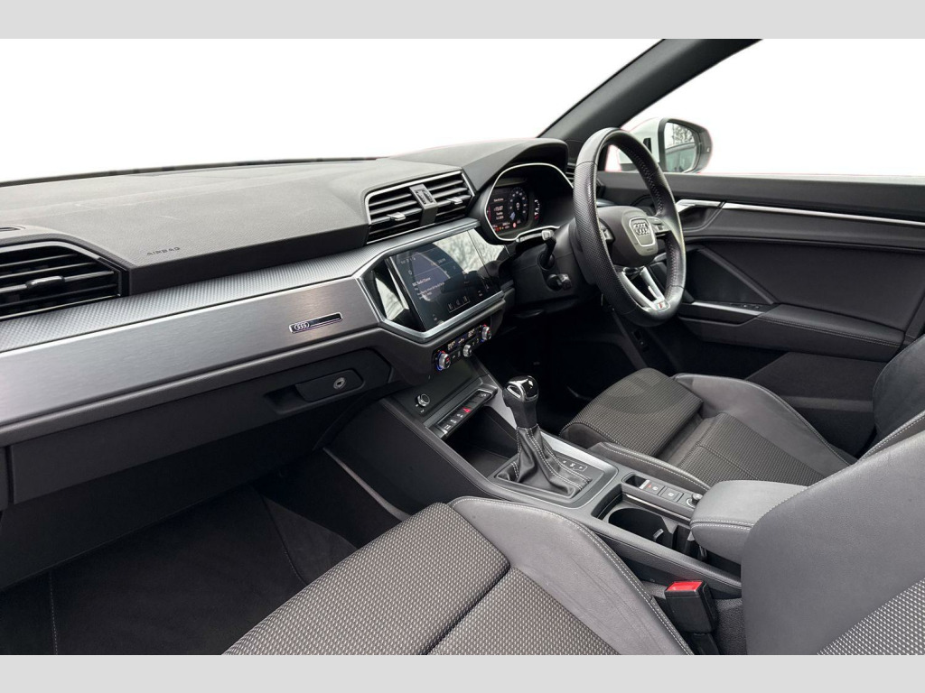 The Q3 TFSI S line is designed to impress, with its 0-62mph acceleration achieved in a brisk 9.4 seconds, demonstrating its responsive performance. These highlights, such as the advanced driver assistance systems and the intuitive infotainment, position this Audi Q3 as a superior choice for those seeking a premium compact SUV that blends style, technology, and dynamic capability. 1 x USB-C and 1 x USB-A Port with Charge and Data Functions, 19in Alloy Wheels - 5-Twin-Spoke Dynamic, 3-Spoke Leather Multi-Function Steering Wheel - S Badging and Grips in Perforated Leather with Contrast Stitching, 6 Passive Loud Speakers, 6-Airbag System, Adjustable Rear Seat Bench-Backrest with Centre Armrest and Cupholder, Aluminium Look Interior Elements, Aluminium Roof Rails, Aluminium Window Trims, Ambient Lighting Pack, Anti Theft Locking Wheel Bolts, Anti-Theft Alarm, Audi Connect Infotainment Services Plus including Amazon Alexa Integration (3 Year Subscription From New), Audi Connect Safety and Service - e-call, Audi Drive Select, Audi Pre-Sense Front with Pedestrian and Cyclist Recognition, Audi Side Assist, Audi Smartphone Interface Includes Wireless Apple CarPlay, Audi Virtual Cockpit - 10.25in Display, Auto Dimming and Frameless Rear View Mirror, B and C-Pillar Trim in High-Gloss Black, Bluetooth Interface, Body Coloured Door Mirrors, Bumpers in Full Body Colour Paint Finish, Camera-Based Traffic Sign Recognition, Cloth Headlining in Black, Cruise Control with Speed Limiter, DAB Digital Radio, Detail in Dashboard Around the MMI Touch Colour Display in Glass Look - Black with Surround in Aluminium Look, Door Mirrors - Electrically Folding - Adjustable and Heated with Integrated LED Side Indicators and Kerb-view Function for Passenger Side, Dual-Zone Electronic Climate Control, ESC - Electronic Stabilisation Control inc ABS - ASR and EDL, Electric Windows - Front, Electromechanical Parking Brake, Electronically Operated Child Locks, First Aid Kit and Warning Triangle, Frame of Front Side Air Inlets in Platinum Grey - Matt, Front Centre Armrest, Front Spoiler Blade in Platinum Grey - Matt, Front Spoiler in Selenite Silver - Matt, Front and Rear Floor Mats in Black with Contrast Stitching in Rock Grey, Gear Knob in Perforated Leather, Grille Surround in Silver - Chrome, Grille Vertical Bars in Aluminium Silver - Matt, Hill Descent Control, Hill Hold Assist, ISOFIX Child Seat Mounting for the Front Passenger Seat with Front Passenger Airbag Deactivation and ISOFIX Child Seat Mounting and Top Tether for the Outer Rear Seats, Illuminated Door Sill Trims with S Logo, Inlays - Matt Brushed Aluminium - Dark, Interior Lighting, LED Headlights with LED Daytime Running Lights and Dynamic Rear Indicator, LED Rear Lights, Lane Departure Warning, Leatherette Armrests, Light and Rain Sensor, Luggage Compartment Sill Protection in Stainless Steel, MMI Navigation Plus with High Resolution 10.1in Touchscreen Colour Display, Manual Seat Adjustment for Front Seats, Non-Smoking Package, Pedals in Stainless Steel, Power Operated Tailgate, Pre-Sense Basic, Privacy Glass - Dark-Tinted Rear and Rear-Side Windows - From B-Pillar Backwards, Progressive Steering, Radiator Grille - Titanium Black, Rear Diffuser in Titanium Black Matt, Rear Parking Sensors, S Line Badges on the Front Wings, S line Front and Rear Bumpers and Side Skirts, Seat Belt Monitoring, Side Skirt Insert in Platinum Grey - Matt, Sport Suspension, Tool Kit, Tyre Pressure Warning Light, Tyre Repair Kit, Voice Control System with Natural Language Interaction, Windscreen in Acoustic Glazing