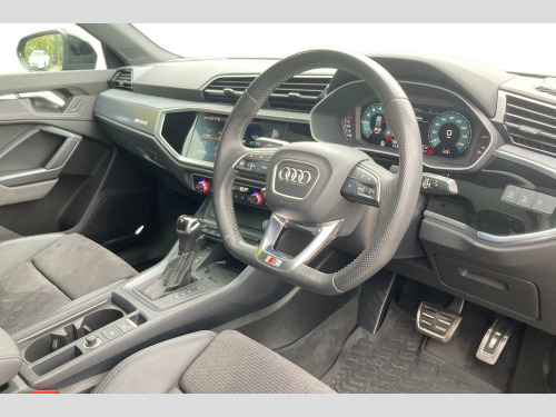 We are pleased to offer this Audi Q3 1.5 TFSi 35 Vorsprung finished in Daytona Grey with Black Upholstery. It comes complete with a full service history completed February 2020 @ 6654 miles, March 2021 @ 8877 miles, April 2022 @ 13880 miles, March 2023 @ 17264 miles, May 2024 @ 22152 miles (cambelt replaced) and last completed February 2025 @ 25780 miles. This Vorsprung trim Q3 is equipped with a host of desirable features designed to enhance your driving experience. The Comfort and Sound Package includes heated seats for those colder journeys, while the Parking Pack, featuring a 360 degree camera, makes manoeuvring effortless. For added safety and convenience, the Driver Assistance Package provides adaptive cruise control, and the Light and Rain Sensor automatically manages headlights and wipers. Dual zone electronic climate control ensures optimal comfort for all occupants. The low CO2 emissions further highlight its efficiency, making it a more environmentally conscious choice compared to many similar vehicles. Every Snows Car Centre vehicle we supply is hand picked by our team from the many part exchanges we generate from our manufacturer sites or sourced by our expert buying team. For further peace of mind why not protect your car with Snows market leading comprehensive extended warranties, finance packages G3 Paint Protection and insurance products. All of our vehicles are fully inspected & prepared to a high standard through our Snows franchise workshop. Snows Group, the driving spirit for over 50 years. PART EXCHANGE WELCOME AND NO ADMIN FEES. 20in Alloy Wheels - 5-Twin-Spoke Module Design Audi Sport with Inserts in Structured Grey - Matt, 20in Alloy Wheels - 5-V-Spoke Star Design Audi Sport in a Matt Titanium Look - Diamond Cut Finish, 4-Way Electric Lumbar Support, 6 Passive Loud Speakers, 6-Airbag System, Adaptive Suspension with Damping Control, Adjustable Rear Seat Bench-Backrest with Centre Armrest and Cupholder, Advanced Key, Anti Theft Locking Wheel Bolts, Anti-Theft Alarm, Audi Connect Infotainment Services Plus (3 Year Subscription From New), Audi Connect Safety and Service - e-call, Audi Drive Select, Audi Phone Box with Wireless Charging, Audi Pre-Sense Front with Pedestrian and Cyclist Recognition, Audi Side Assist, Audi Smartphone Interface, Audi Virtual Cockpit - 10.25in Display, Auto Dimming and Frameless Rear View Mirror, B and C-Pillar Trim in High-Gloss Black, Black Roof Rails, Black Styling Pack, Cloth Headlining in Black, Comfort and Sound Package, Contrast Bumpers in Manhattan Grey Paint Finish, DAB Digital Radio, Detail in Dashboard Around the MMI Touch Colour Display, Door Mirrors - Electrically Folding with Auto-Dimming Function, Door Sill Trims with Aluminium Inlay, Driver Assistance Package, Dual-Zone Electronic Climate Control, ESC - Electronic Stabilisation Control inc ABS - ASR and EDL, Electrically Adjustable Front Seats, First Aid Kit and Warning Triangle, Flat-Bottomed 3-Spoke Leather-Trimmed Multi-Function Sport Steering Wheel with Gear-Shift Paddles, Front Centre Armrest, Front and Rear Floor Mats in Black with Contrast Stitching in Rock Grey, Gear Knob - Perforated Leather, Headlight Washers, Heated Front Seats, Hold Assist, ISOFIX Child Seat Mounting for the Front Passenger Seat with Front Passenger Airbag Deactivation and ISOFIX Child Seat Mounting and Top Tether for the Outer Rear Seats, Inlays - Matt Brushed Aluminium - Dark, Interior Elements in Steel Grey Alcantara, Lane Departure Warning, Light and Rain Sensor, Luggage Compartment Sill Protection in Stainless Steel, MMI Navigation Plus with High Resolution 10.1in Touchscreen Colour Display, Matrix LED Headlights with LED Rear Lights and Dynamic Front and Rear Indicators, Non-Smoking Package, Panoramic Glass Sunroof, Park Assist, Parking Pack, Pedals in Stainless Steel, Power Operated Tailgate, Pre-Sense Basic, Privacy Glass, Progressive Steering, Rear Parking Sensors, Seat Belt Monitoring, Tool Kit, Tow Bar Preparation, Tyre Pressure Warning Light, Tyre Repair Kit, Voice Control System with Natural Language Interaction, Windscreen with Acoustic Glazing
