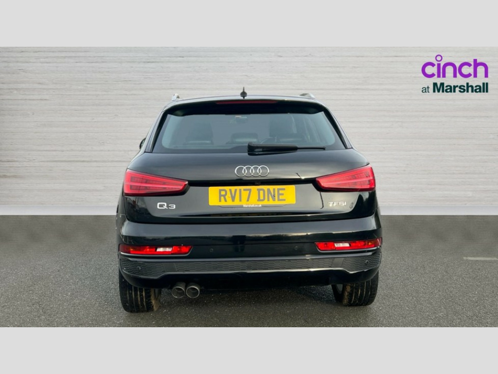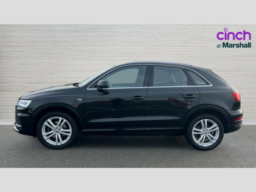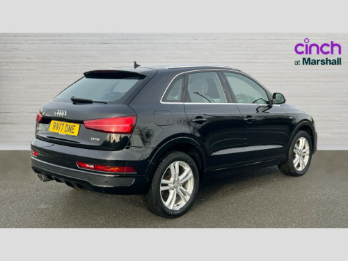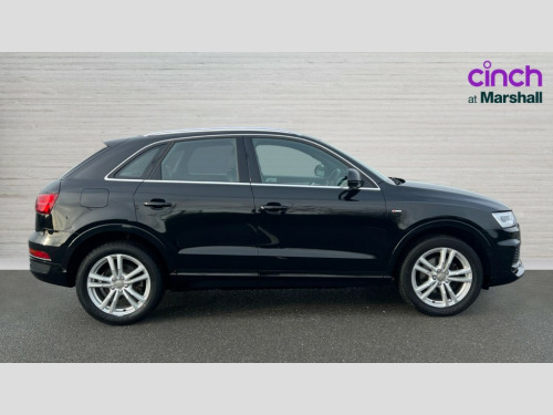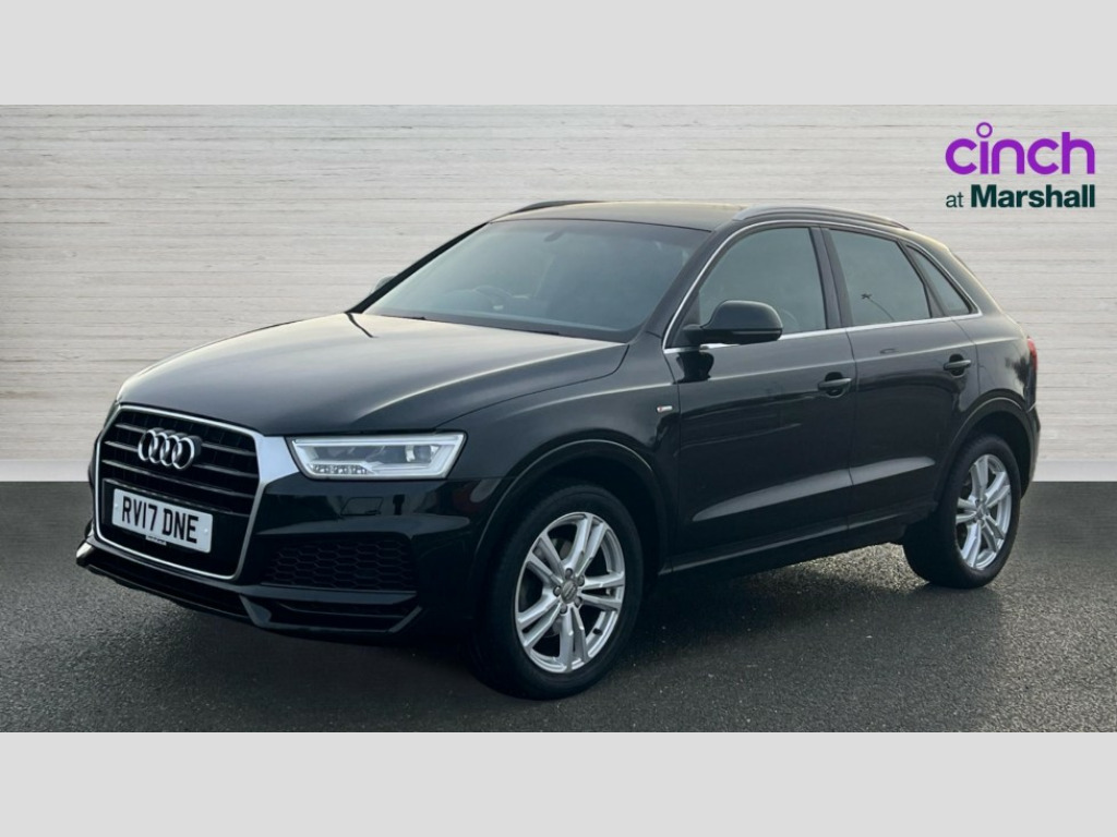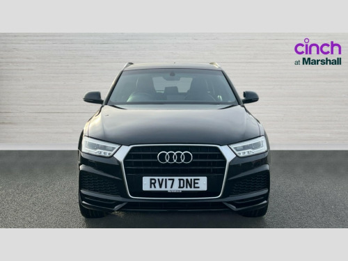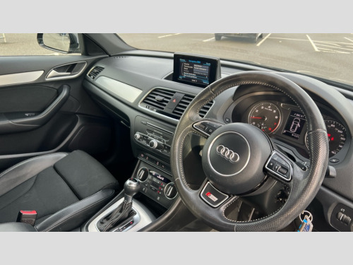 Audi Q3 1.4T FSI S Line Edition 5dr S Tronic 6.5" colour display screen, Audi drive select, Cruise control, Low washer fluid indicator, MMI - Multi Media Interface control system, On board computer, PAS, Remote electric boot opening/closing, Service interval indicator, Voice control system, Audi music interface, DAB digital radio module, Acoustic windscreen, Aluminium window surround, Auto dimming rear view mirror, Body colour door mirrors, Body coloured bumpers, Chrome exhaust tailpipe, Chrome fog light surround, Chrome grille, Coming home function, Door mirror integrated indicators, Front and rear electric windows, Heated windscreen washer jets, LED daytime running lights, LED headlights with headlight washers, LED rear lights, Light and rain sensor for auto activation of lights and windscreen wipers, Loading sill protector in stainless steel, Rear wiper, S Line body styling, Sunband for windscreen, Towbar preparation, 12V socket in rear centre console, Aluminium door sill trims, Black cloth headlining, Dual zone climate control, Electric front lumbar adjustment, Front and rear headrests, Front and rear velour floor mats, Front centre armrest with storage compartment and angle adjustment, Front sports seats, Height/reach adjust steering wheel, ISOFIX on front passenger and rear outer seats, Jack and tool kit, Perforated leather gearknob, Retractable luggage cover, Split fold rear seat, Under floor storage in luggage area, 3x3 point rear seatbelts, ABS+Electronic Brake force Distribution, Curtain airbags, Driver and passenger airbags, Driver and passenger side airbags, EDL + ASR, Electrically operated child locks on rear doors, Electromechanical parking brake, ESP, First aid kit, Front passenger airbag deactivation, Seatbelt warning light, Tyre pressure monitoring system, Warning triangle, Locking wheel bolts, Remote central locking, Thatcham category 1 alarm + immobiliser, Matt brushed aluminium fascia and door trim inlays