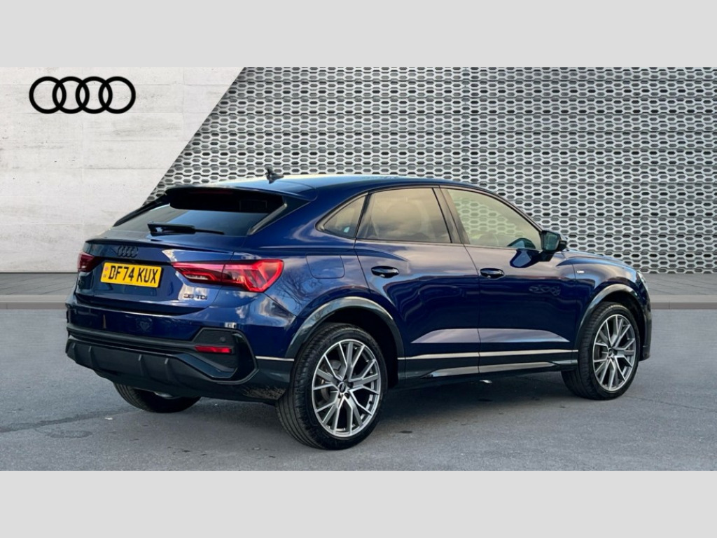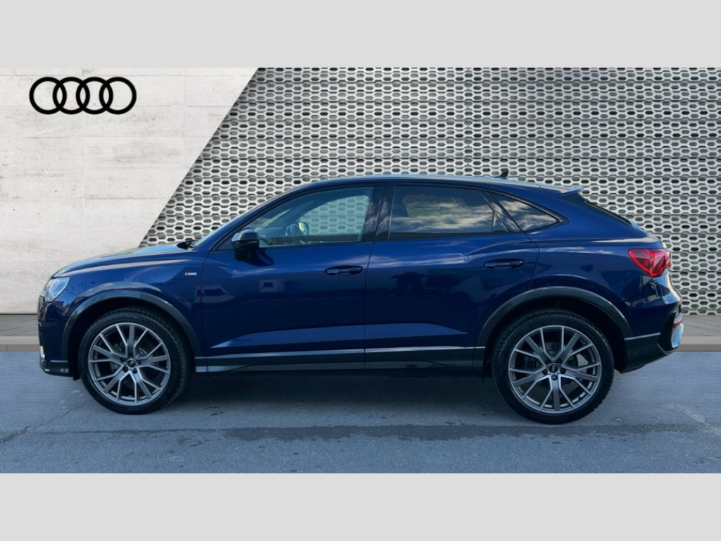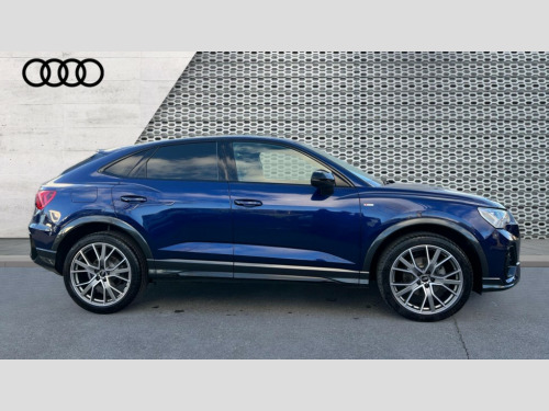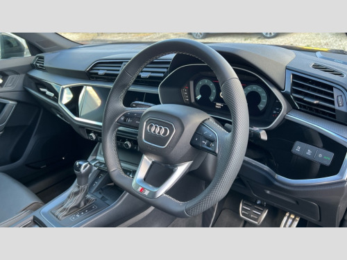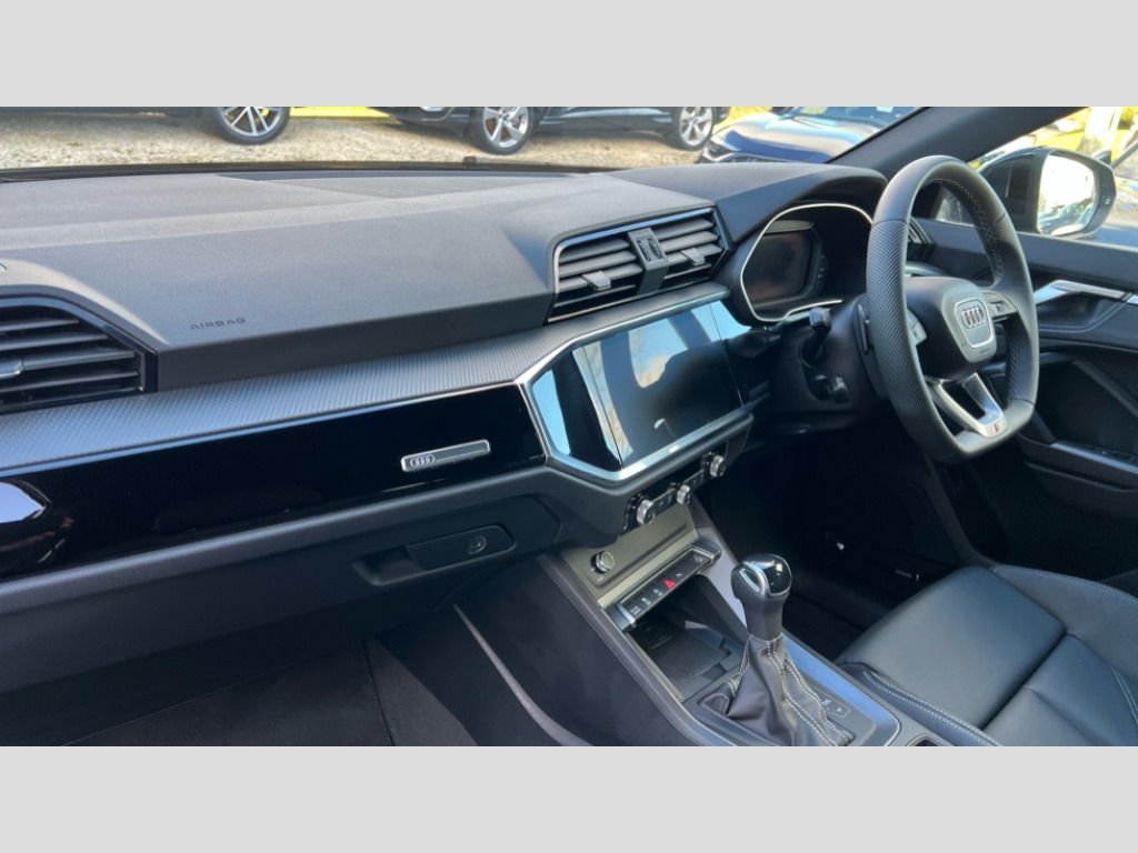 Audi Q3 35 TDI Black Edition 5dr S Tronic [20" Alloy] Audi connect safety and service, Audi drive select, Audi lane departure warning, Audi Virtual Cockpit - 10.25" display, Bluetooth interface, Camera based traffic sign recognition, Distraction and Fatigue warning, Legal emergency call, MMI Navigation Plus with high resolution 10.1 inch touchscreen colour display, Power operated tailgate, Progressive steering, Service interval indicator, Smartphone interface includes wireless Apple carplay/Android Auto, Start stop system with recuperation, Voice control system with natural language interaction, Diesel particulate filter, Sports suspension, 2 USB-C ports with charge and data functions, 6 passive loudspeakers, DAB digital radio module, Acoustic windscreen, Audi Beam uses LEDs to project the Audi logo onto the ground as you exit your Q3, Auto dimming door mirrors, Auto dimming frameless rear view mirror, Diffuser grille in grained matt black, Diffuser trim in selenite silver, Electrically folding, adjustable and heated door mirrors with integrated LED side indicators and kerb view function for passenger side, Front and rear electric windows, Front fog lights, Front underbody protection in manhattan grey paint finish, High gloss black finish B and C pillars, LED Dynamic rear indicators, LED headlights with LED daytime running lights, LED rear lights, LED third brake light, Privacy glass dark tinted rear and rear-side windows (from B-pillar backwards), Rain and light sensors, Rear side wing doors, Rear underbody protection in matt black, Rear wiper, S line front and rear bumpers and side skirts in contrasting Manhattan grey paint finish, Variable front intermittent wipers, 12V socket in rear centre console, 3 seat bench in 2nd row, 40:20:40 folding with manual adjustment for 60:40 forwards/backwards position and backrest angle, Adjustable rear seat bench/backrest with centre armrest and cupholder, Black cloth headlining, Dual zone electronic climate control, Electric lumbar support, Front and rear black floor mats with contrast stitching, Front and rear headrests, Front centre armrest, Height and reach adjustable steering wheel, Illuminated door sill trims with S logo, ISOFIX child seat mounting for front passenger with airbag deactivation and outer rear seat including top tether attachment point for outer rear seats, Luggage compartment sill protection in stainless steel, Manual front seats with height adjustment, Perforated leather gearknob, Single front passenger seat, Stainless steel pedals, Twin leather upholstery with front sport seats + S embossing, Black styling pack - Q3, Non smoking pack - Q3, 3x3 point rear seatbelts, 6 airbags - Driver, front passenger, curtain and side windows, Audi pre-sense front with pedestrain and cyclist recognition, Electrically operated child locks on rear doors, Electromechanical parking brake, Electronic stabilisation control including ABS, ASR and EDL, Front seatbelt reminder, Hill descent control, Hill hold assist, Pre sense basic, Seatbelt monitoring, Tyre pressure warning, Warning triangle and first aid kit, Anti theft alarm, Anti theft wheel bolts, Immobiliser, Remote central locking, Aluminium look interior elements, Detail dashboard around MMI touch colour display in glass look, black with surround in aluminium look, Leatherette door armrest, Piano black inlay