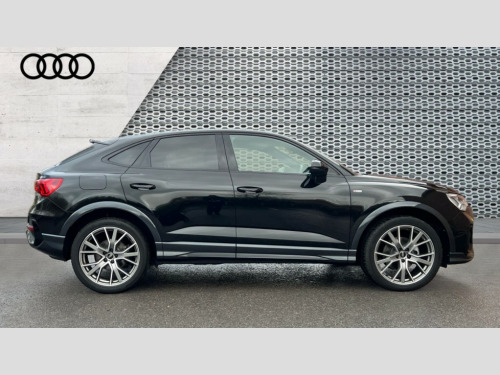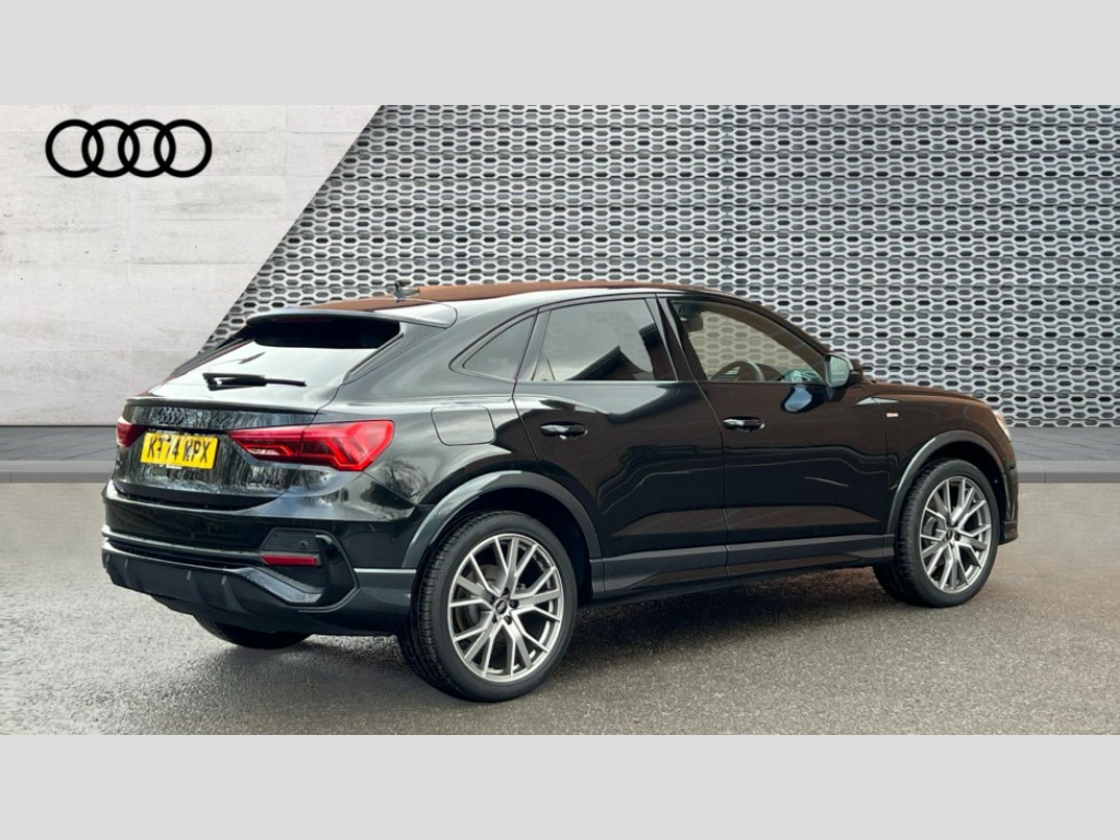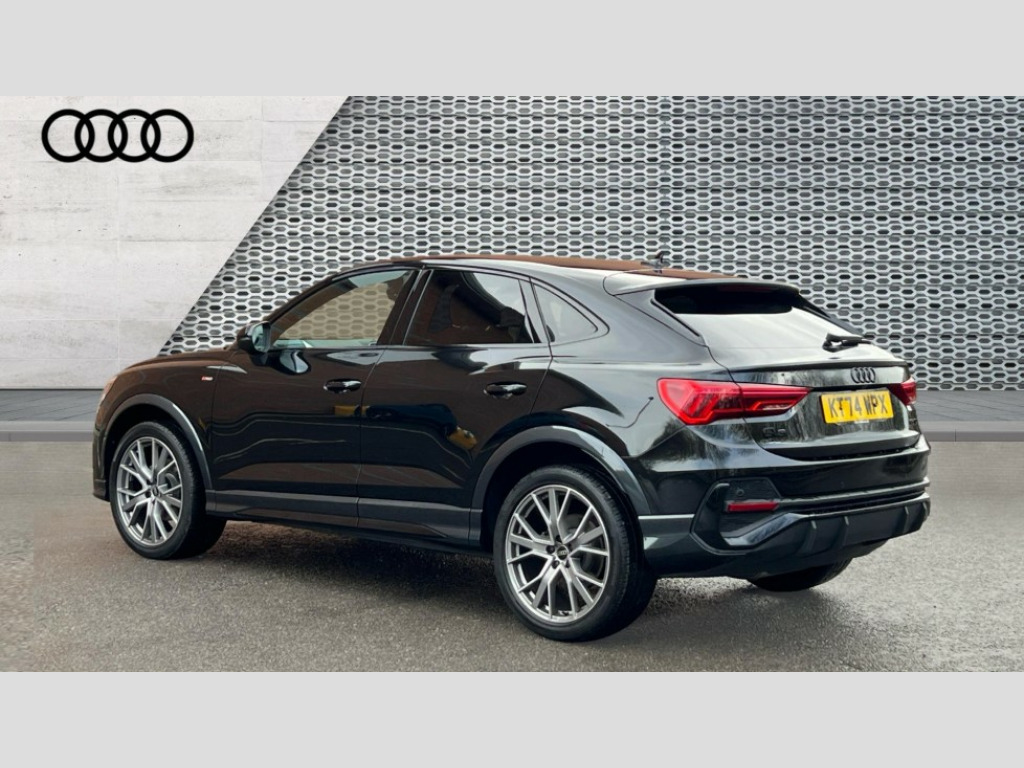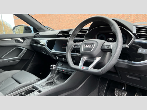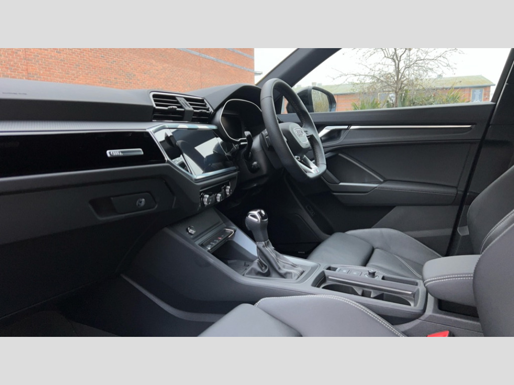 Audi Q3 35 TDI Black Edition 5dr S Tronic [20" Alloy] Audi connect safety and service, Audi drive select, Audi lane departure warning, Audi Virtual Cockpit - 10.25" display, Bluetooth interface, Camera based traffic sign recognition, Distraction and Fatigue warning, Legal emergency call, MMI Navigation Plus with high resolution 10.1 inch touchscreen colour display, Power operated tailgate, Progressive steering, Service interval indicator, Smartphone interface includes wireless Apple carplay/Android Auto, Start stop system with recuperation, Voice control system with natural language interaction, Diesel particulate filter, Sports suspension, 2 USB-C ports with charge and data functions, 6 passive loudspeakers, DAB digital radio module, Acoustic windscreen, Audi Beam uses LEDs to project the Audi logo onto the ground as you exit your Q3, Auto dimming door mirrors, Auto dimming frameless rear view mirror, Diffuser grille in grained matt black, Diffuser trim in selenite silver, Electrically folding, adjustable and heated door mirrors with integrated LED side indicators and kerb view function for passenger side, Front and rear electric windows, Front fog lights, Front underbody protection in manhattan grey paint finish, High gloss black finish B and C pillars, LED Dynamic rear indicators, LED headlights with LED daytime running lights, LED rear lights, LED third brake light, Privacy glass dark tinted rear and rear-side windows (from B-pillar backwards), Rain and light sensors, Rear side wing doors, Rear underbody protection in matt black, Rear wiper, S line front and rear bumpers and side skirts in contrasting Manhattan grey paint finish, Variable front intermittent wipers, 12V socket in rear centre console, 3 seat bench in 2nd row, 40:20:40 folding with manual adjustment for 60:40 forwards/backwards position and backrest angle, Adjustable rear seat bench/backrest with centre armrest and cupholder, Black cloth headlining, Dual zone electronic climate control, Electric lumbar support, Front and rear black floor mats with contrast stitching, Front and rear headrests, Front centre armrest, Height and reach adjustable steering wheel, Illuminated door sill trims with S logo, ISOFIX child seat mounting for front passenger with airbag deactivation and outer rear seat including top tether attachment point for outer rear seats, Luggage compartment sill protection in stainless steel, Manual front seats with height adjustment, Perforated leather gearknob, Single front passenger seat, Stainless steel pedals, Twin leather upholstery with front sport seats + S embossing, Black styling pack - Q3, Non smoking pack - Q3, 3x3 point rear seatbelts, 6 airbags - Driver, front passenger, curtain and side windows, Audi pre-sense front with pedestrain and cyclist recognition, Electrically operated child locks on rear doors, Electromechanical parking brake, Electronic stabilisation control including ABS, ASR and EDL, Front seatbelt reminder, Hill descent control, Hill hold assist, Pre sense basic, Seatbelt monitoring, Tyre pressure warning, Warning triangle and first aid kit, Anti theft alarm, Anti theft wheel bolts, Immobiliser, Remote central locking, Aluminium look interior elements, Detail dashboard around MMI touch colour display in glass look, black with surround in aluminium look, Leatherette door armrest, Piano black inlay