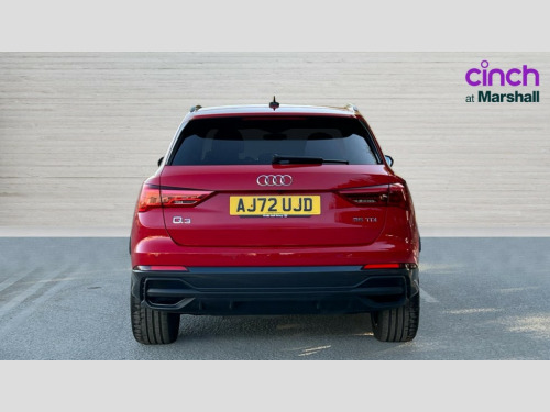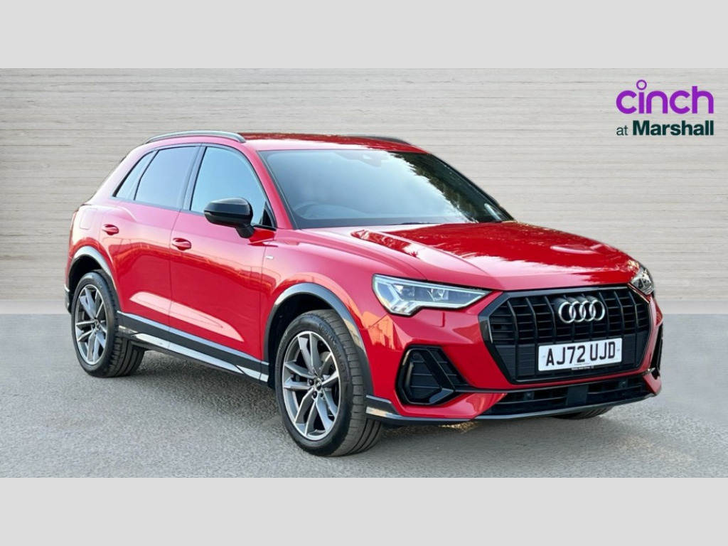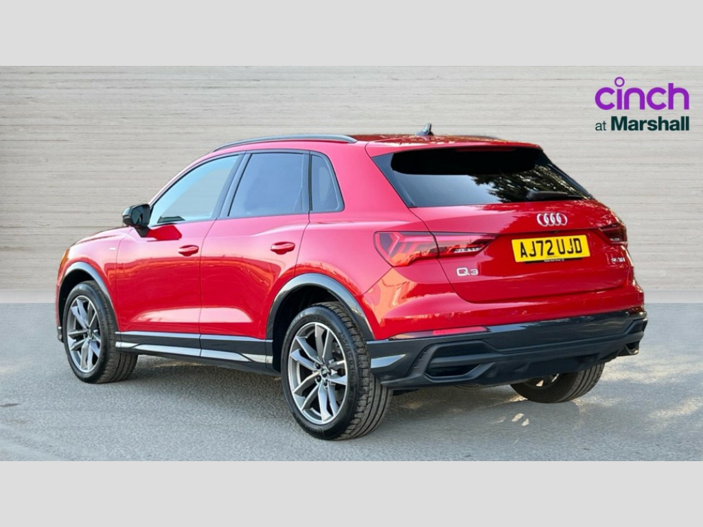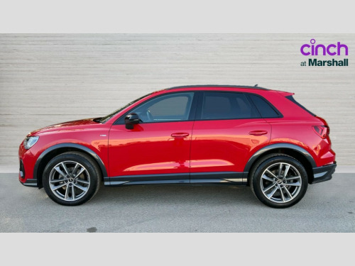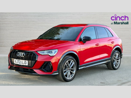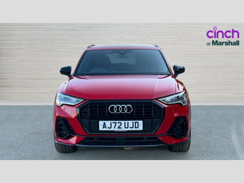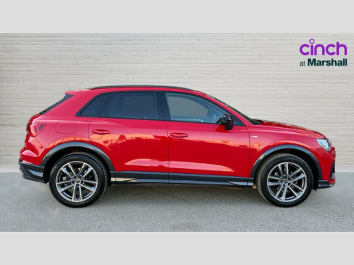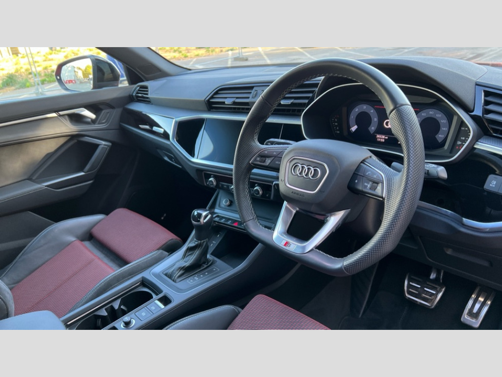 Audi Q3 35 TDI Black Edition 5dr S Tronic Amazon alexa Integration, Audi drive select, Audi lane departure warning, Audi Virtual Cockpit - 10.25" display, Bluetooth interface, Camera based traffic sign recognition, Legal emergency call, MMI Navigation Plus with high resolution 10.1 inch touchscreen colour display, Power operated tailgate, Progressive steering, Service interval indicator, Smartphone interface includes wireless Apple carplay/Android Auto, Start stop system with recuperation, Voice control system with natural language interaction, Diesel particulate filter, Sports suspension, 2 USB-C ports with charge and data functions, 6 passive loudspeakers, DAB digital radio module, Acoustic windscreen, Auto dimming frameless rear view mirror, Black roof rails, Electrically folding, adjustable and heated door mirrors with integrated LED side indicators and kerb view function for passenger side, Front and rear electric windows, Front fog lights, Grille vertical bars in aluminium silver/Matt, High gloss black finish B and C pillars, LED Dynamic rear indicators, LED headlights with LED daytime running lights, LED rear lights, LED third brake light, Privacy glass dark tinted rear and rear-side windows (from B-pillar backwards), Rain and light sensors, Rear diffuser grille in grained matt black, Rear diffuser strip in matt titanium black, Rear side wing doors, Rear wiper, S line bumpers in contrasting Manhattan grey, Variable front intermittent wipers, 12V socket in rear centre console, 3 seat bench in 2nd row, 40:20:40 folding with manual adjustment for 60:40 forwards/backwards position and backrest angle, Adjustable rear seat bench/backrest with centre armrest and cupholder, Black cloth headlining, Dual zone electronic climate control, Front and rear black floor mats with contrast stitching in rock grey, Front and rear headrests, Front and rear roof module including reading lights, Front centre armrest, Glove compartment lighting, Height and reach adjustable steering wheel, Illuminated door sill trims with S logo, ISOFIX child seat mounting for front passenger with airbag deactivation and outer rear seat including top tether attachment point for outer rear seats, Luggage compartment light, Manual front seats with height adjustment, Perforated leather gearknob, Single front passenger seat, Stainless steel luggage compartment sill finisher, Stainless steel pedals, Ambient lighting pack - Q3, Black styling pack - Q3, Non smoking pack - Q3, 3x3 point rear seatbelts, 6 airbags - Driver, front passenger, curtain and side windows, Audi pre-sense front with pedestrain and cyclist recognition, Electrically operated child locks on rear doors, Electromechanical parking brake, Electronic stabilisation control including ABS, ASR and EDL, Front seatbelt reminder, Hill descent control, Hill hold assist, Pre sense basic, Seatbelt monitoring, Tyre pressure warning, Warning triangle and first aid kit, Anti theft alarm, Anti theft wheel bolts, Immobiliser, Remote central locking, Detail dashboard around MMI touch colour display in glass look, black with surround in aluminium look, Leatherette door armrest, Piano black inlay