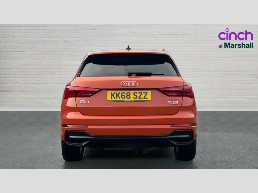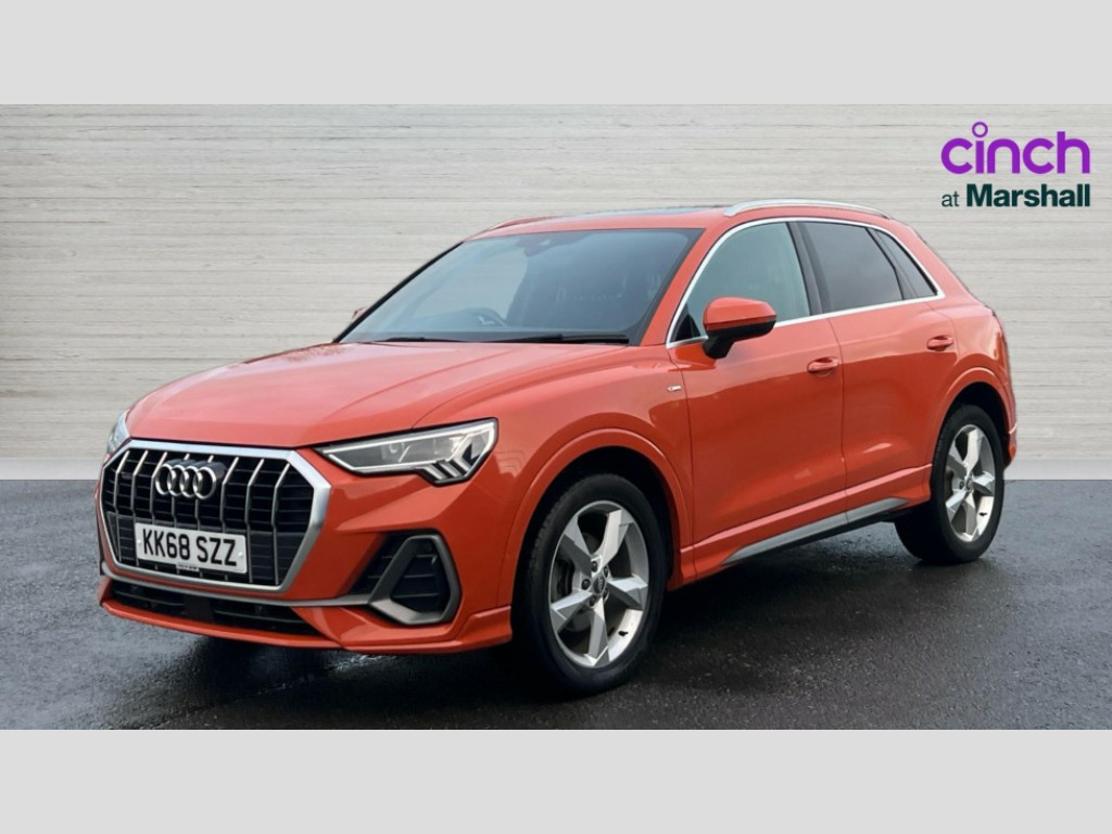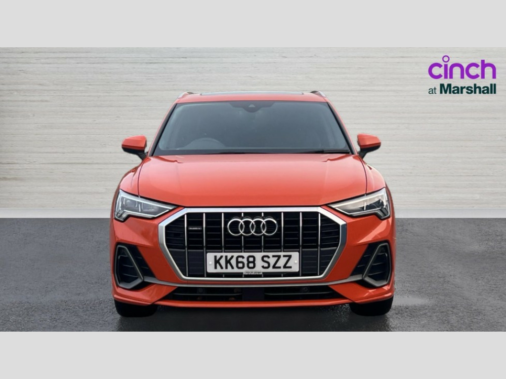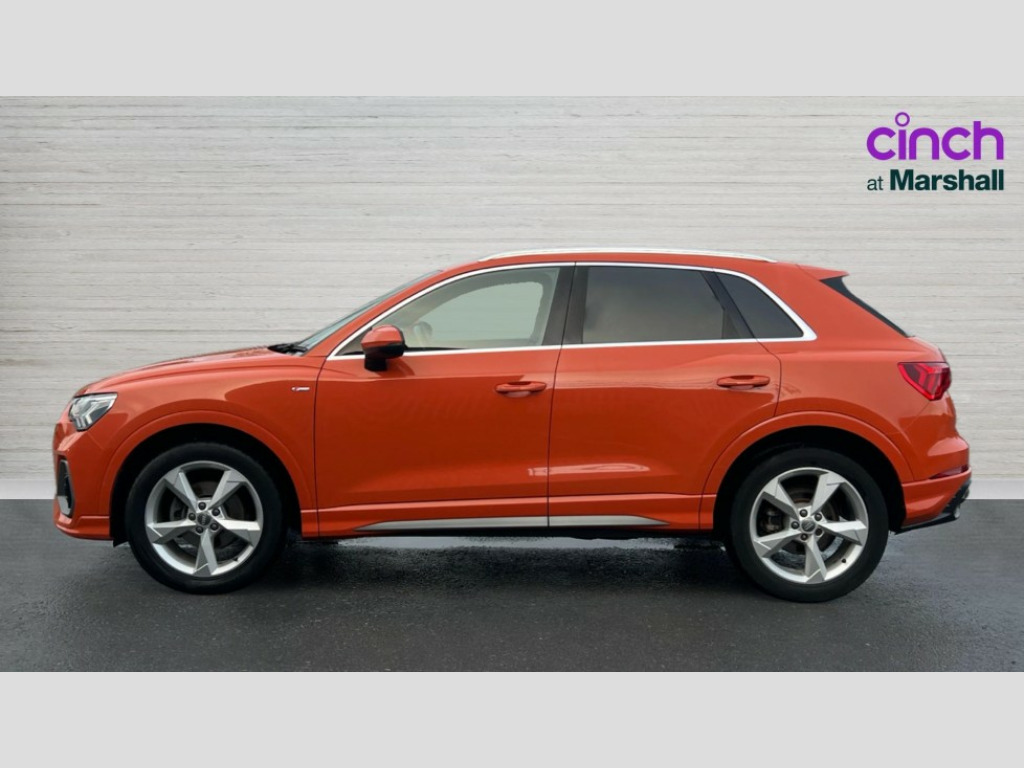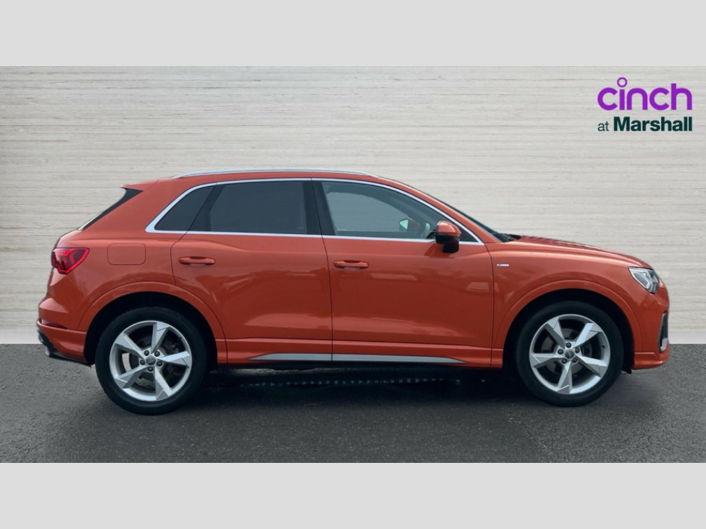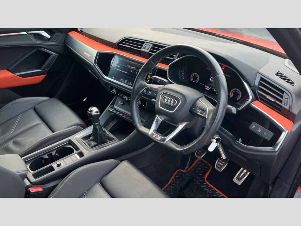Audi Q3 35 TDI Quattro S Line 5dr Audi connect safety and service (e-call), Audi drive select, Audi lane departure warning, Audi side assist, Audi smartphone interface, Audi Virtual Cockpit - 10.25" display, Bluetooth interface, MMI navigation plus with MMI touch, Power opening/closing tailgate, Progressive steering, Service interval indicator, Stop/start system, Voice control system, Diesel particulate filter, DAB digital radio module, Acoustic windscreen, Aluminium roof rails, Aluminium window trim, Auto dimming rear view mirror, Body colour door mirrors, Body coloured bumpers, Diffuser in matt Platinum grey, Electrically adjustable and heated door mirrors with integrated LED side indicators, Front and rear electric windows, Front fog lights, Front side air inlets in matt platinum grey, Front spoiler blade in matt platinum grey, Grille vertical bars in aluminium silver/Matt, High gloss black finish B and C pillars, Privacy glass, Rain and light sensors, Rear diffuser strip in selenite silver, S Line badge on wings, S Line front and rear bumpers, Side skirt insert in matt Platinium grey, Titanium black radiator grille, 12V socket in rear centre console, 40:20:40 split folding rear bench seat, Adjustable rear seat bench/backrest with centre armrest and cupholder, Aluminium door sill trims, Black cloth headlining, Dual zone climate control, Front and rear black floor mats with contrast stitching in rock grey, Front and rear headrests, Front centre armrest with storage compartment and angle adjustment, Heated front seats, Illuminated door sill trims with S logo, ISOFIX child seat mounting and Top Tether with front passenger airbag deactivation, Perforated leather gearknob, Stainless steel luggage compartment sill finisher, Stainless steel pedals, Multi coloured extended ambient interior lighting pack - Q3, Non smoking pack - Q3, 3x3 point rear seatbelts, 6 airbags - Driver, front passenger, curtain and side windows, Audi pre-sense front with pedestrain and cyclist recognition, Electronic stabilisation control including ABS, ASR and EDL, Hill hold assist, Pre sense basic, Seatbelt monitoring, Tyre pressure warning, Warning triangle and first aid kit, Anti theft alarm, Anti theft wheel bolts, Remote central locking, Dark matt brushed aluminium inlay, MMI touch colour display in gloss black with aluminium surround